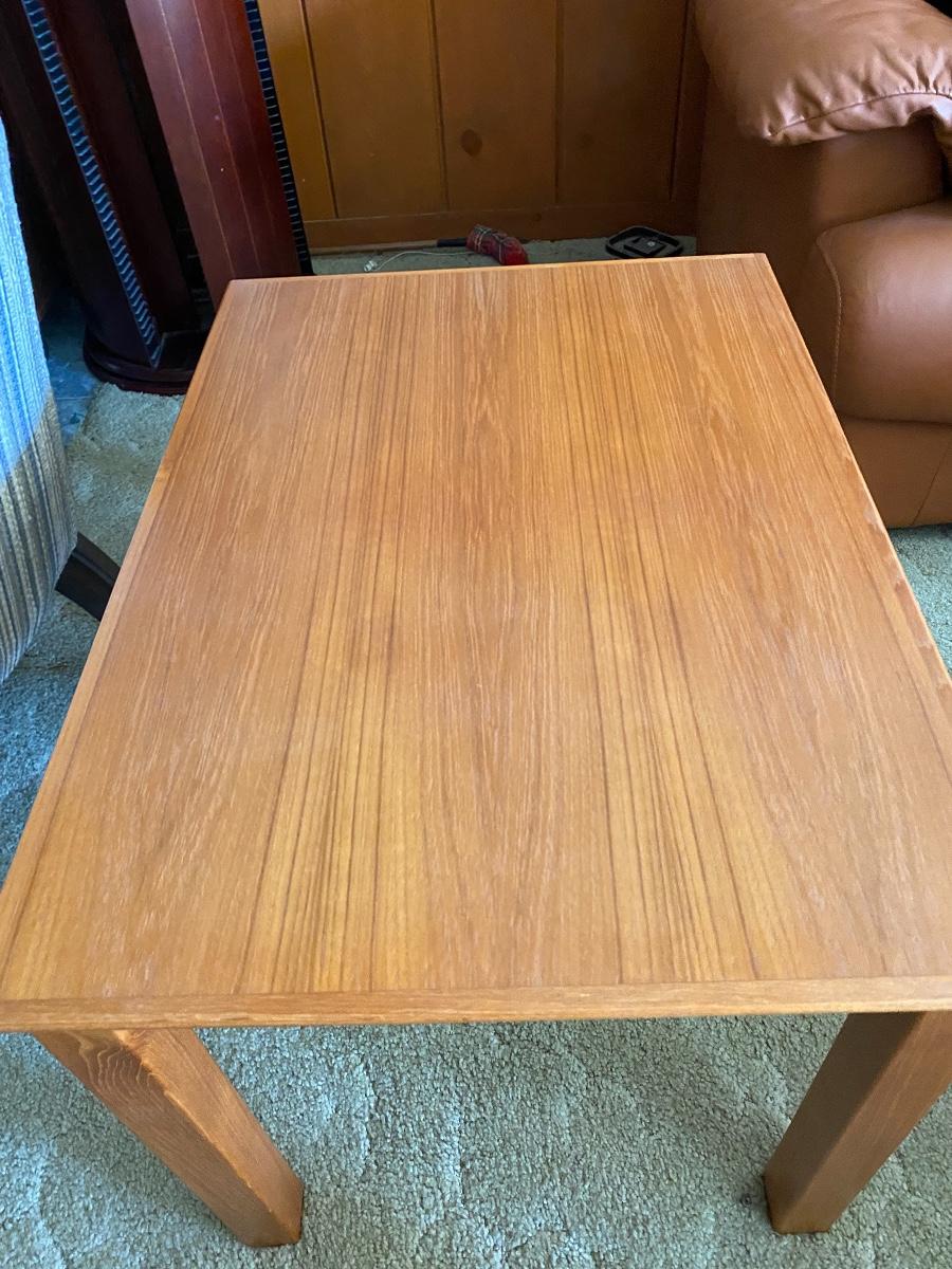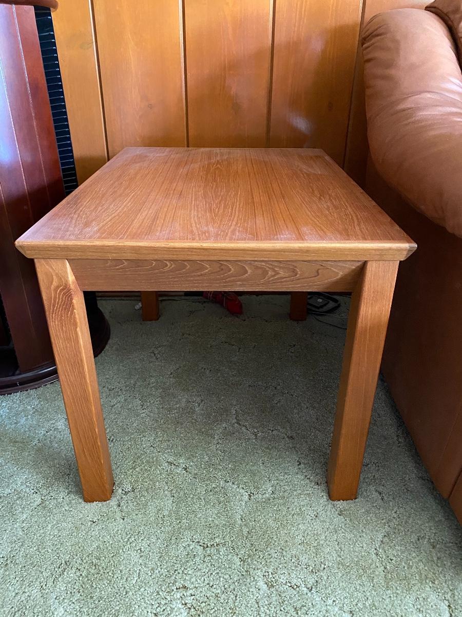 Light Finish Wood Rectangle Side End Table. 28"x20" and 19" tall. Good condition.