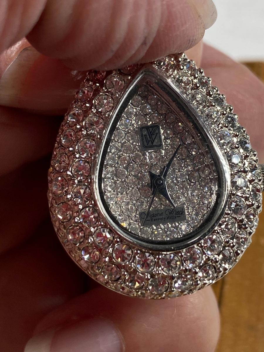 Vintage Rhinestone Covered Watch Pendant. Not running. No missing stones. About 2" size.