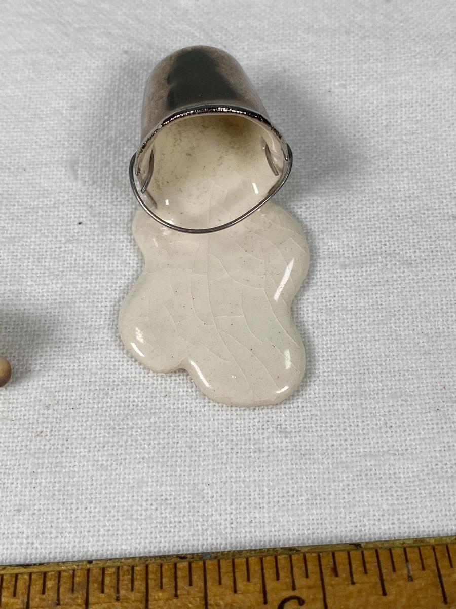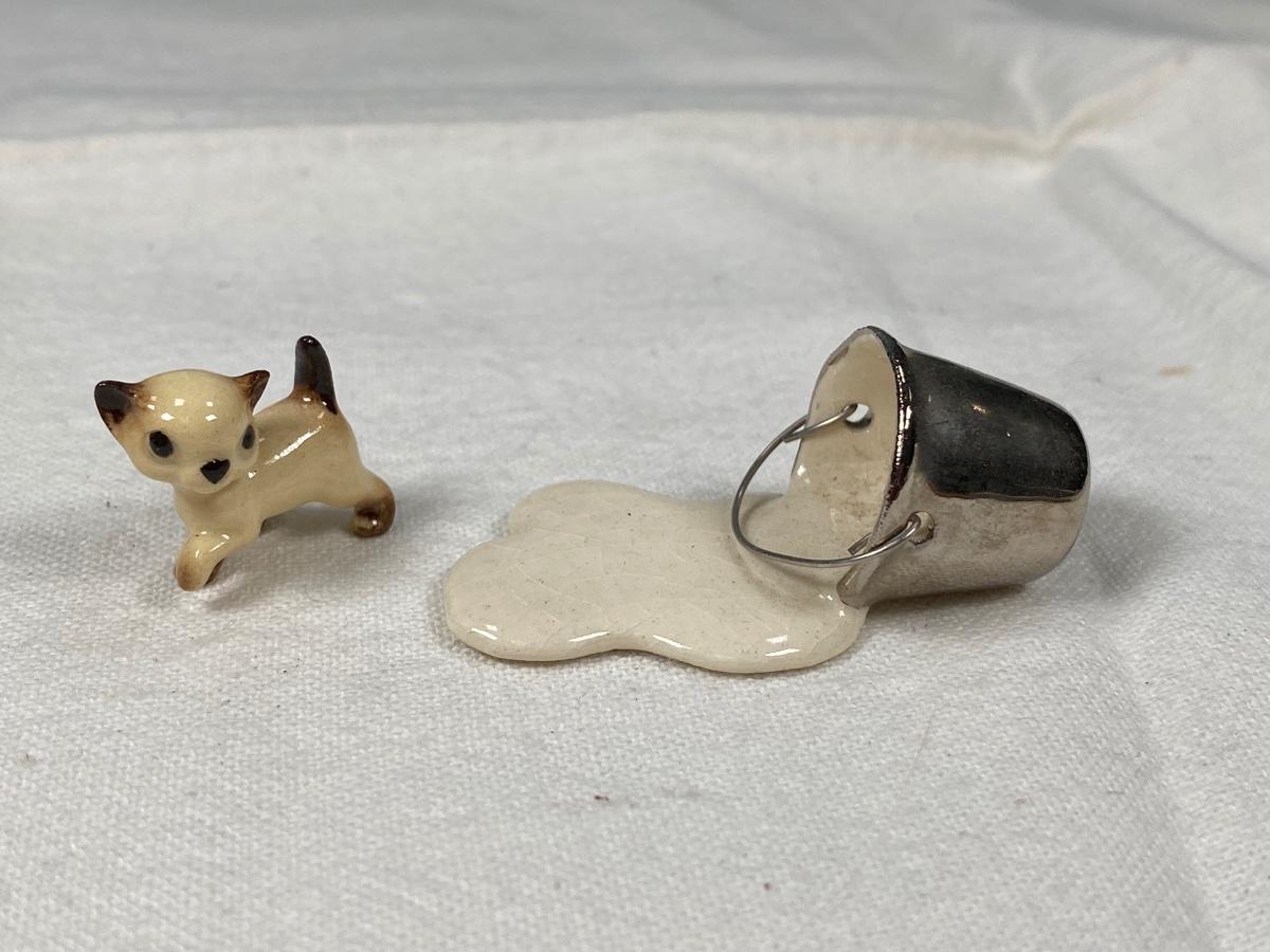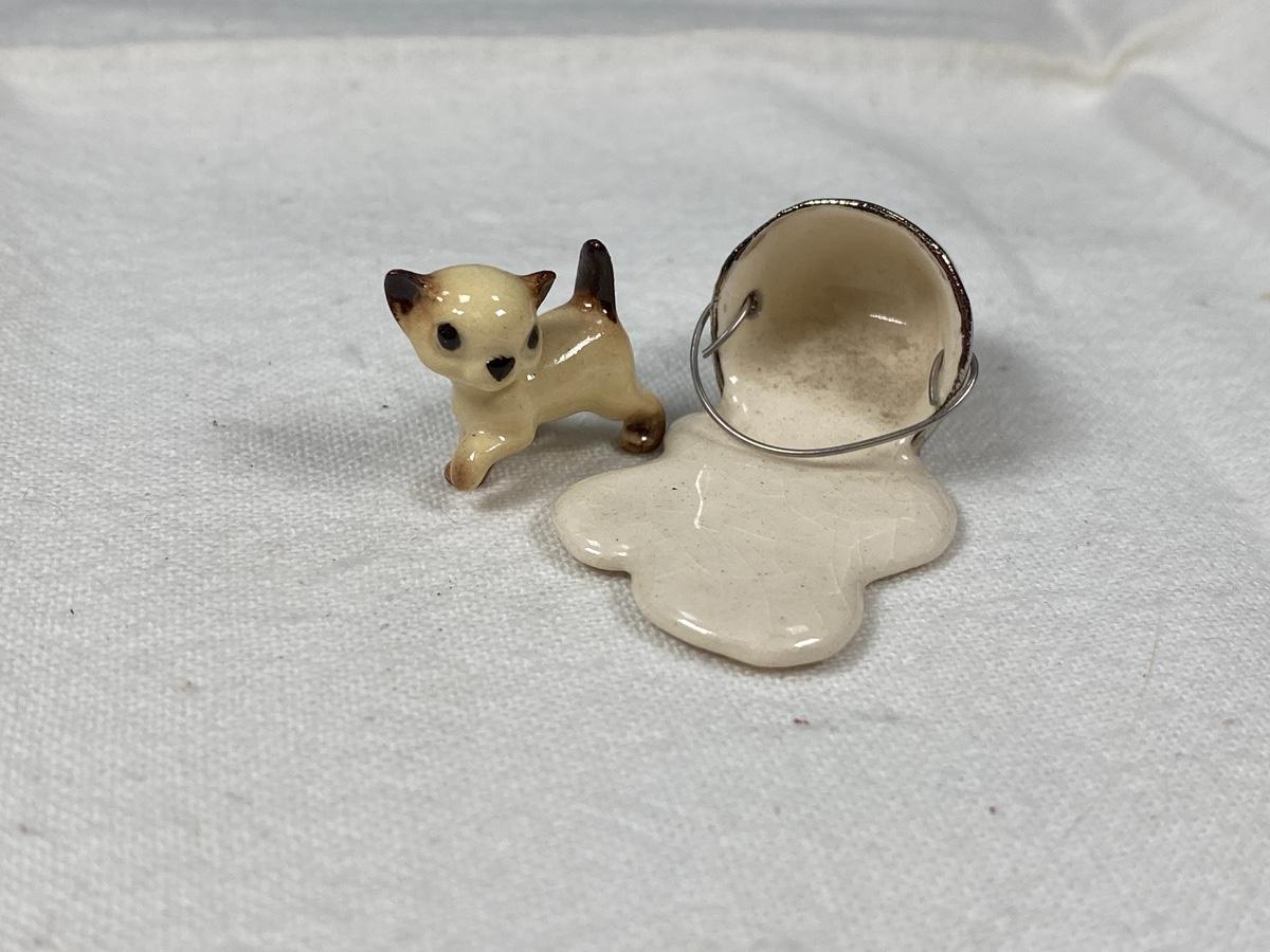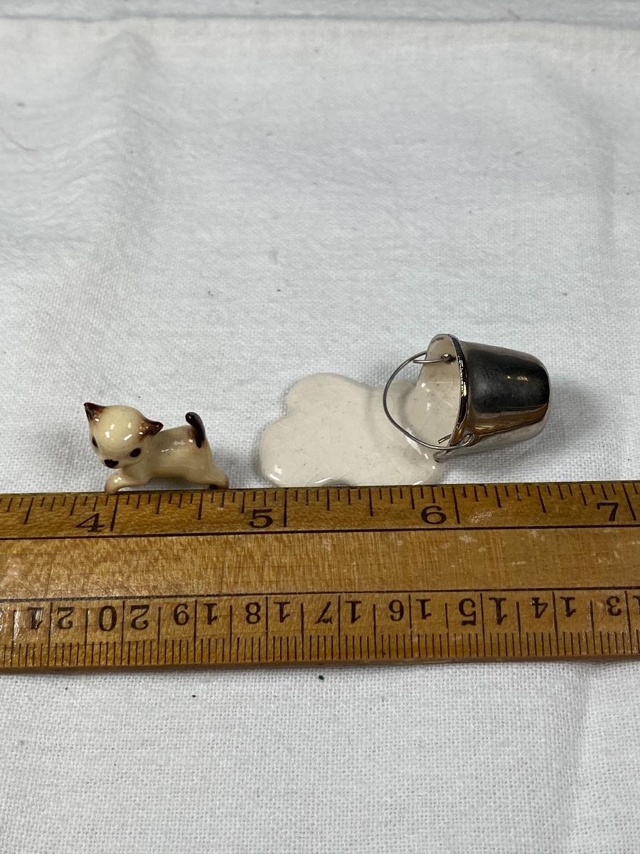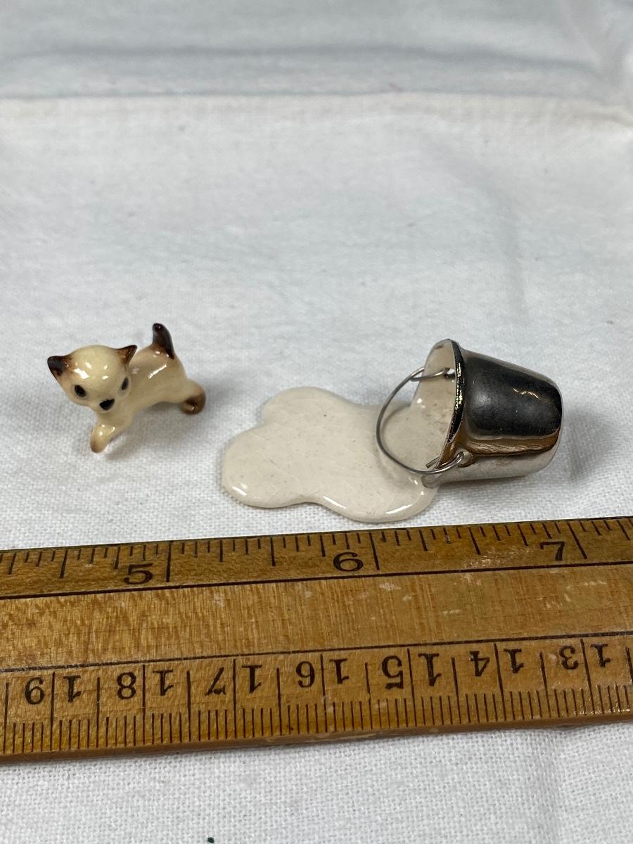 Vintage Hagen Renaker Siamese Kitten Cat with Pail of Spilt Milk Miniature Figurine. Kitten under 1" size. Good vintage condition, light crazing and dust.