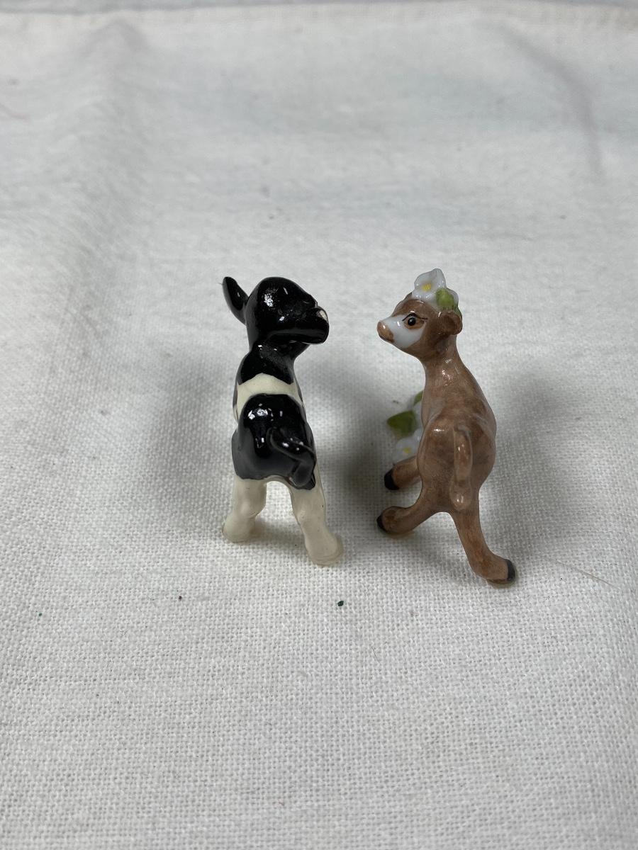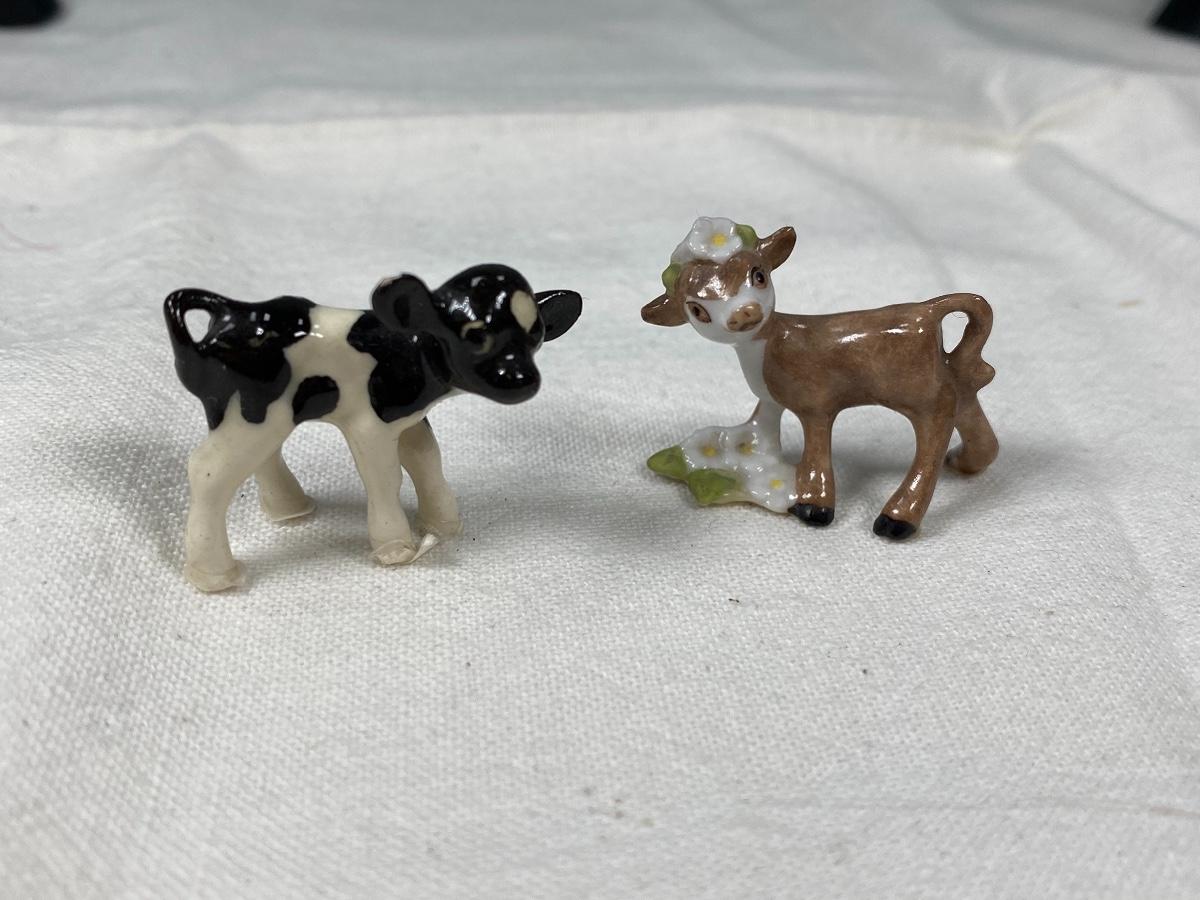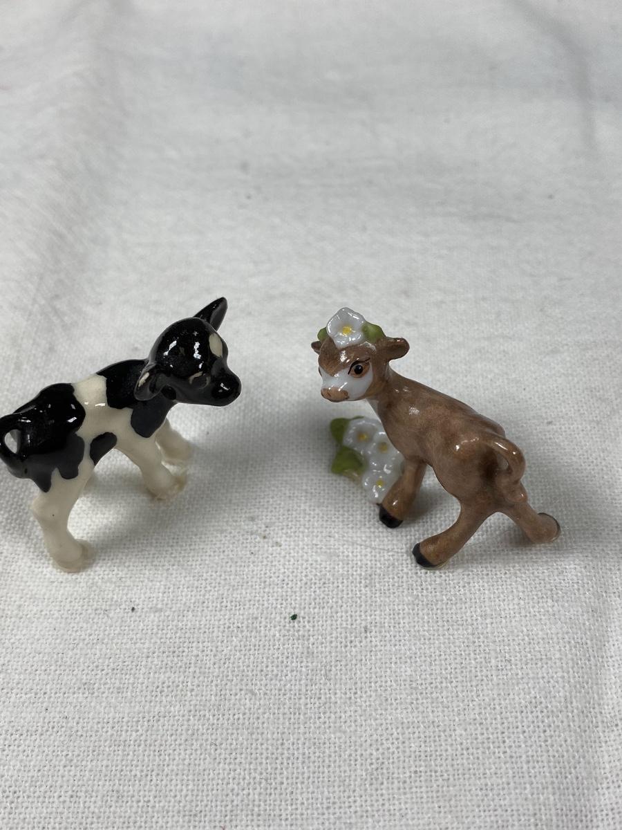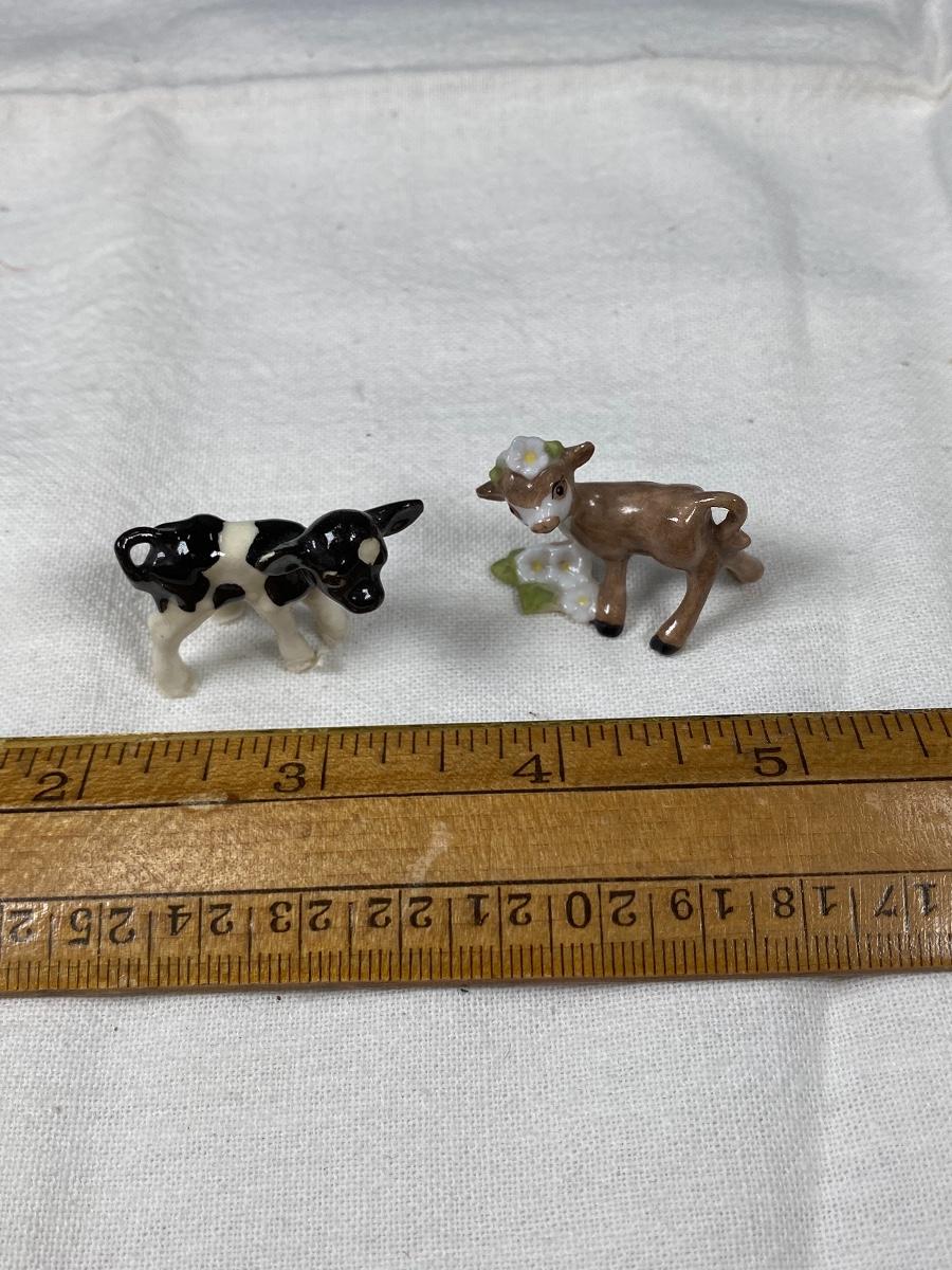 Vintage Hagen Renaker Cow Calf Miniature Figurine Pair. Cute, about 1" size.