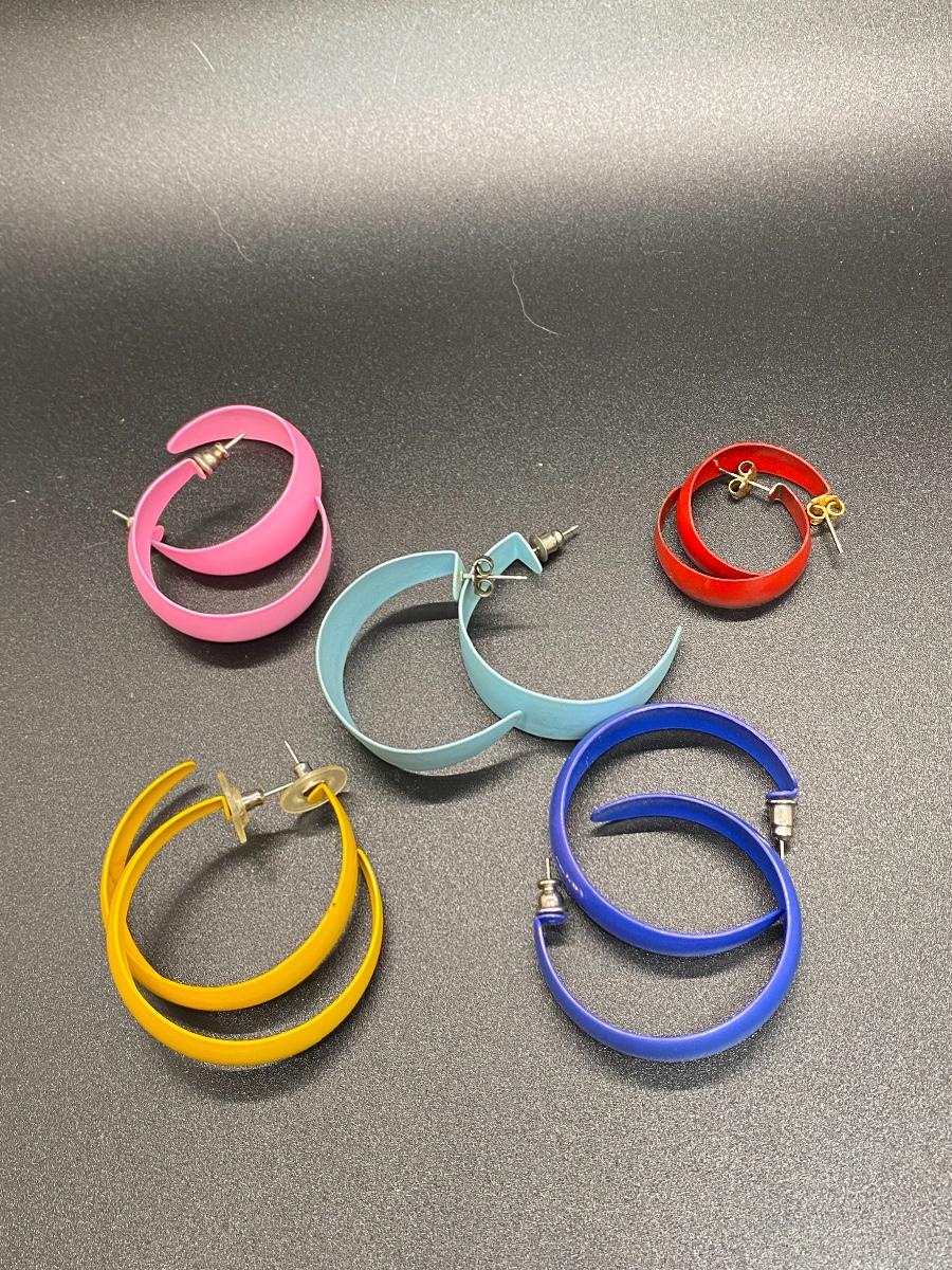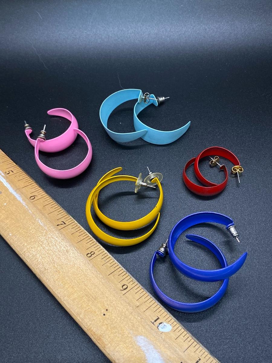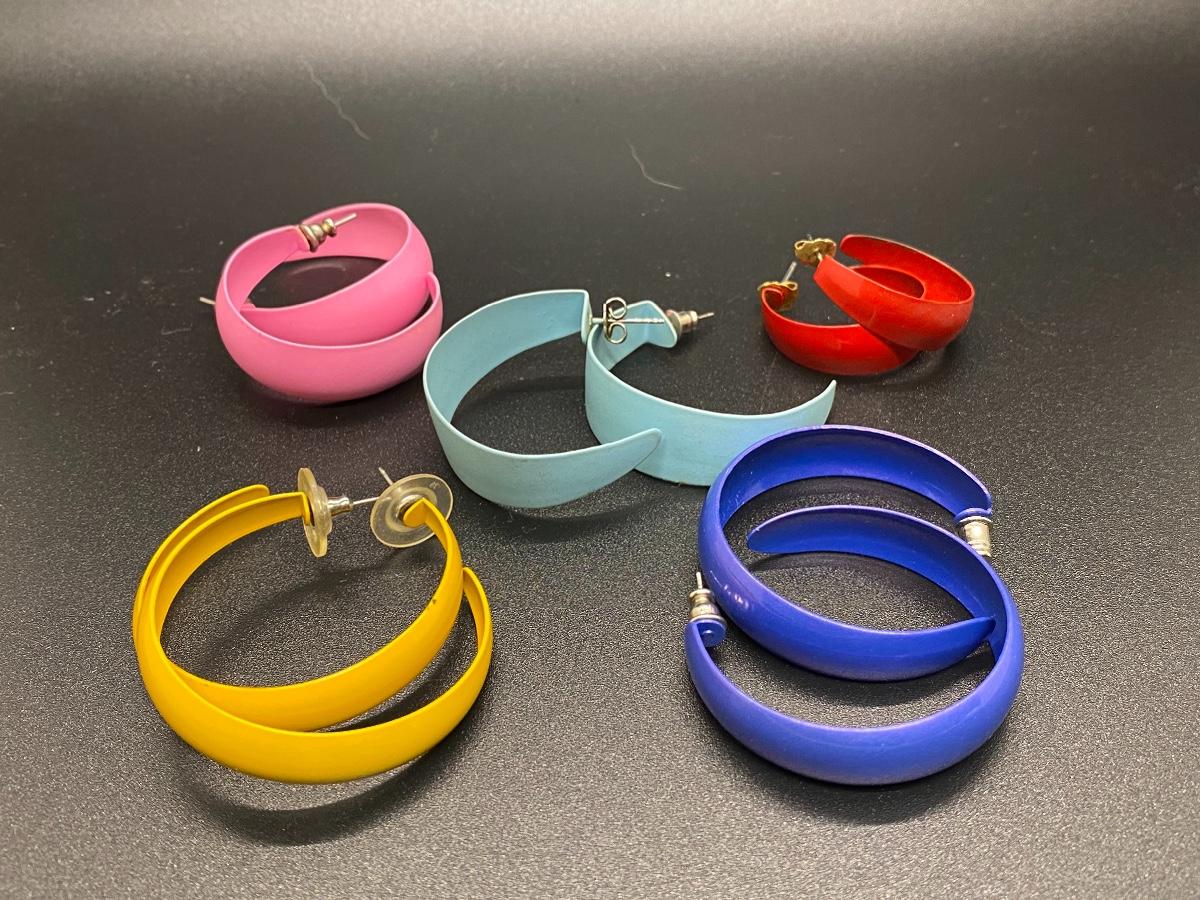 5 Pairs of Enamel Metal Hoop Earrings 1980s Retro Various Size