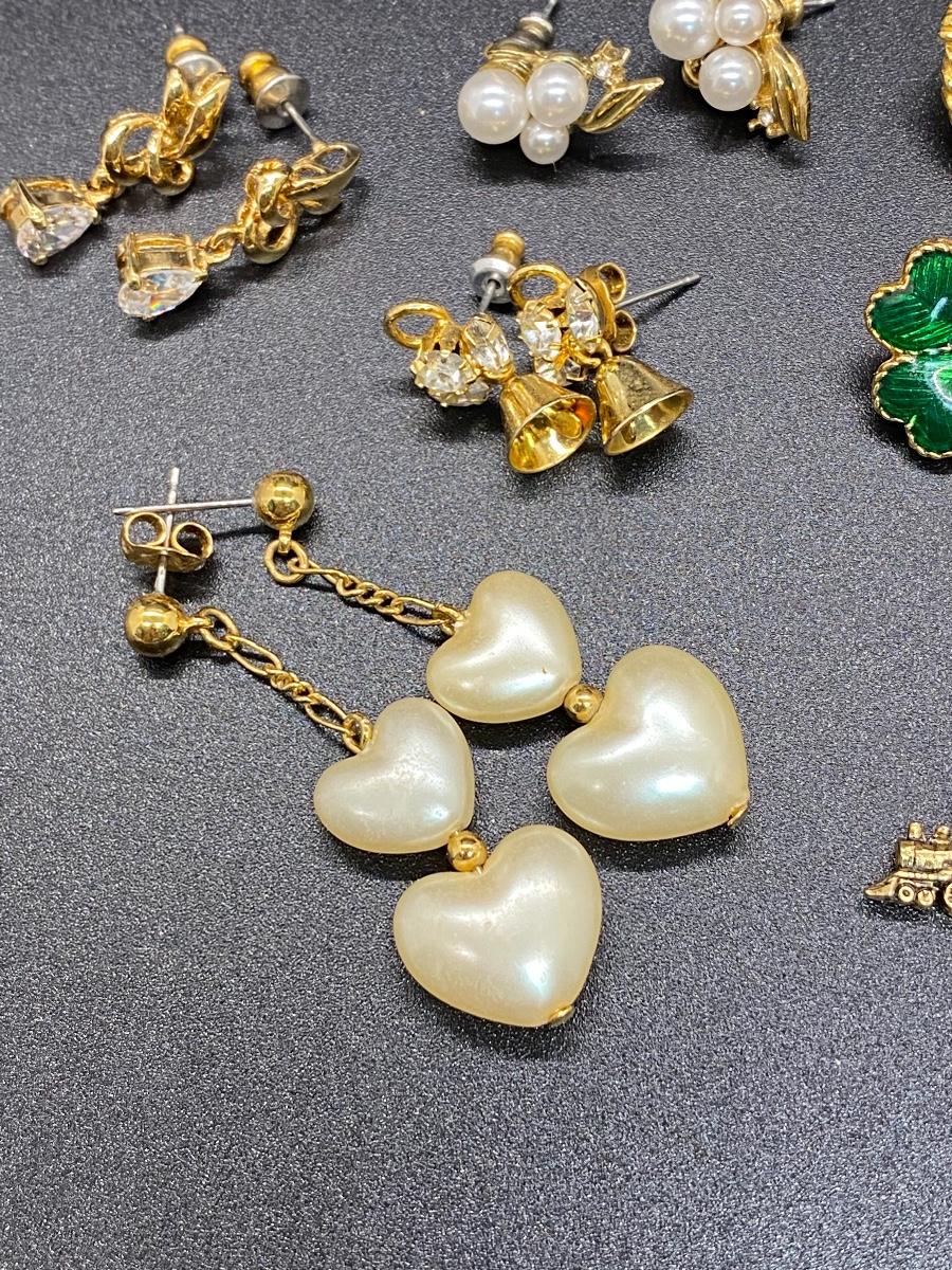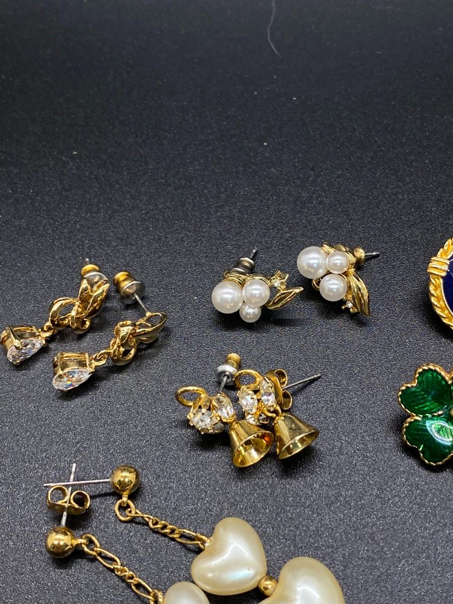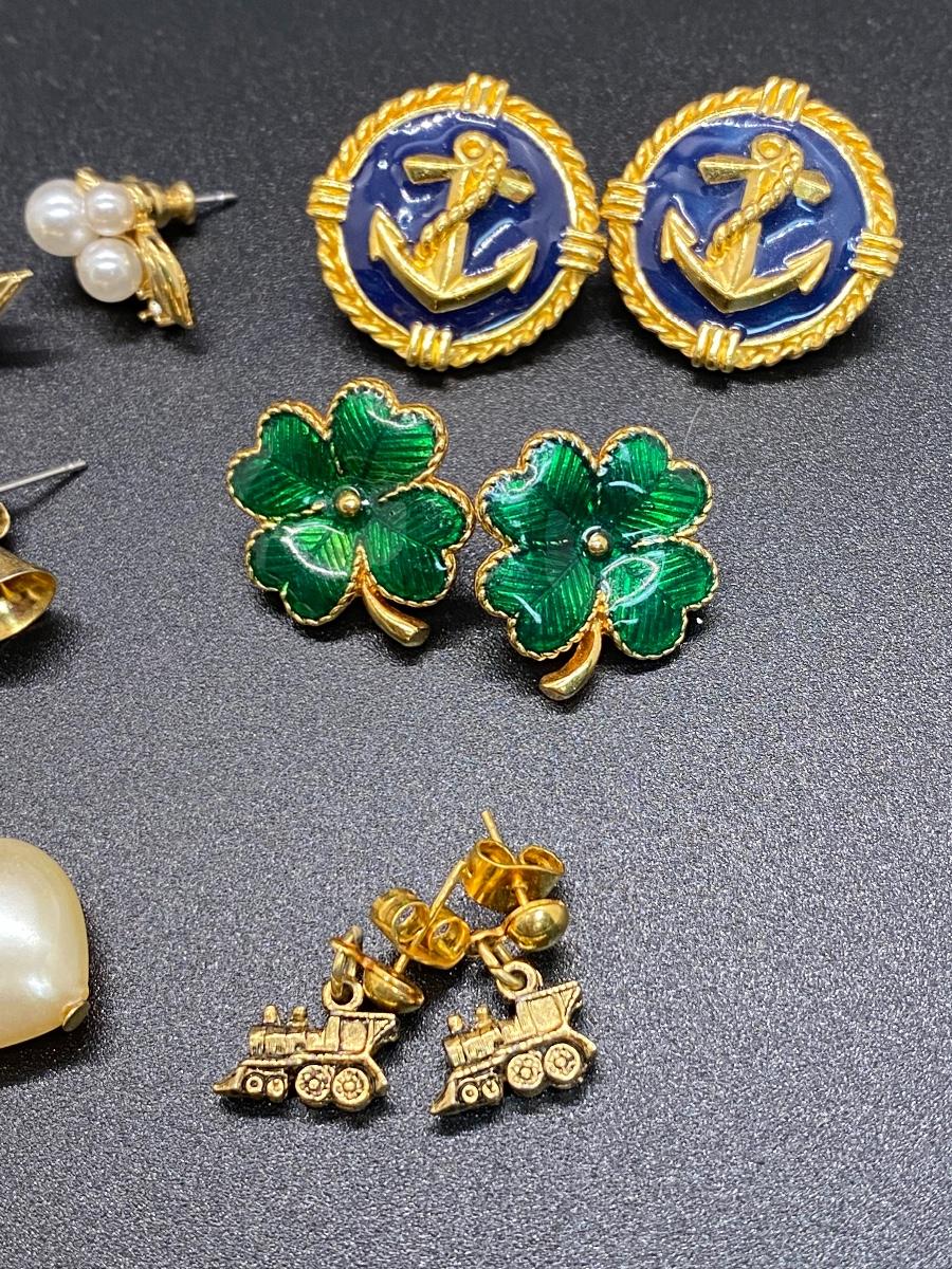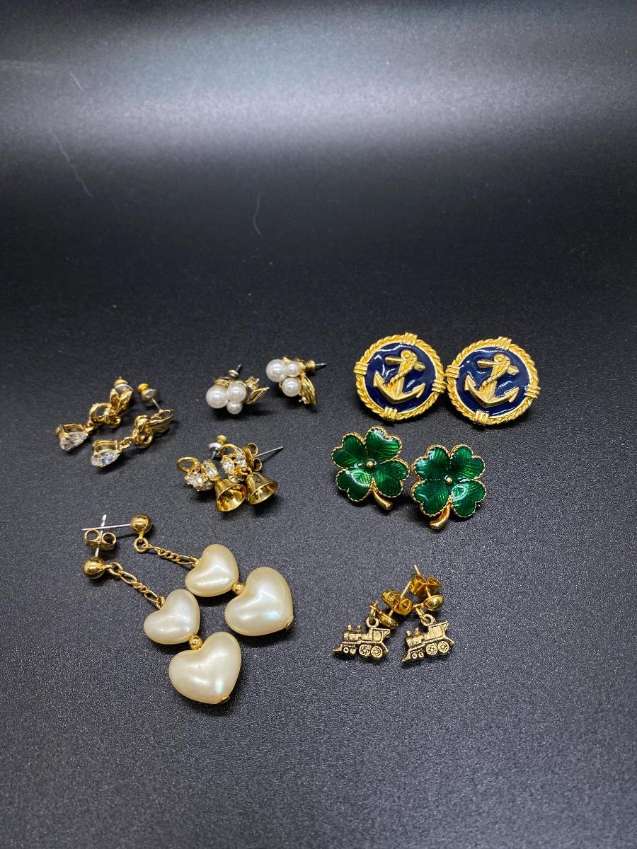 7 pairs of goldstone earrings. For pierced ears, various styles and lengths. Good worn condition.