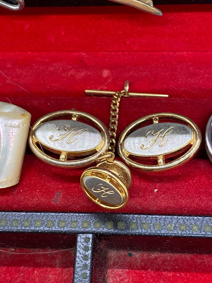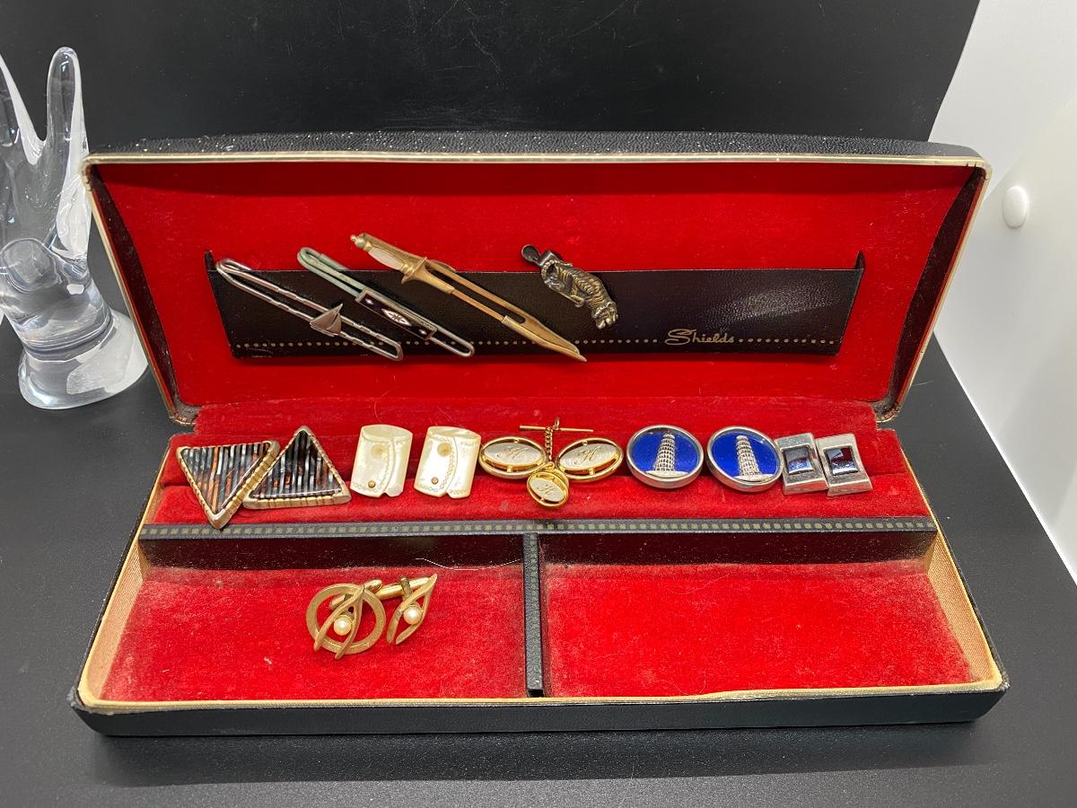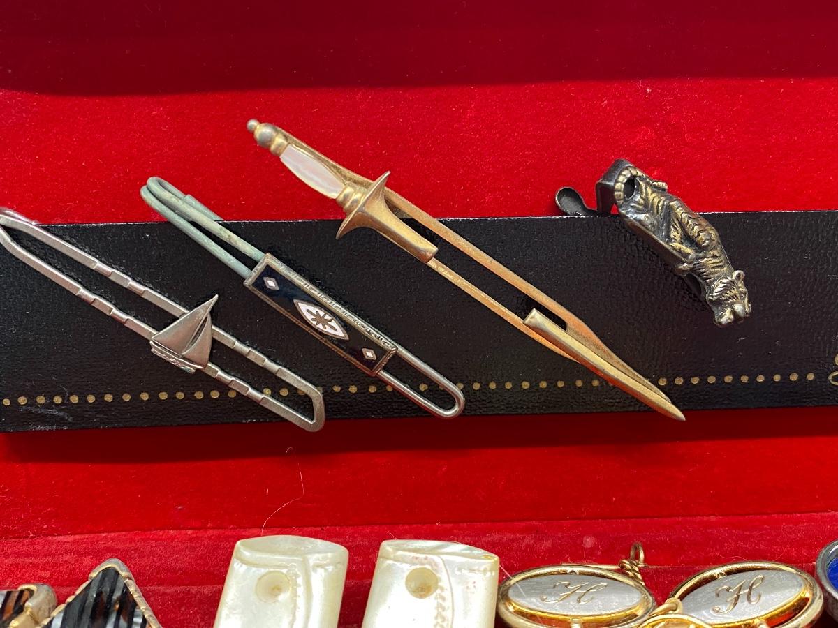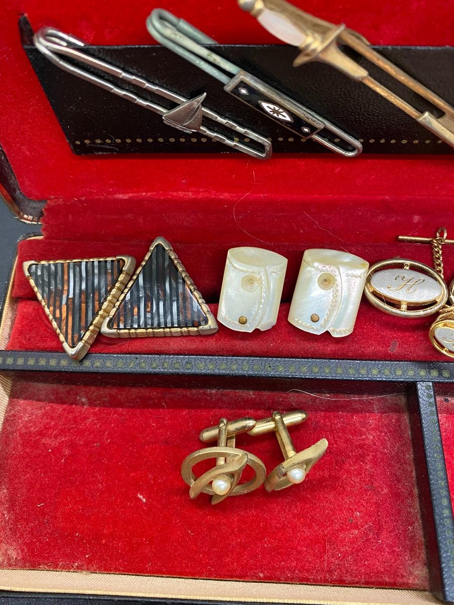 Vintage Men's Jewelry Box with Cuff Links and Tie Tacks