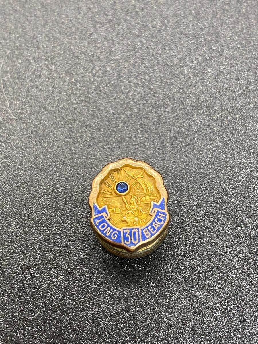 City of Long Beach, CA 30 year anniversary employee pin. Marked 10k on the back with a sapphire. Screw back. Pin weighs 1.8g without the back.