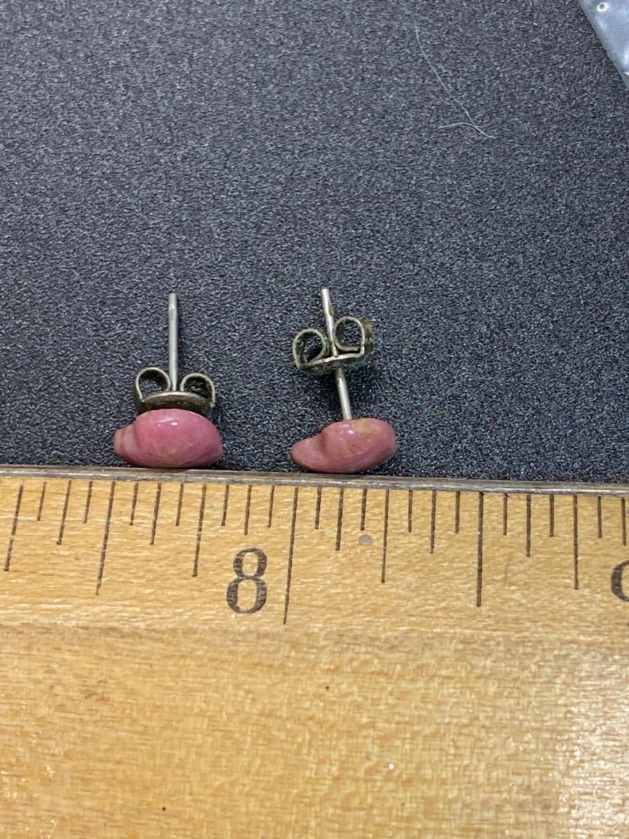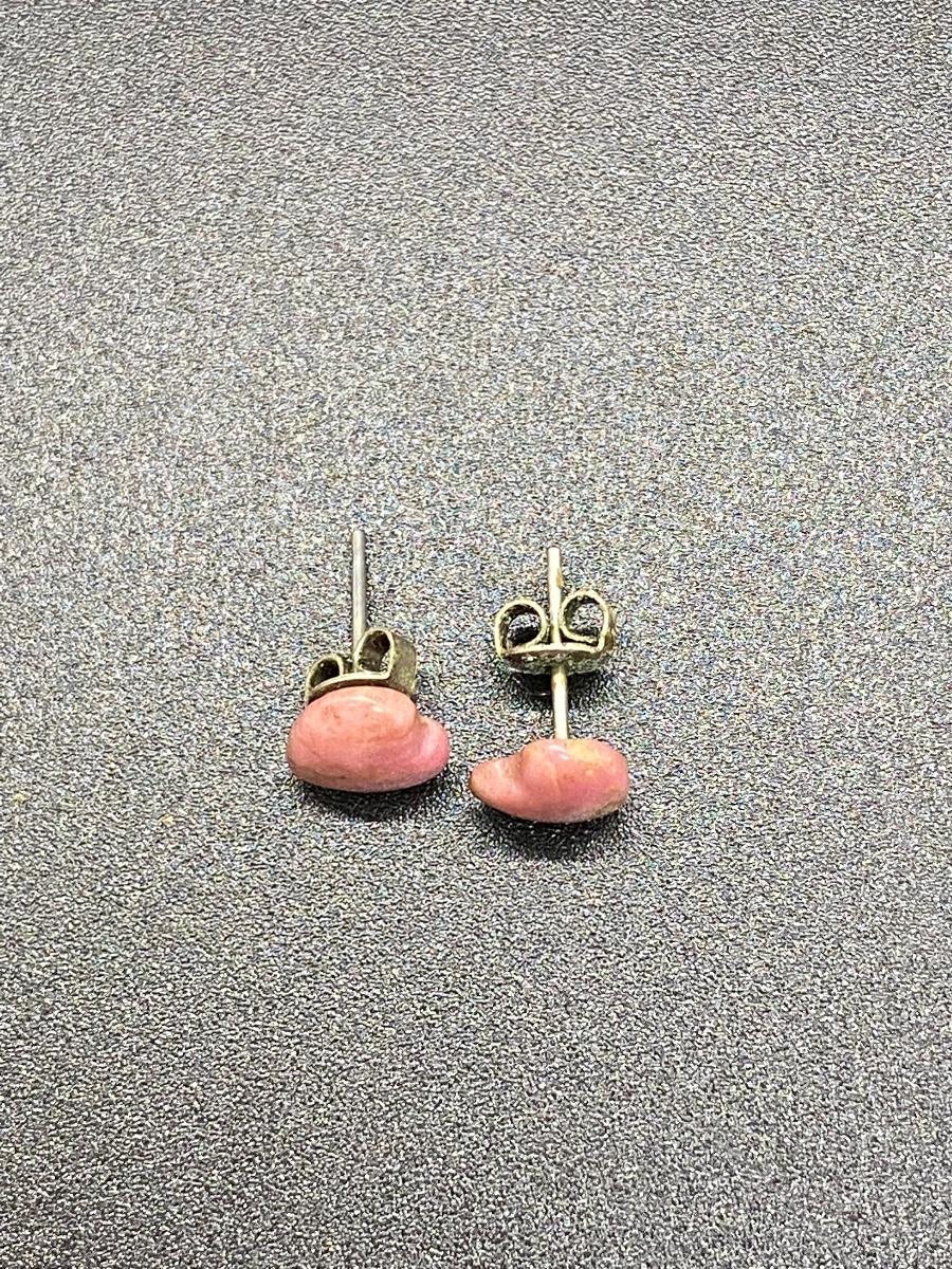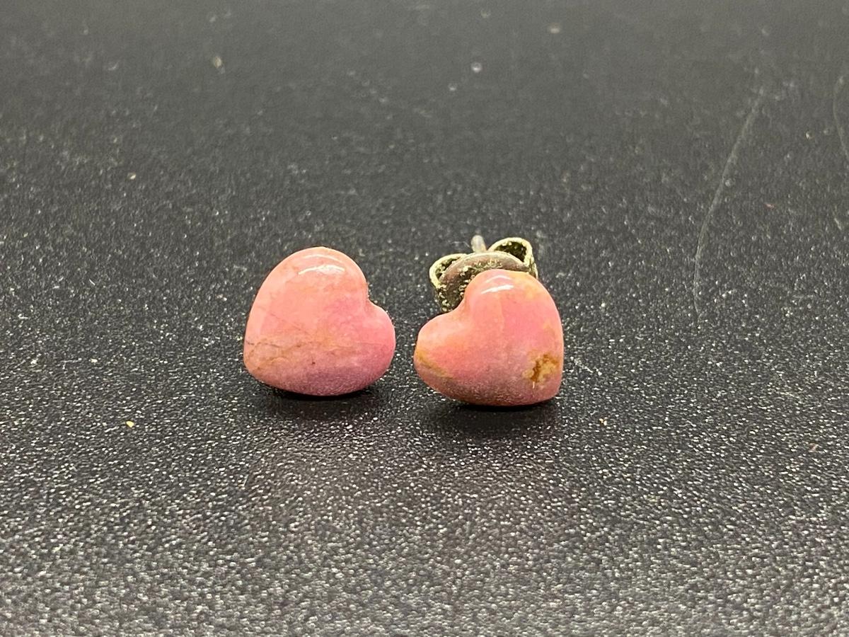 Polished pink stone heart shaped earrings. Small, 1/4" size, for pierced ears.