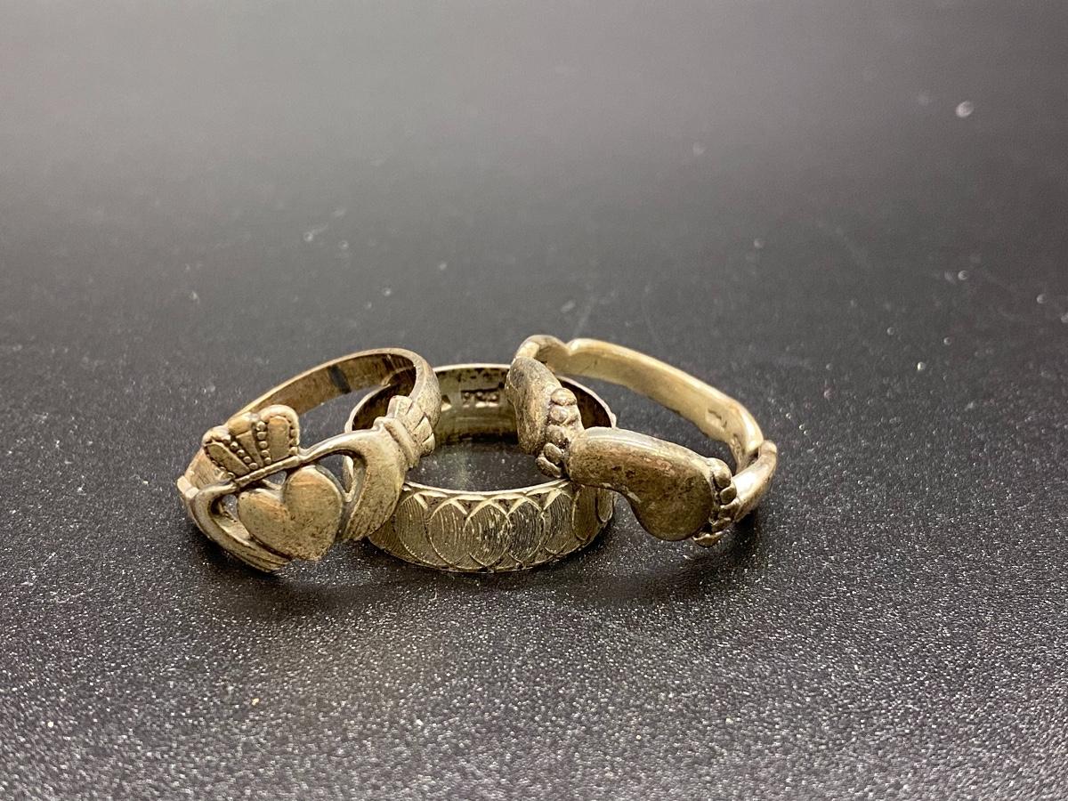 Set of 3 sterling silver fashion rings. Sized between 6 and 8.