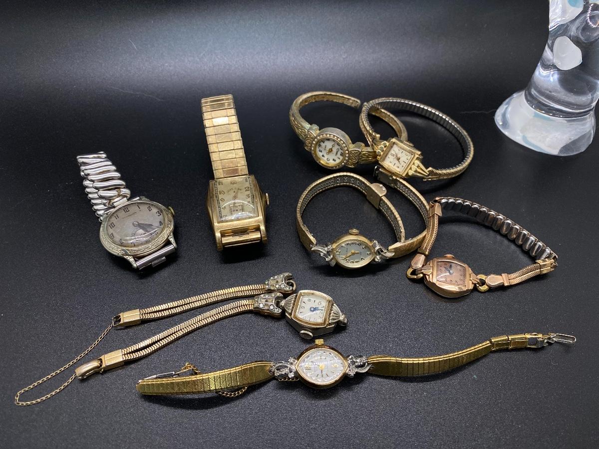 Lot of vintage and antique styled wristwatches. Men's and ladies. For parts or repair, not running.