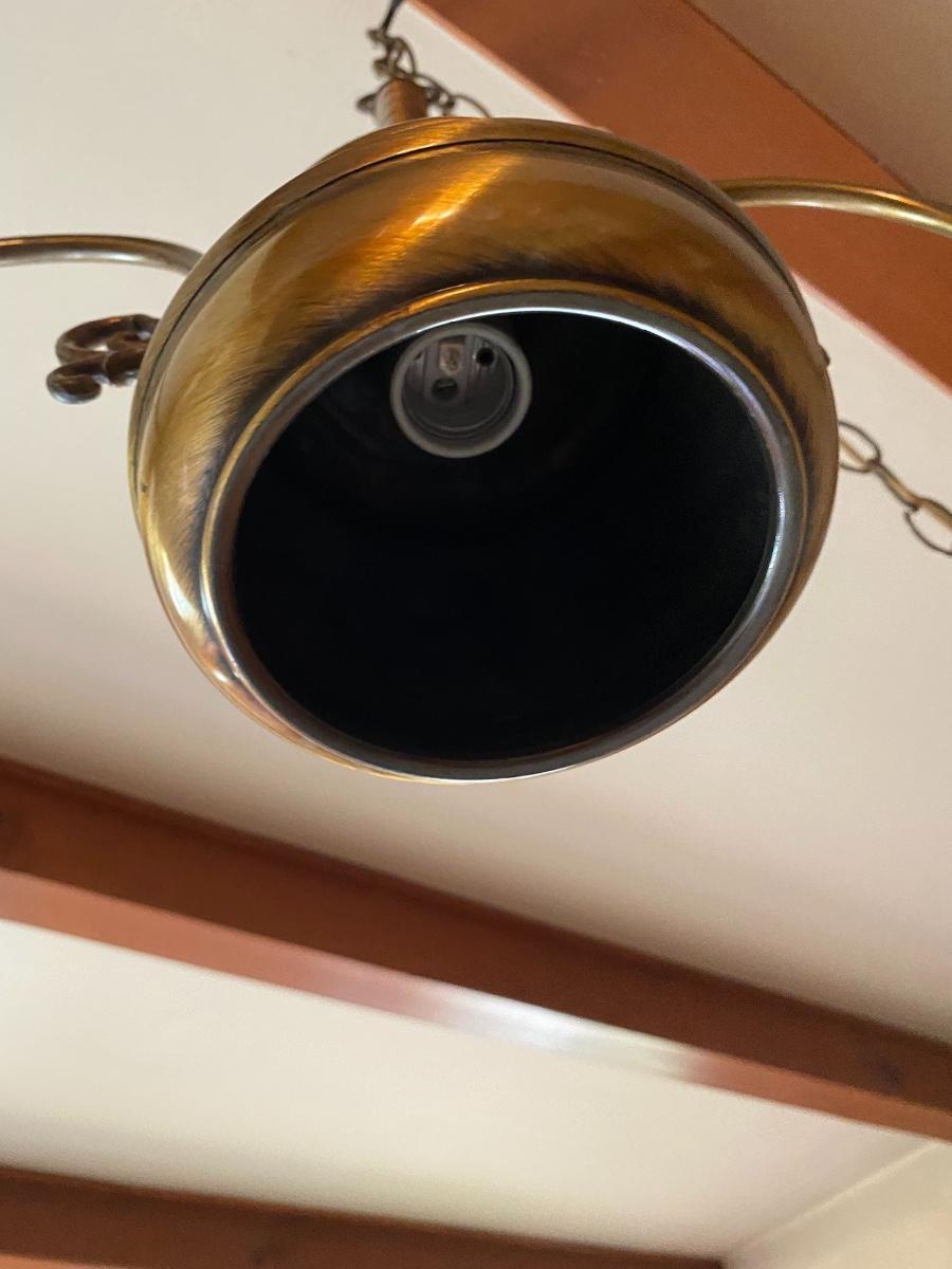 Vintage Brass Hanging Lamp. Has spots for 3 bulbs. Extra long cord.