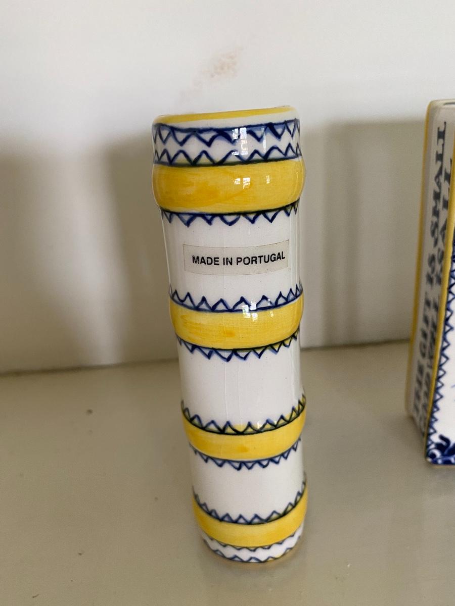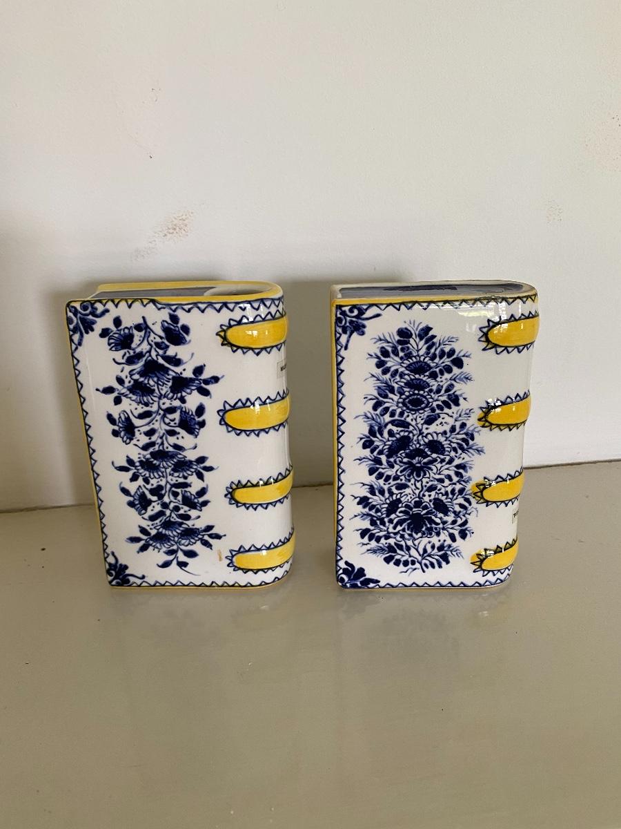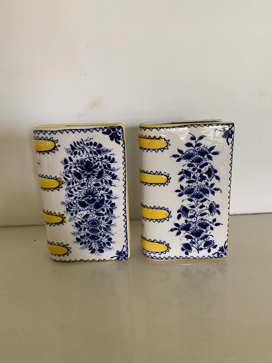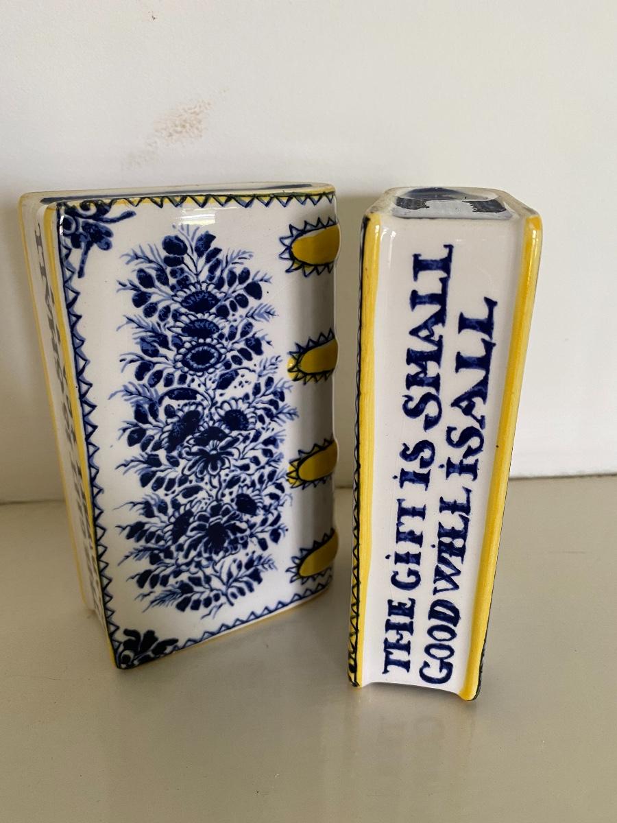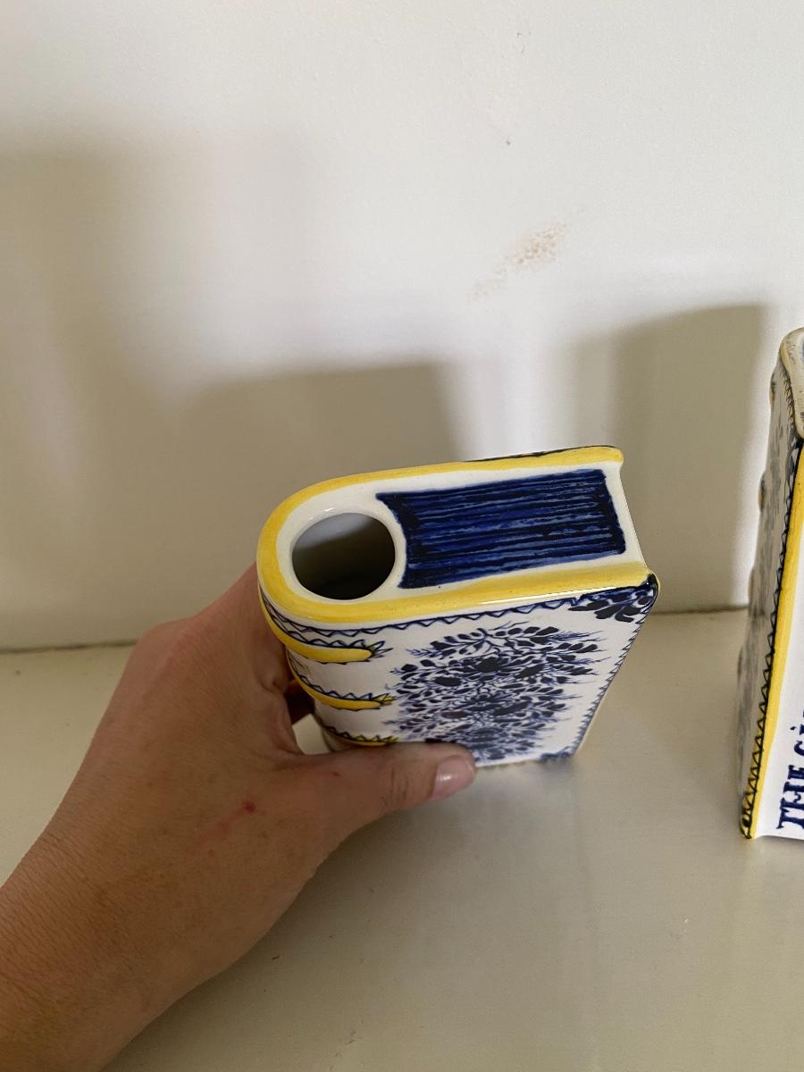Vintage Yellow and Blue Floral Ceramic Book Figurines. About 4".