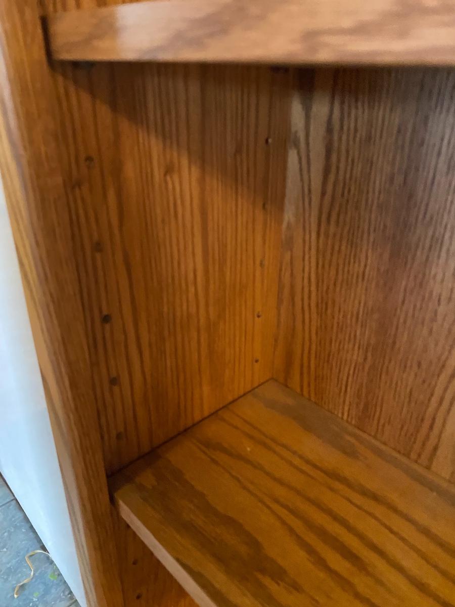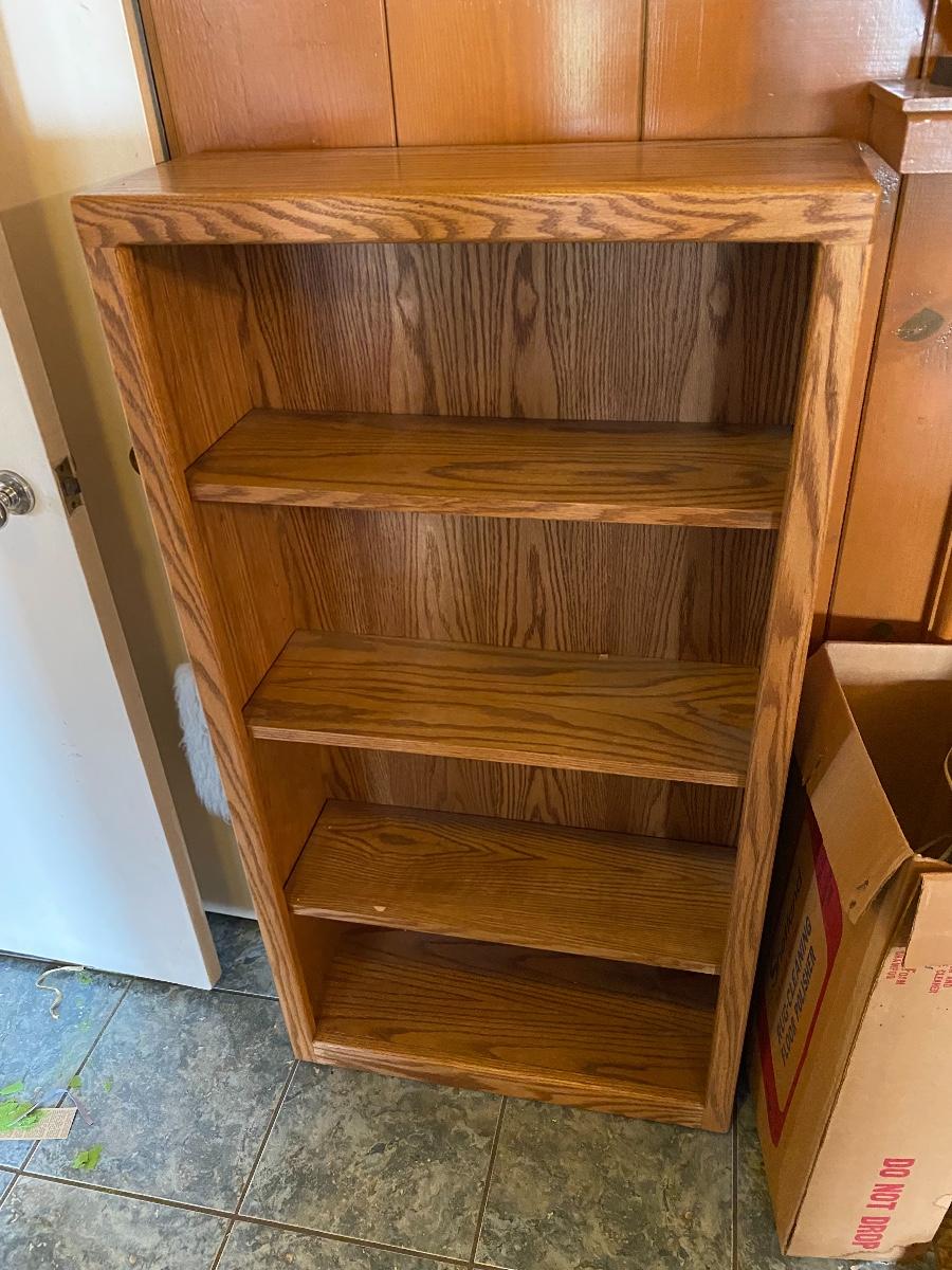 Oak Adjustable Shelf Book Case. 3 adjustable shelves. About 4' tall.