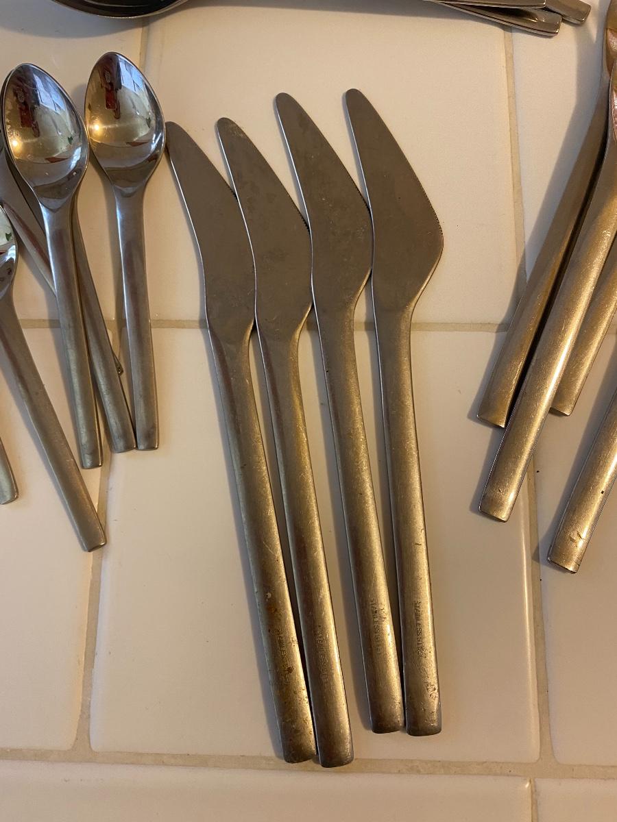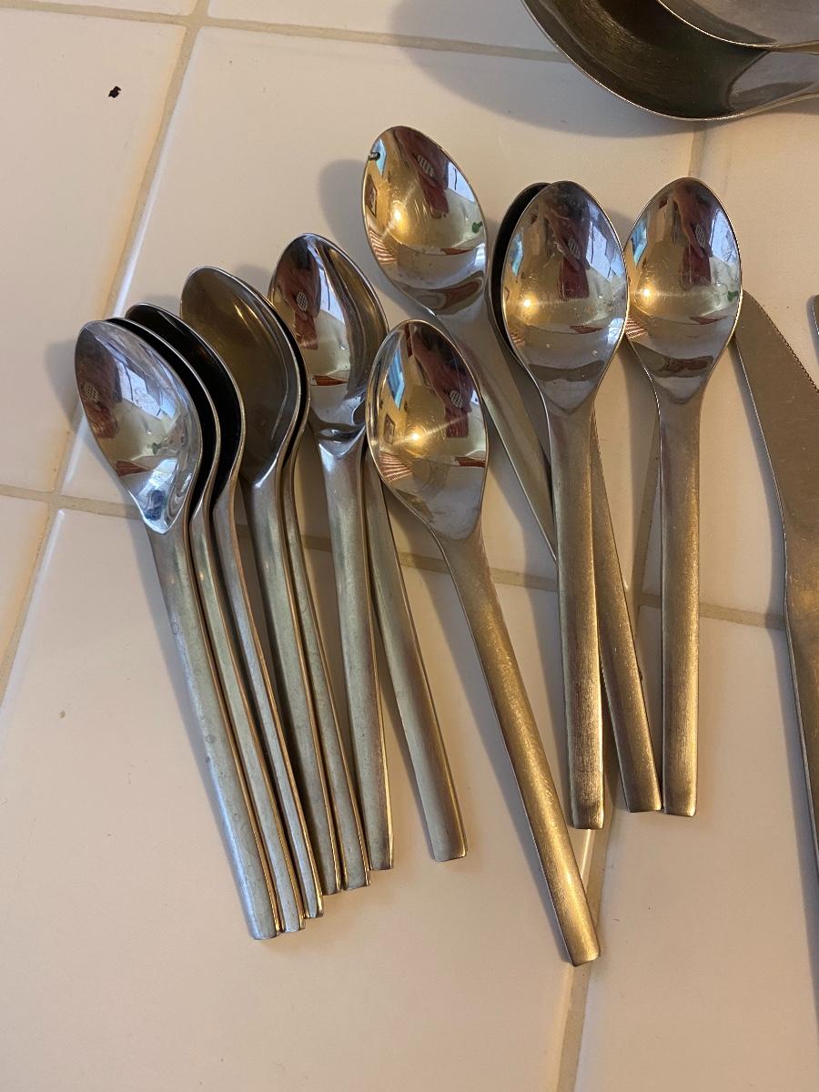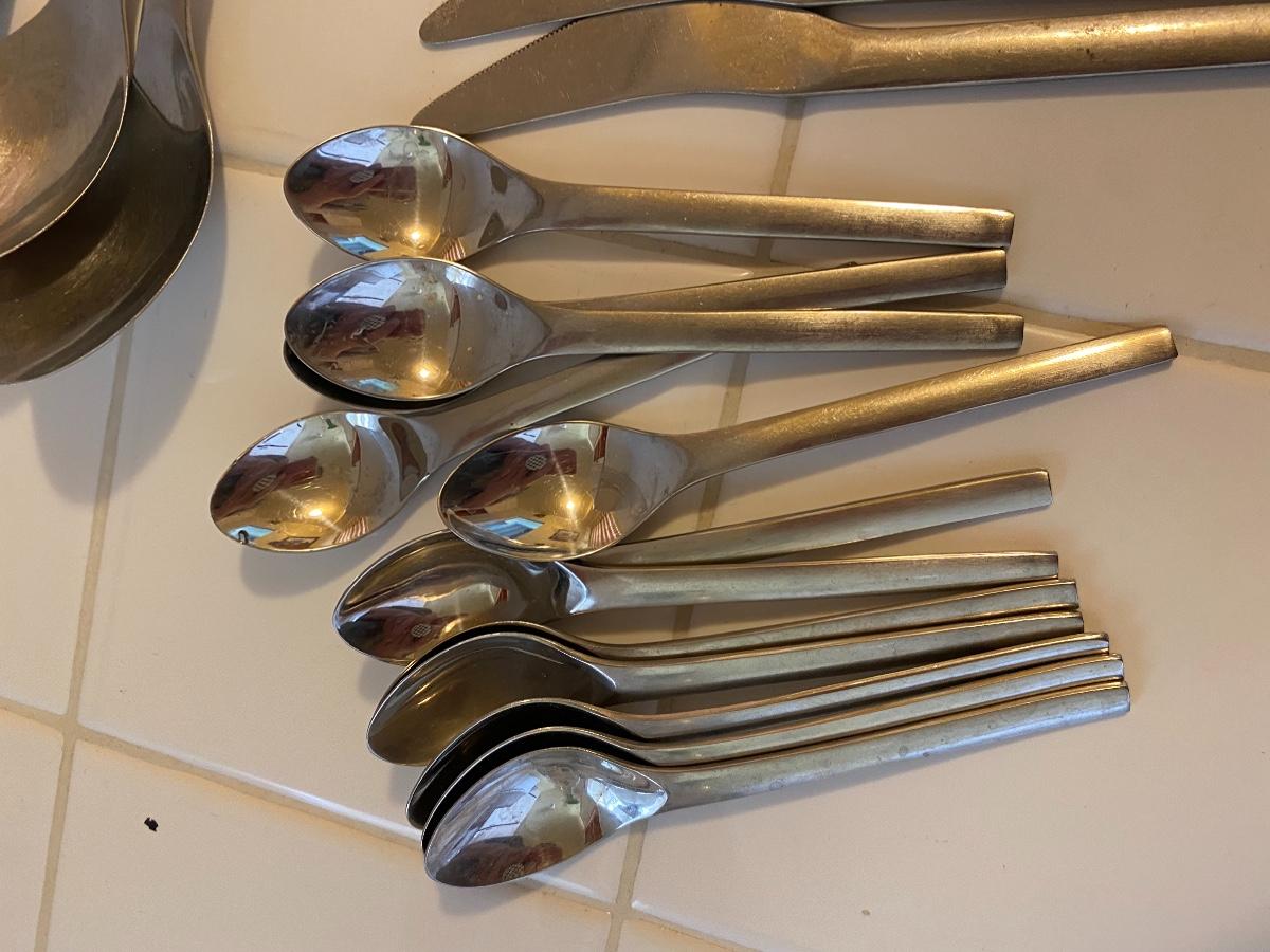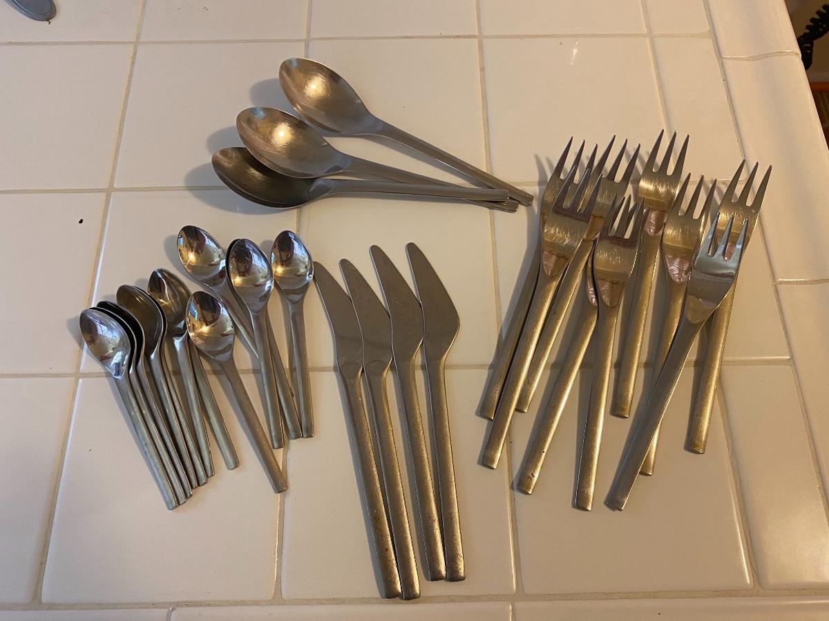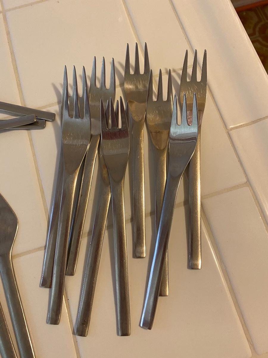 Mid Century Sleek Stainless Flatware Lot, matching, unbranded.