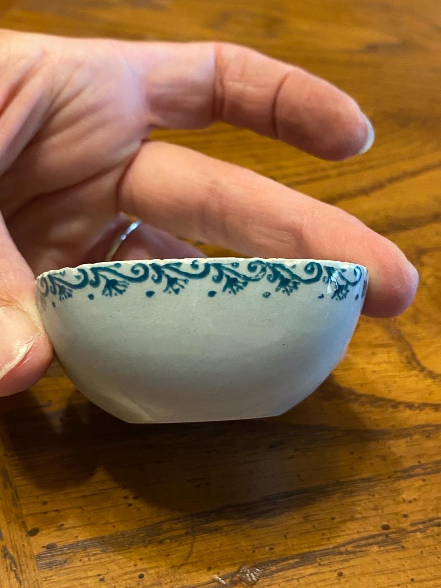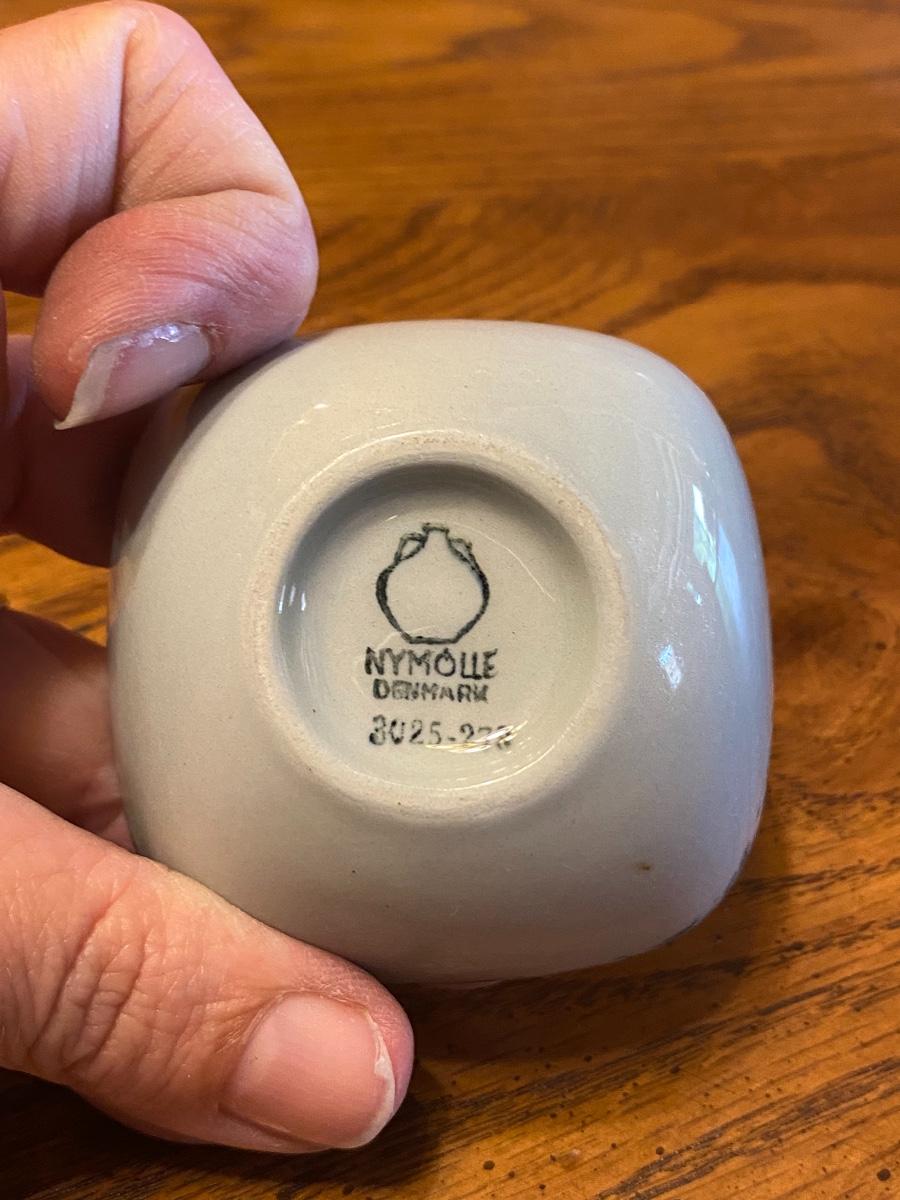 Vintage Trinket Spice Tea Bag Bowl Dish Nymolle Denmark. Small chipping along edge, displays great. About 2" size.