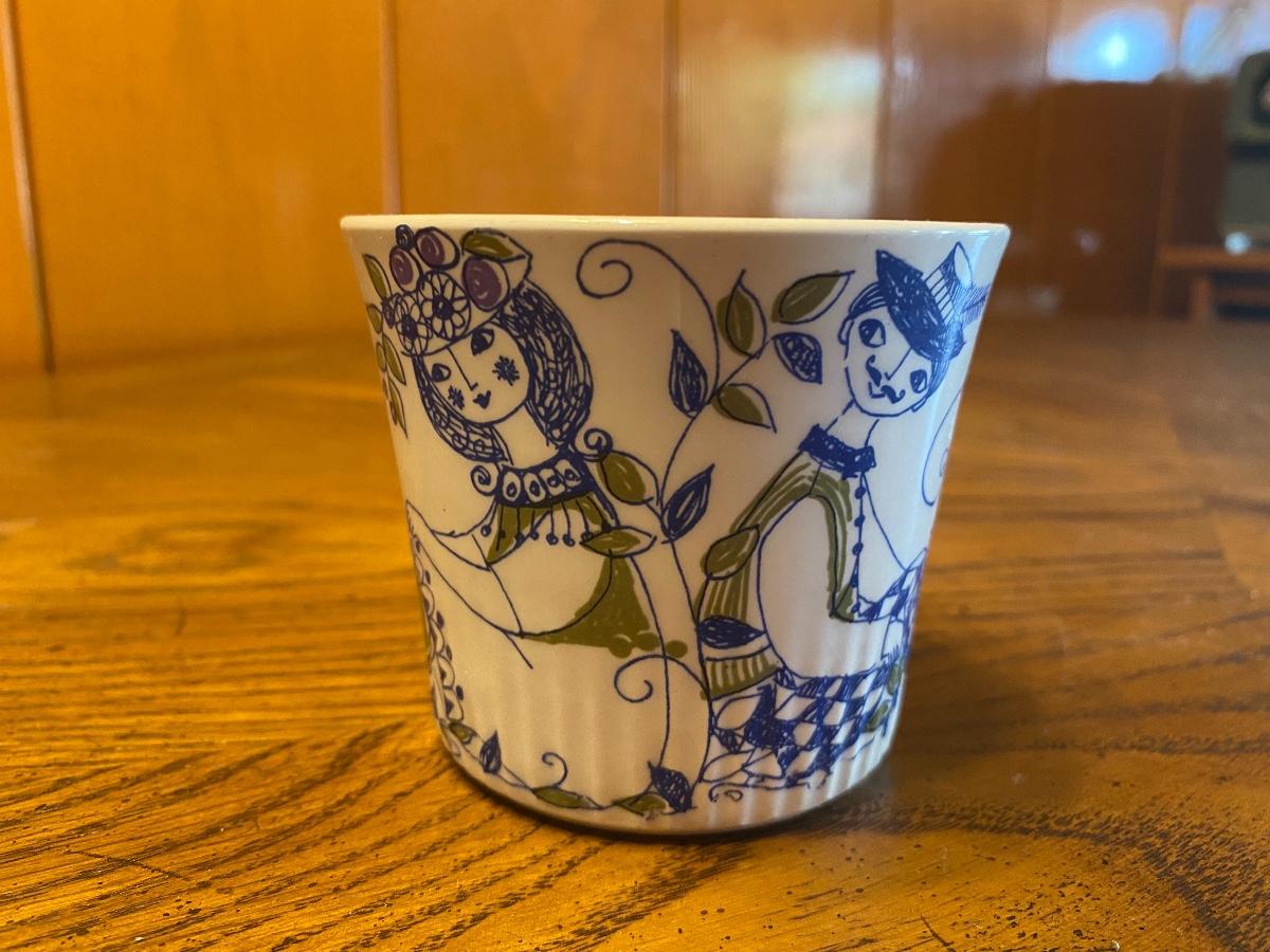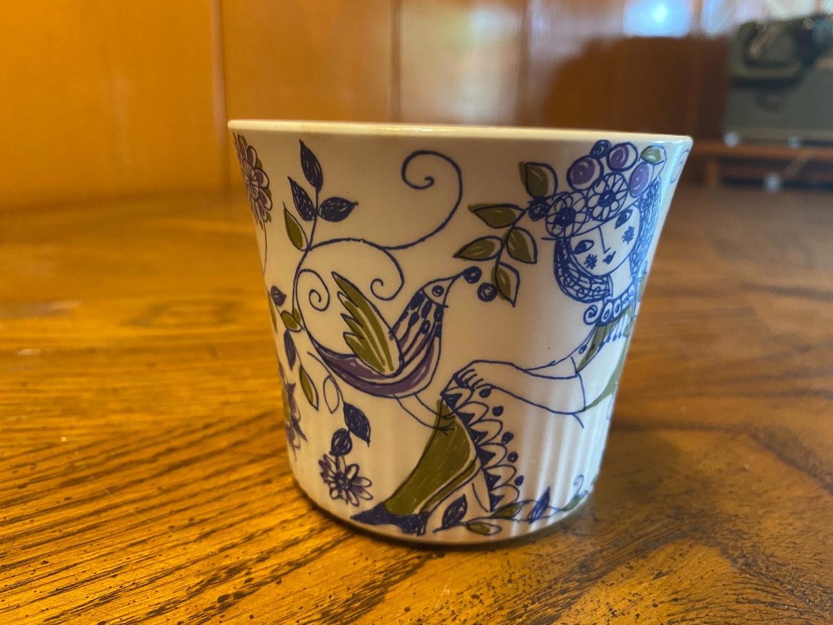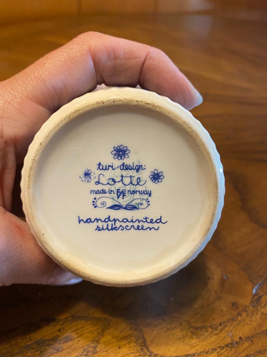 Turi Design LOTTE Hand Painted Silk Screen Tea Cup. Made in Norway. Very light wear, no chips. May have been a sugar bowl originally, no lid.