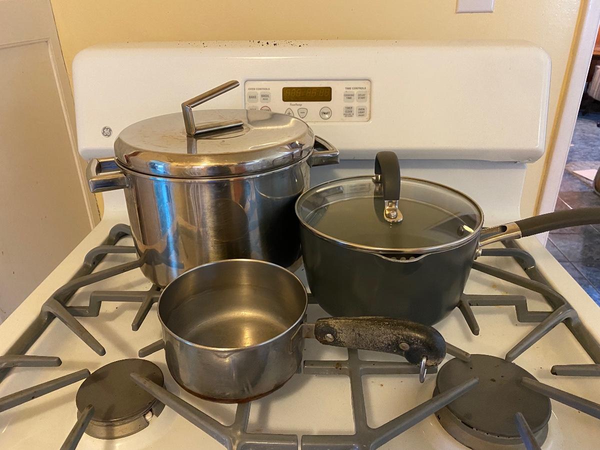 Pots & Pans Lot. The small pan does not have a lid. All in good used condition.
