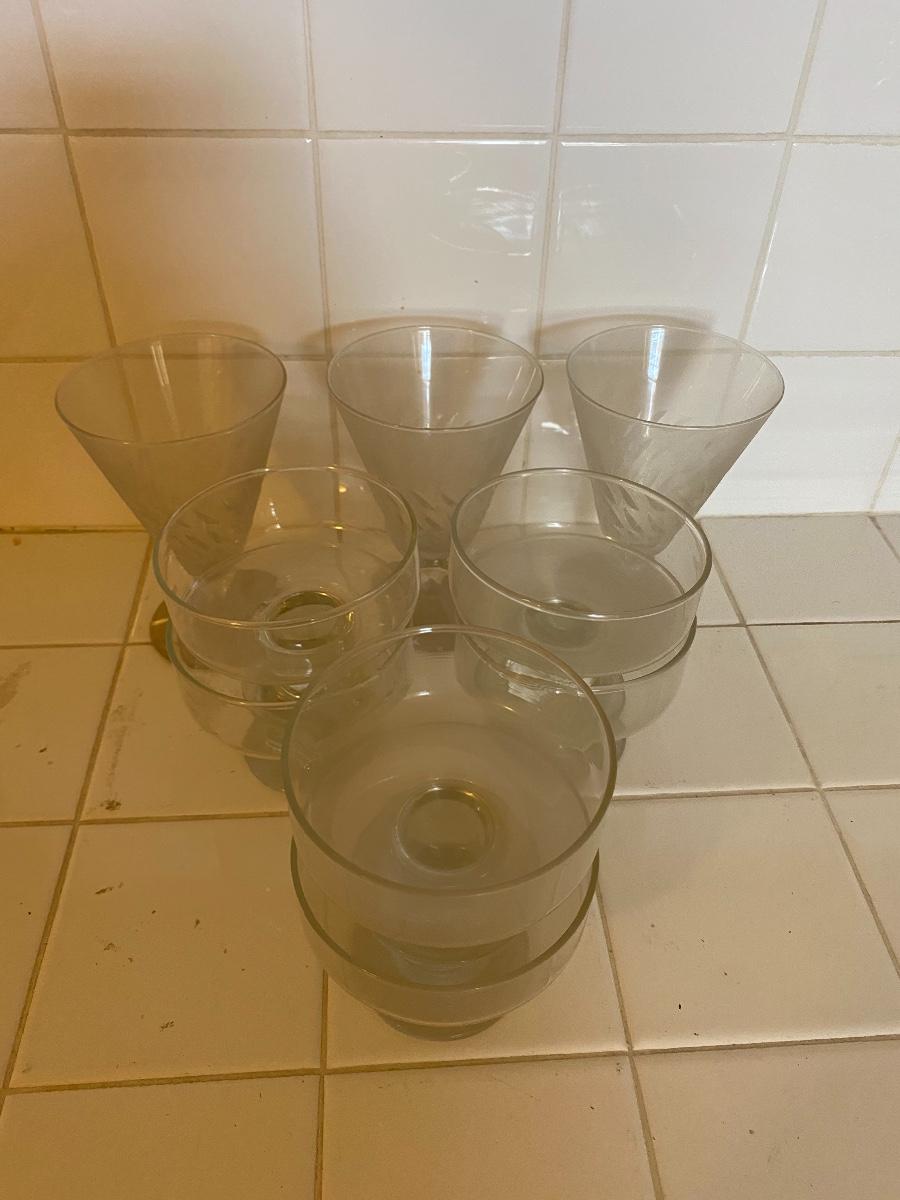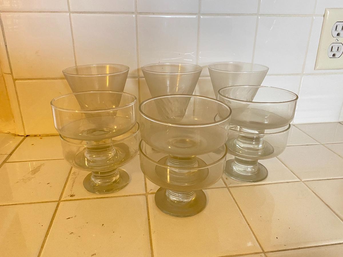 Clear Glass Desert Parfait Berry Bowls. Dusty from cupboard.