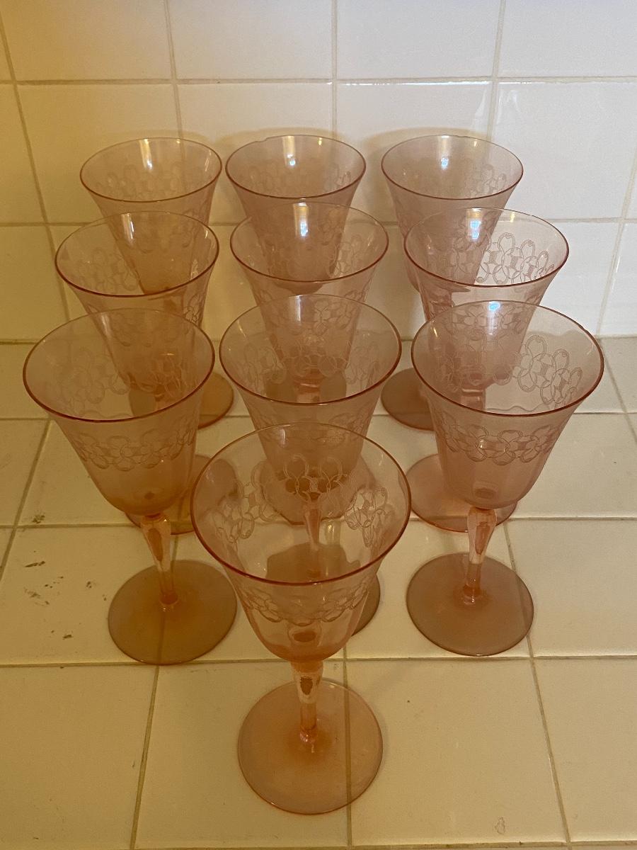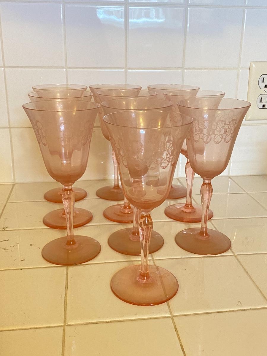 Vintage Pale Pink Etched Wine Water Goblets