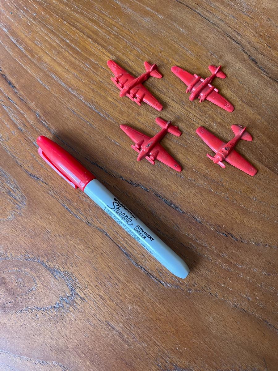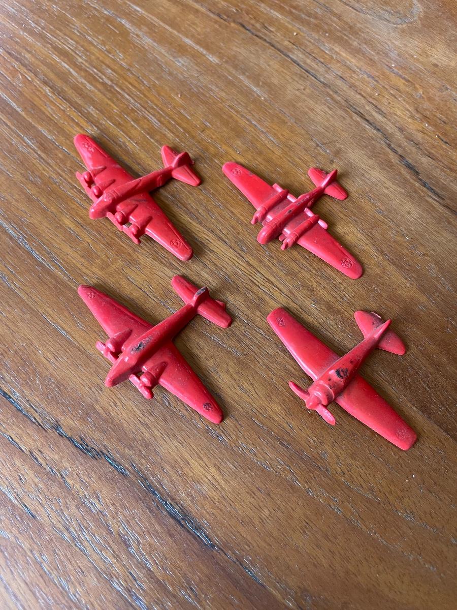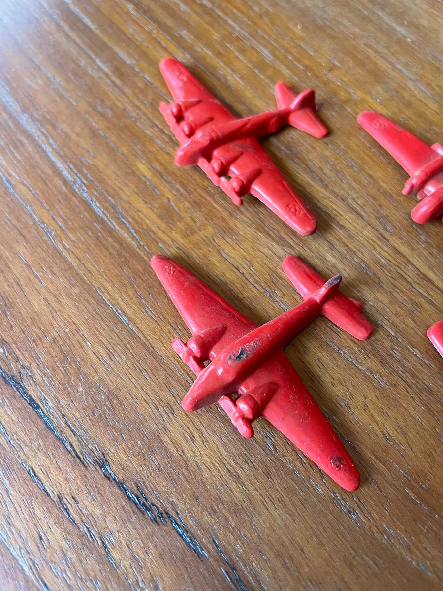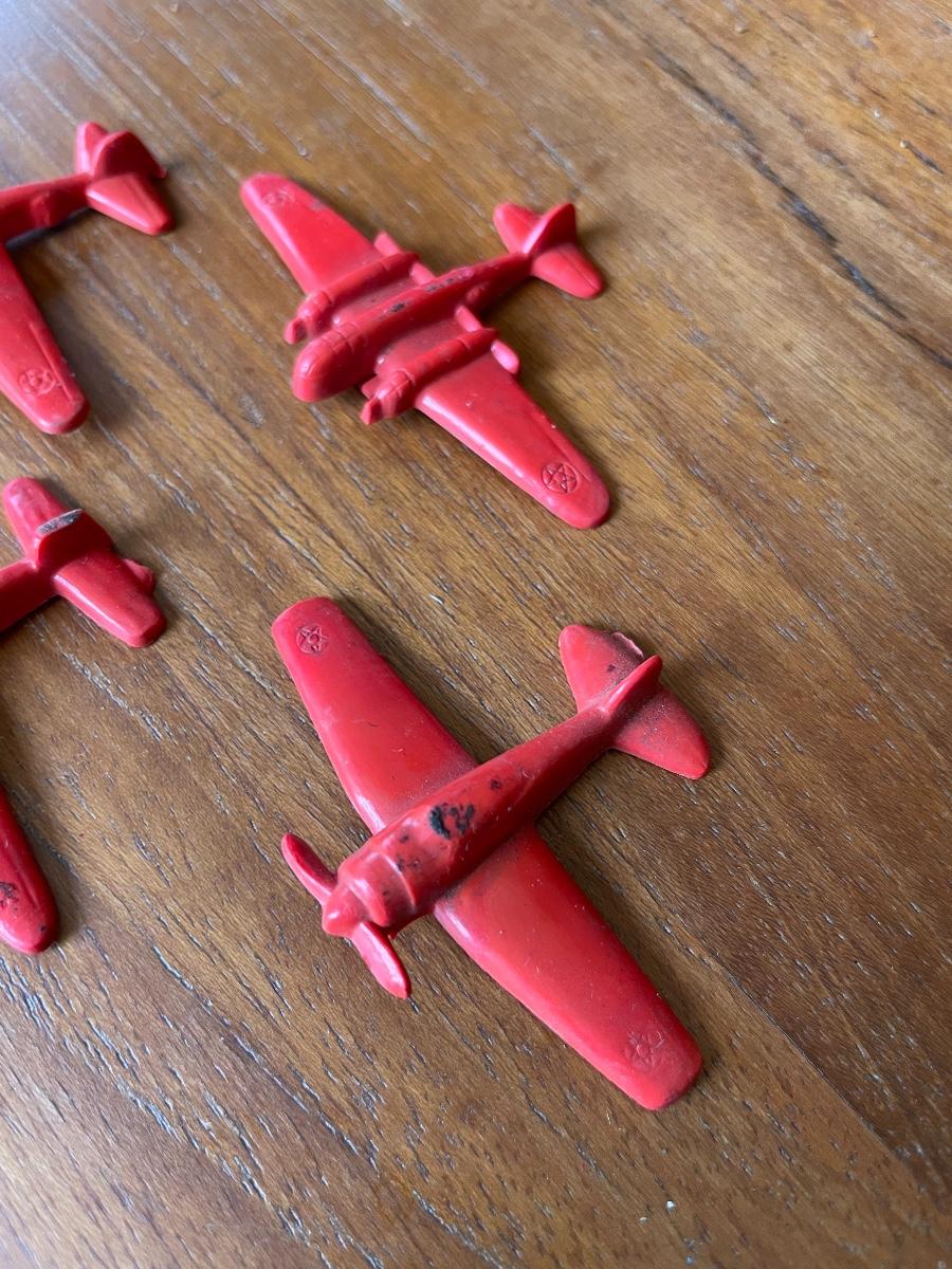 Vintage Red Plastic Airplane Toys. Signs of age and wear.