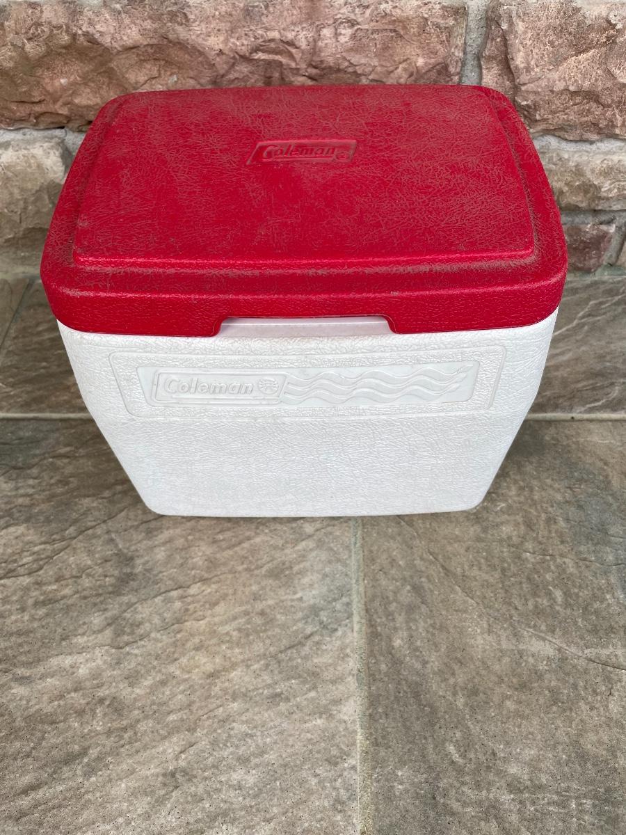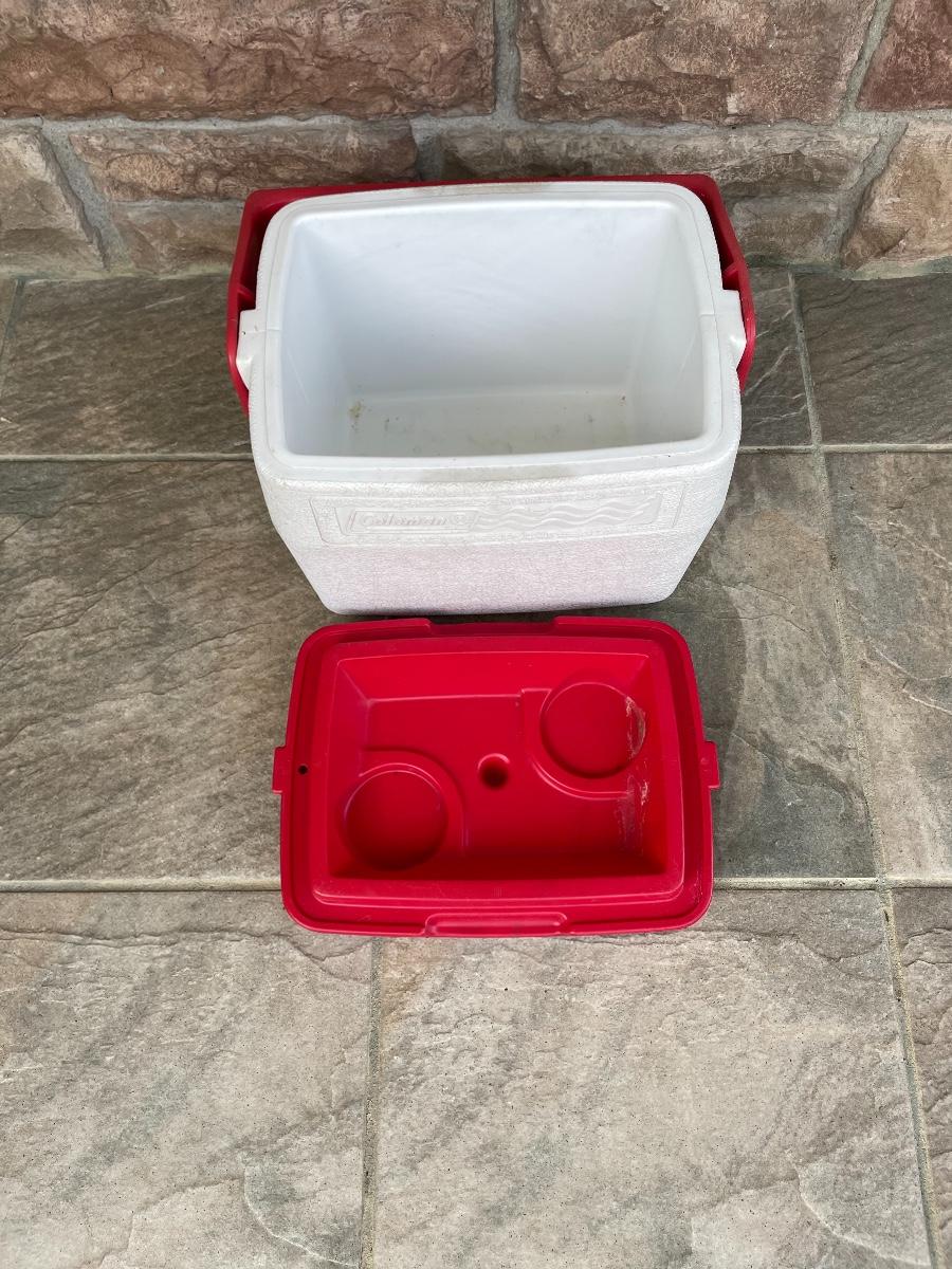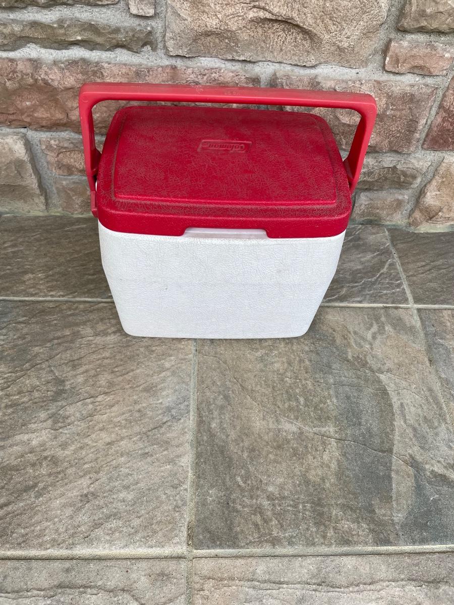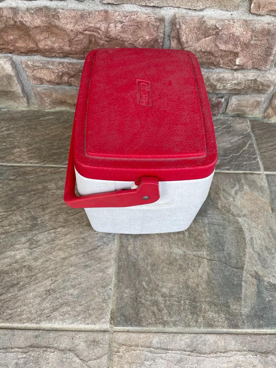 Vintage Red and White Cooler. Good condition. Smaller size.