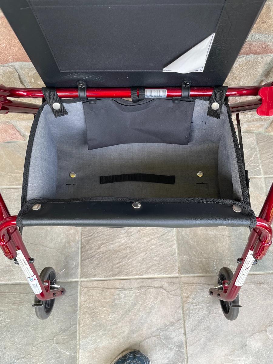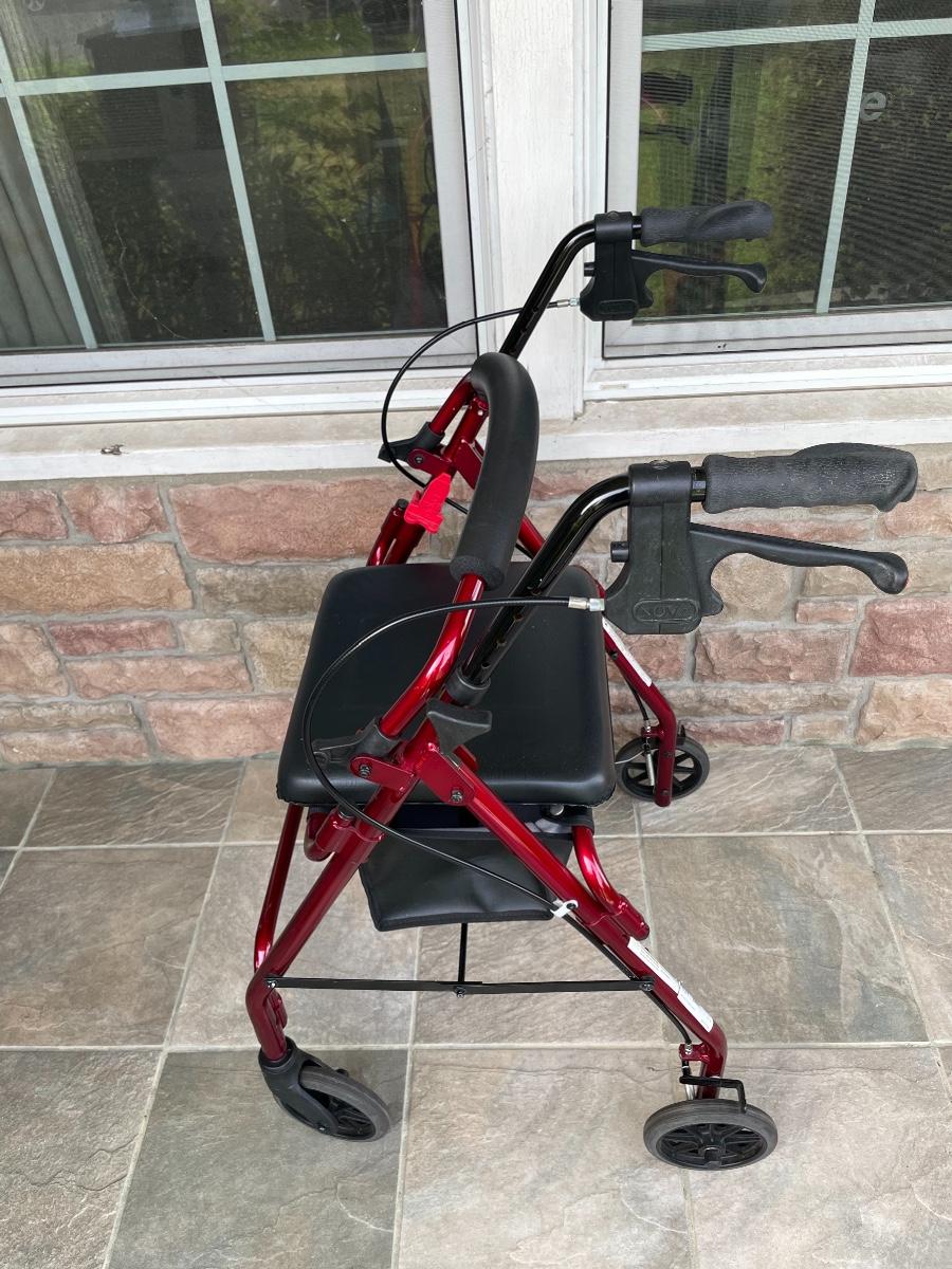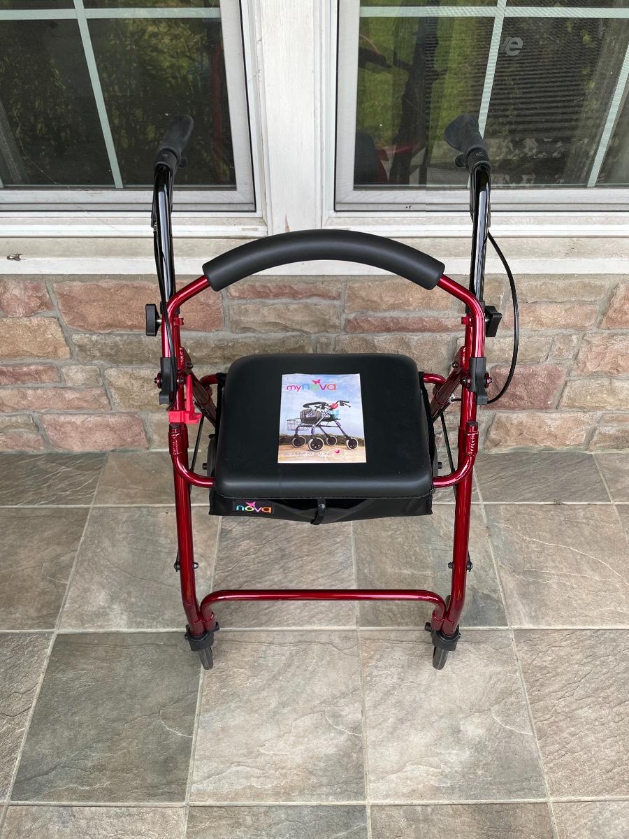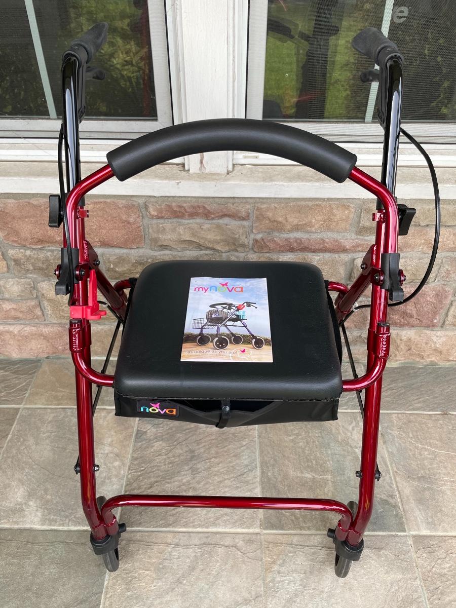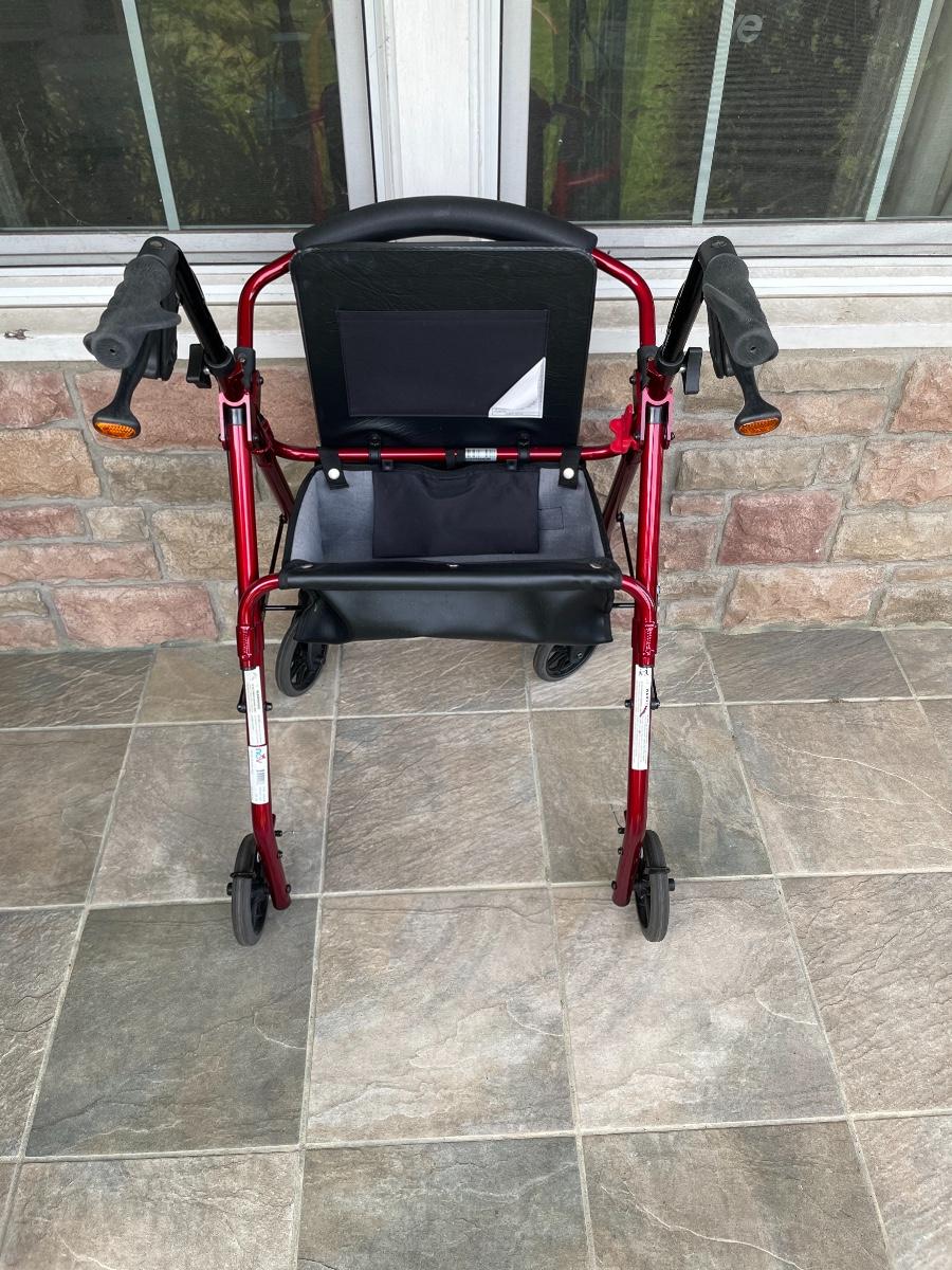NOV Red Wheeled Walker with Seat & Brakes. Looks new.