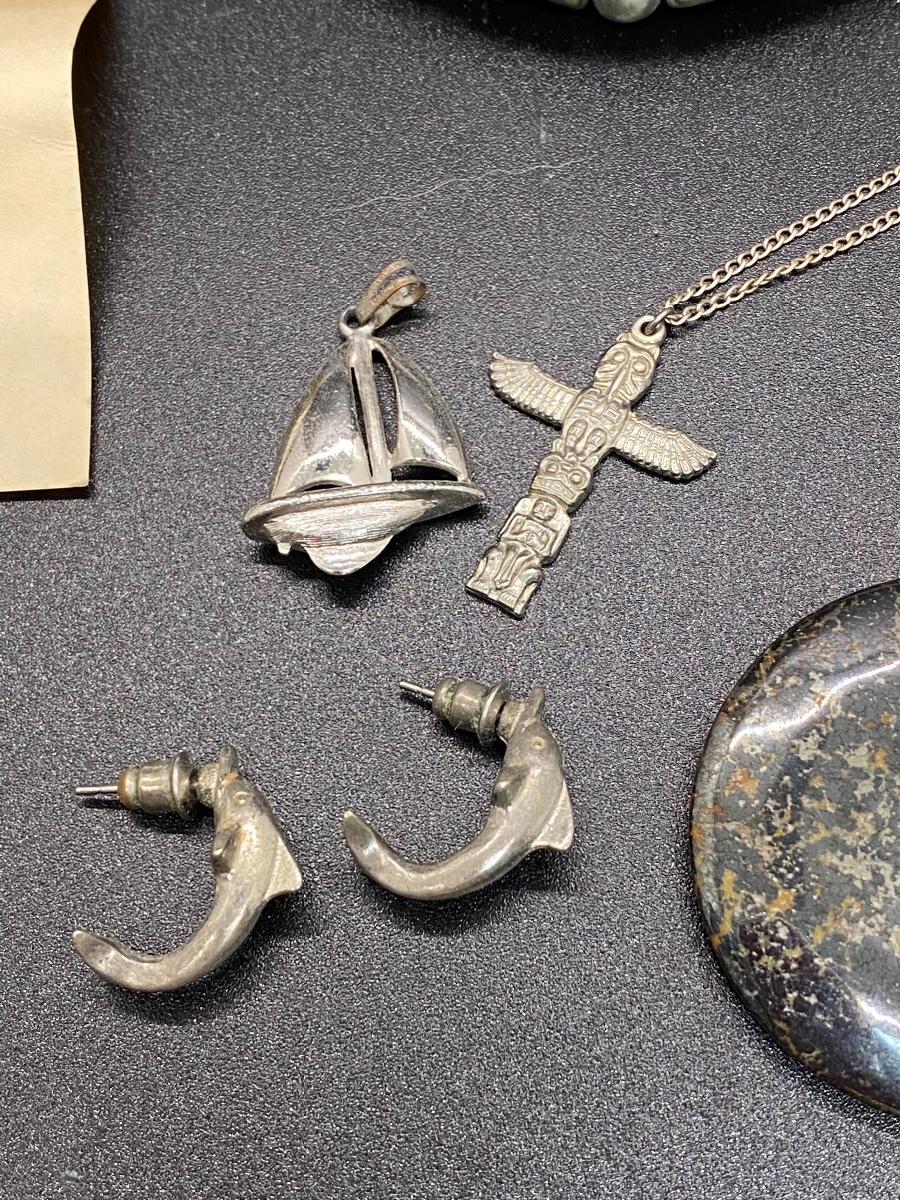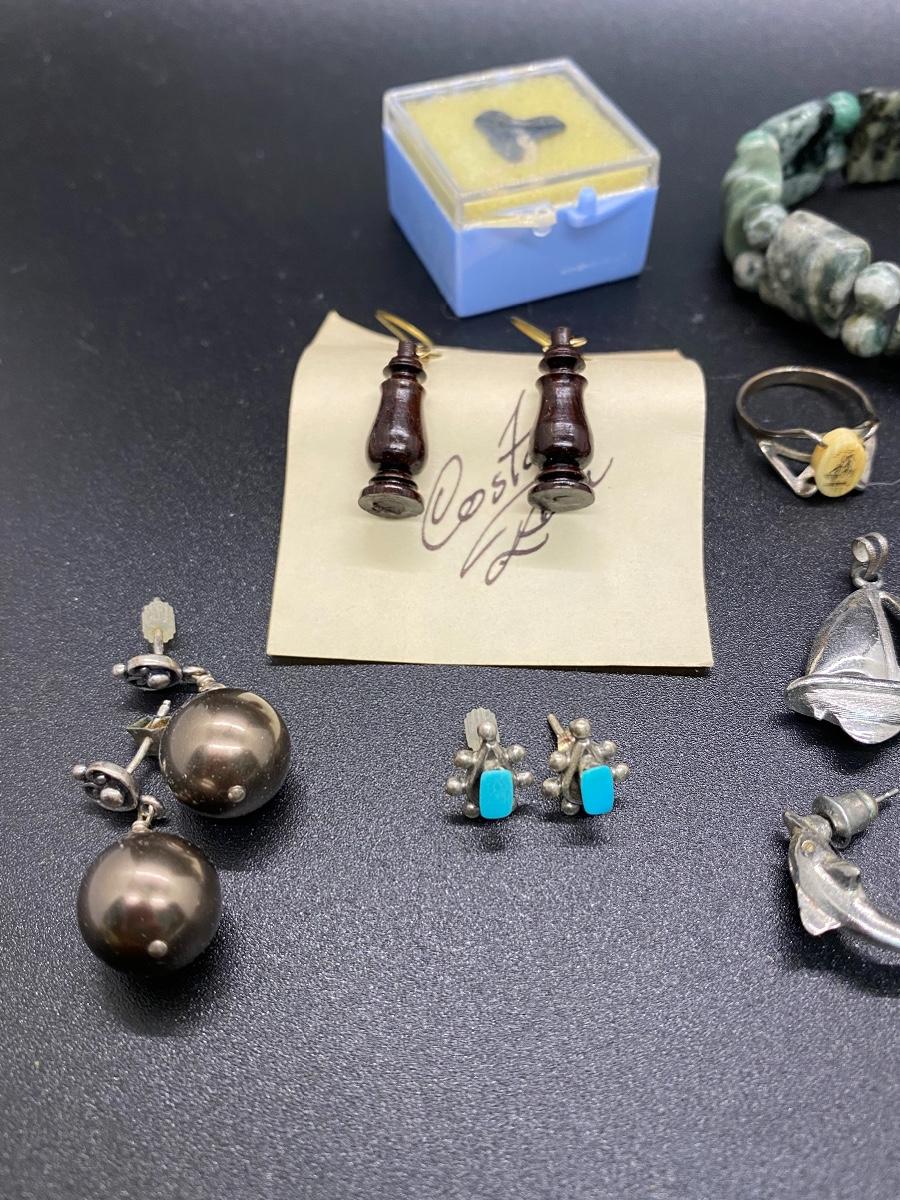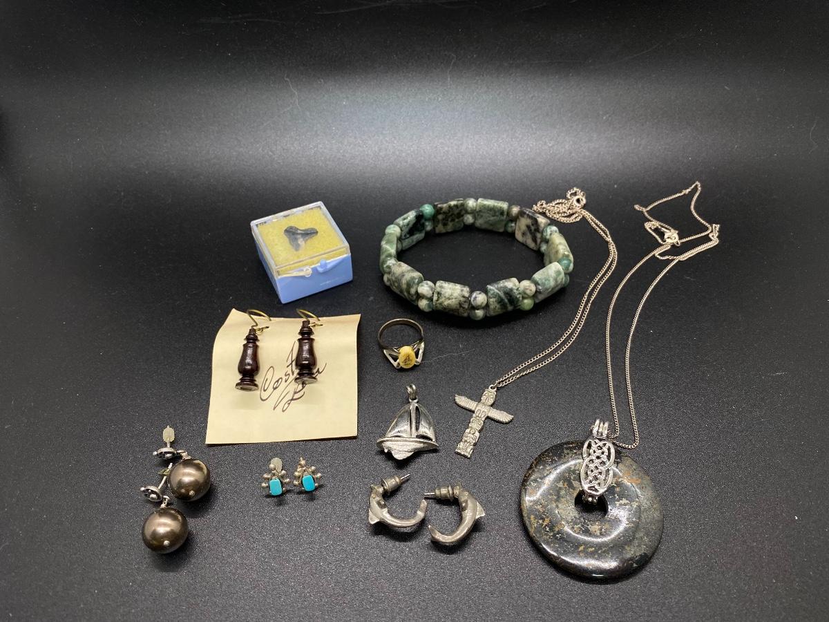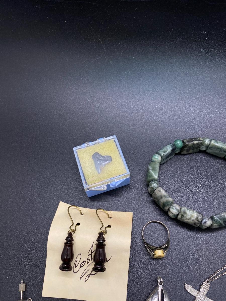 Silvertone & Stone Natural Jewelry Lot, includes a shark tooth.