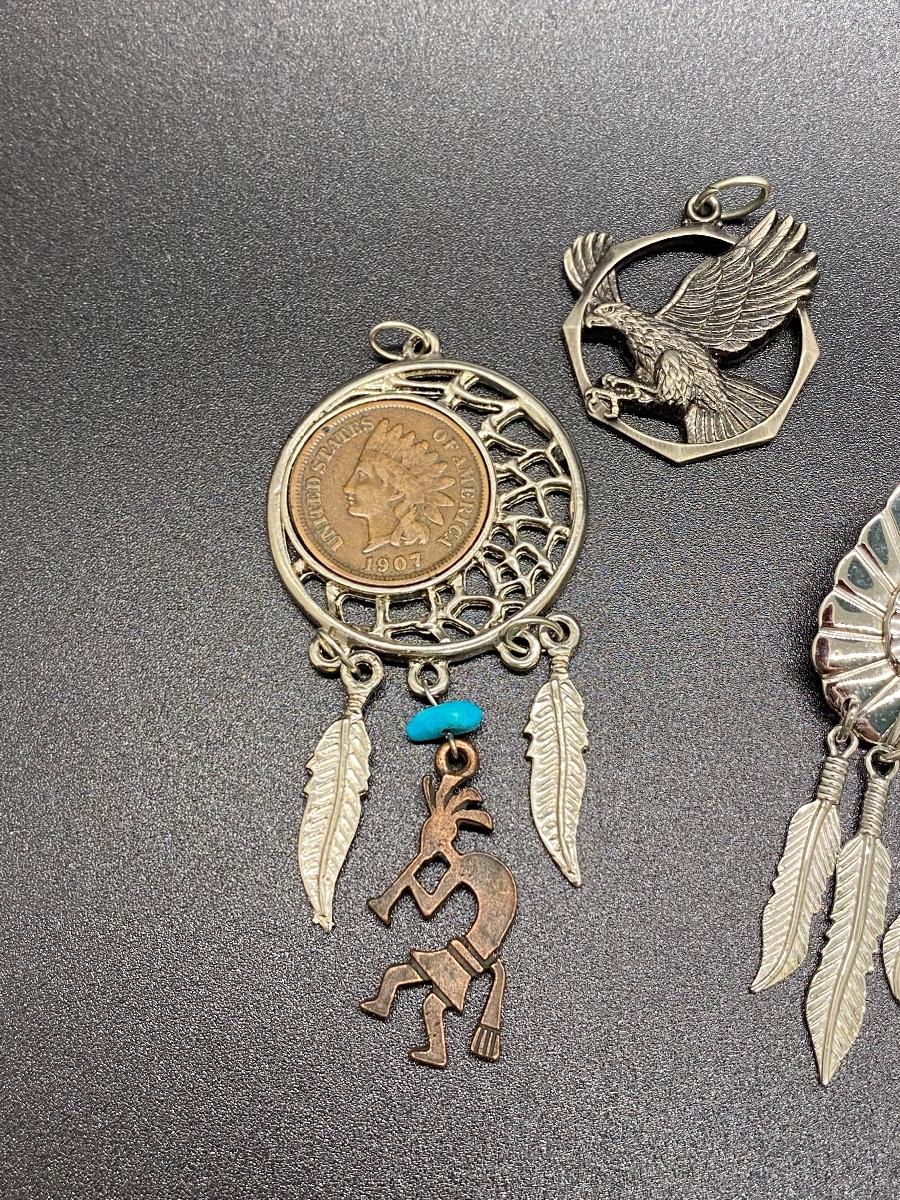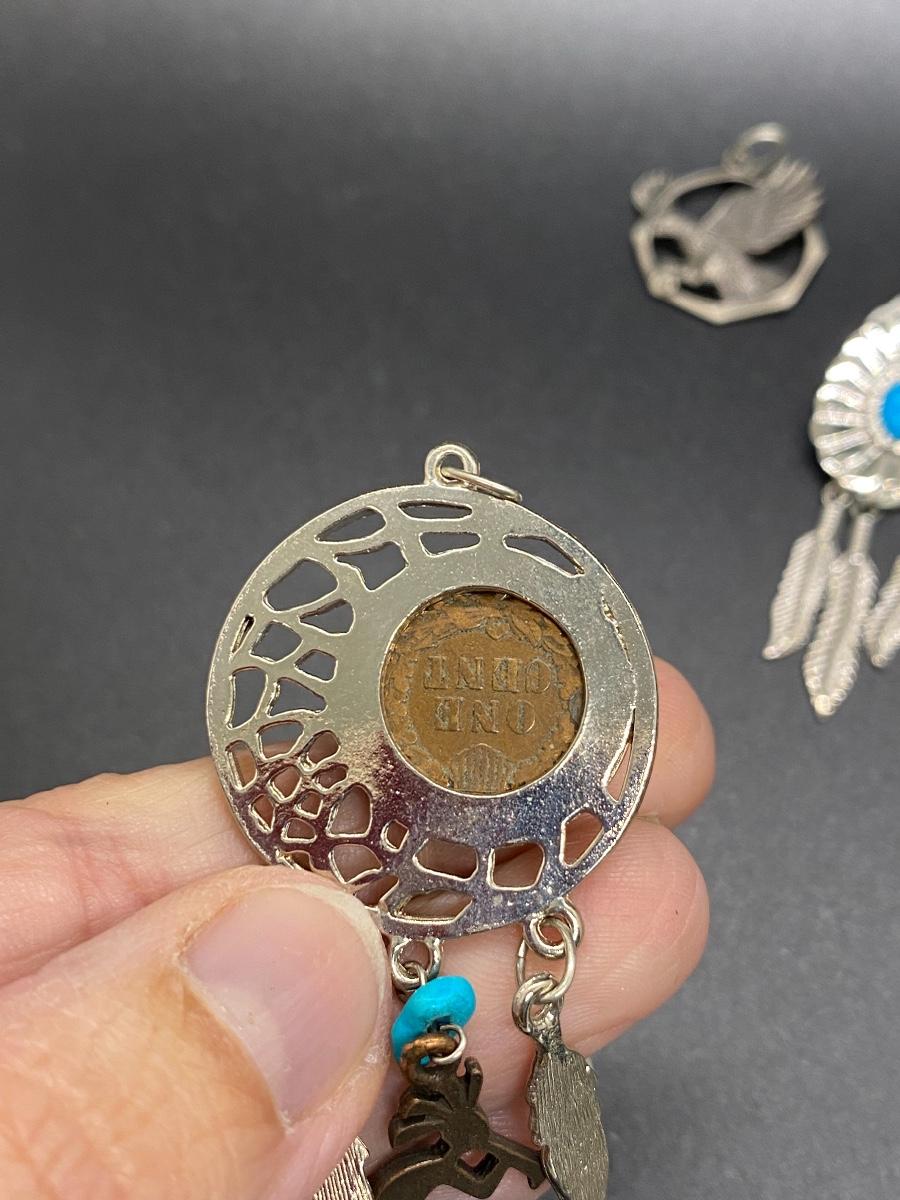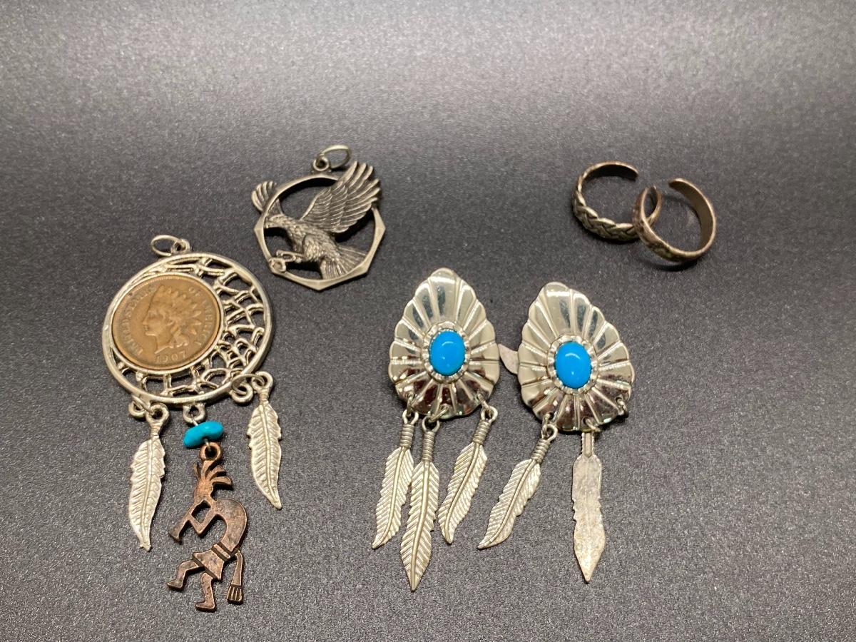 Southwestern Style Jewelry Lot - Pendants, Earrings, and 2 Toe Rings. The Indian Head coin looks real in the pendant.