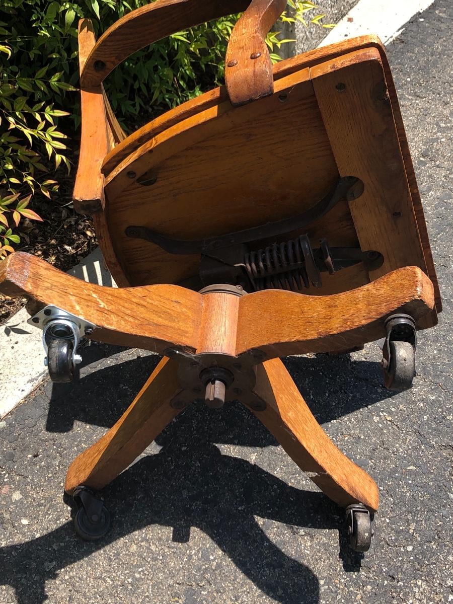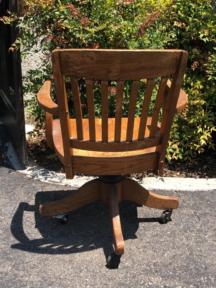 Vintage Mission Oak Wood Banker's Desk Arm Chair on Wheels