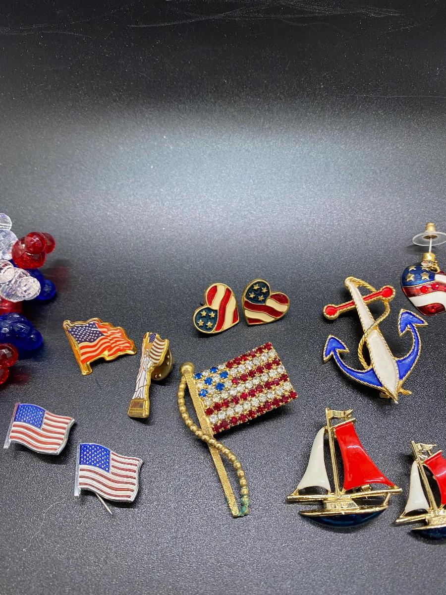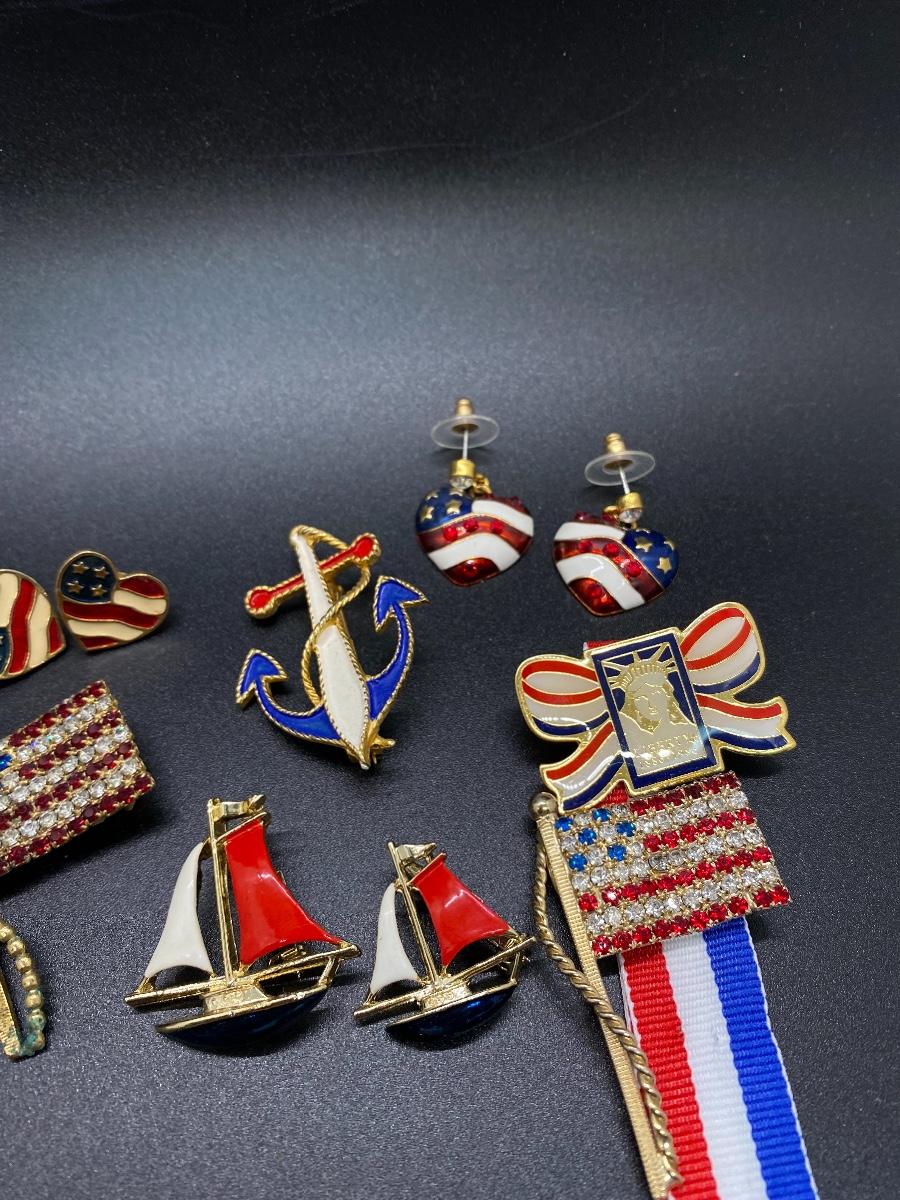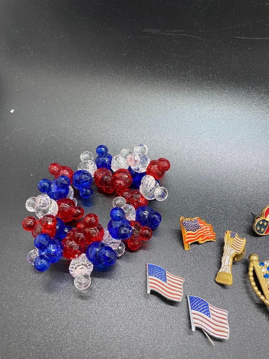Patriotic Red White Blue Pin Brooch Earring Bracelet Lot of Jewelry