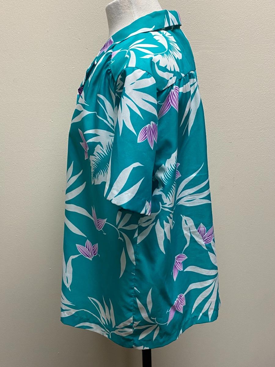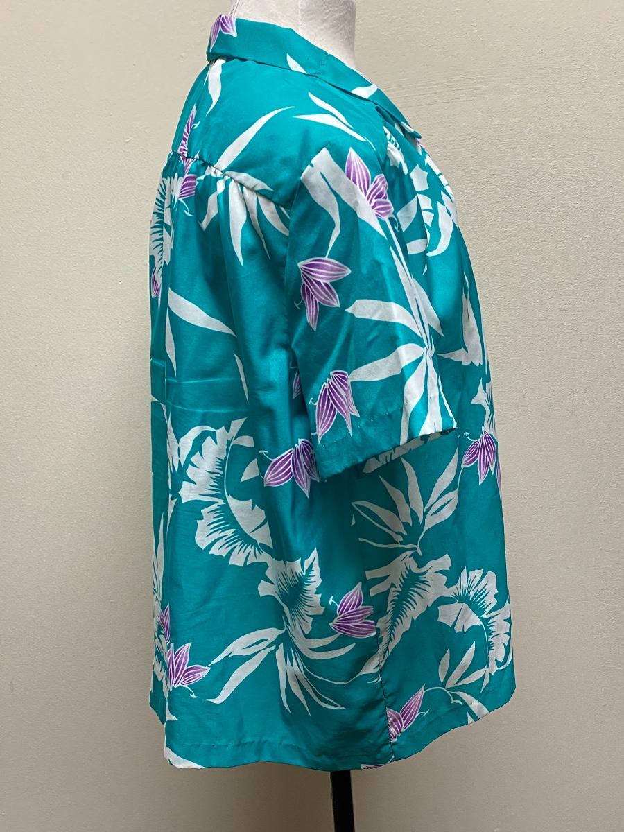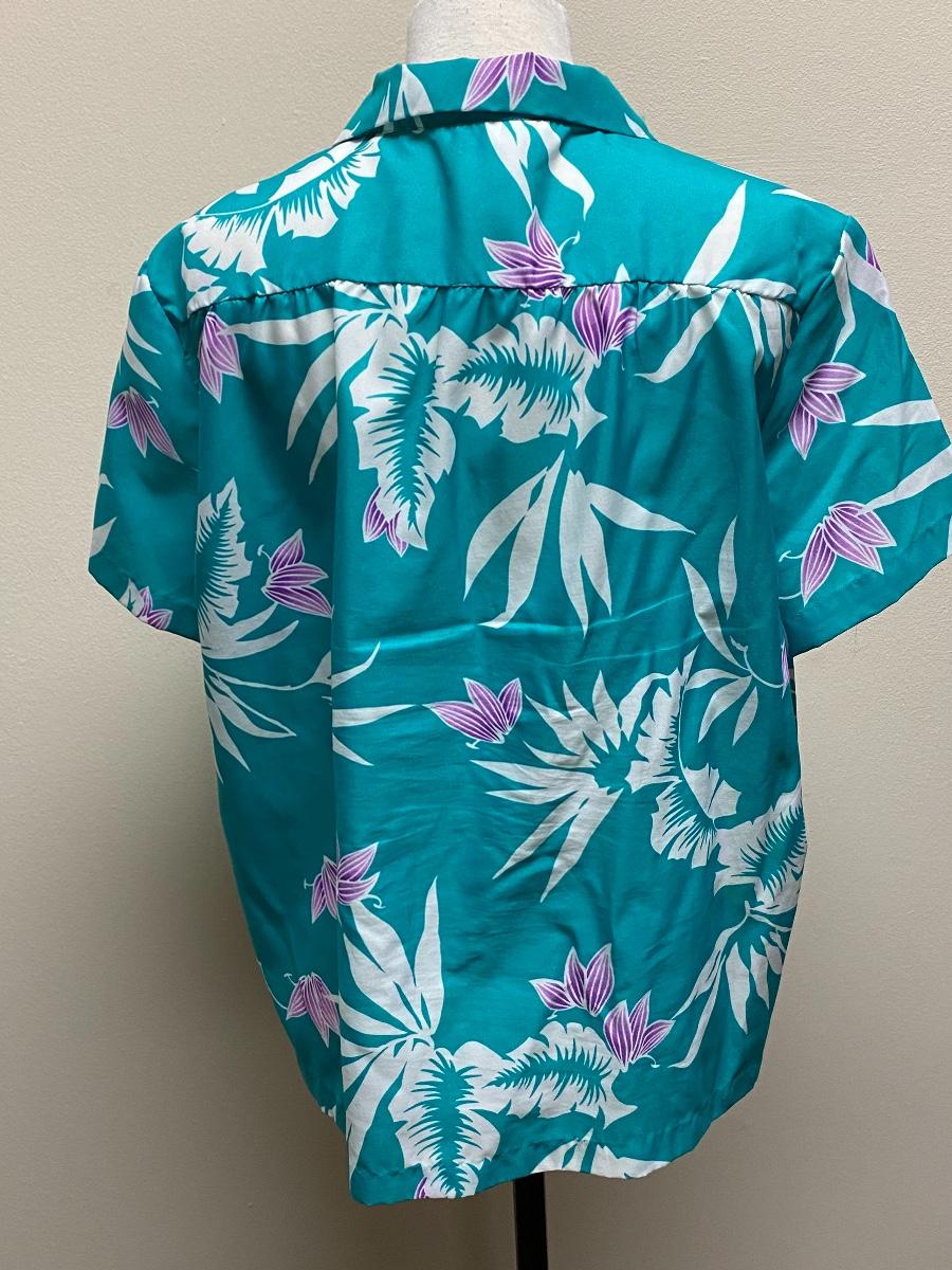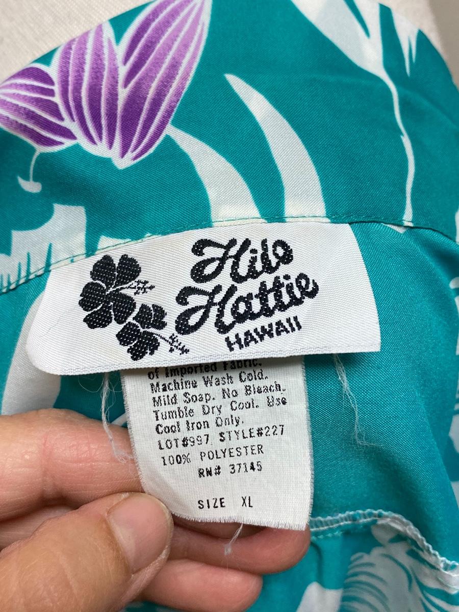 Hilo Hattie Teal Hawaiian Shirt. Size XL. Polyester. Has a couple snags, not bad though.