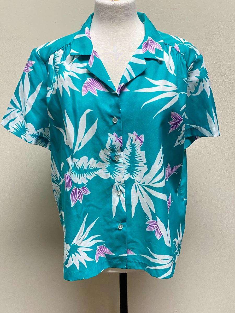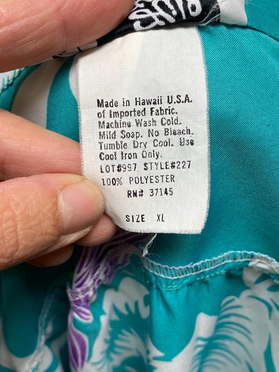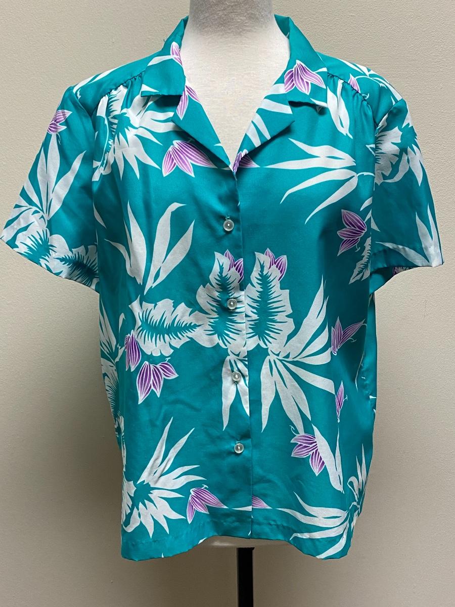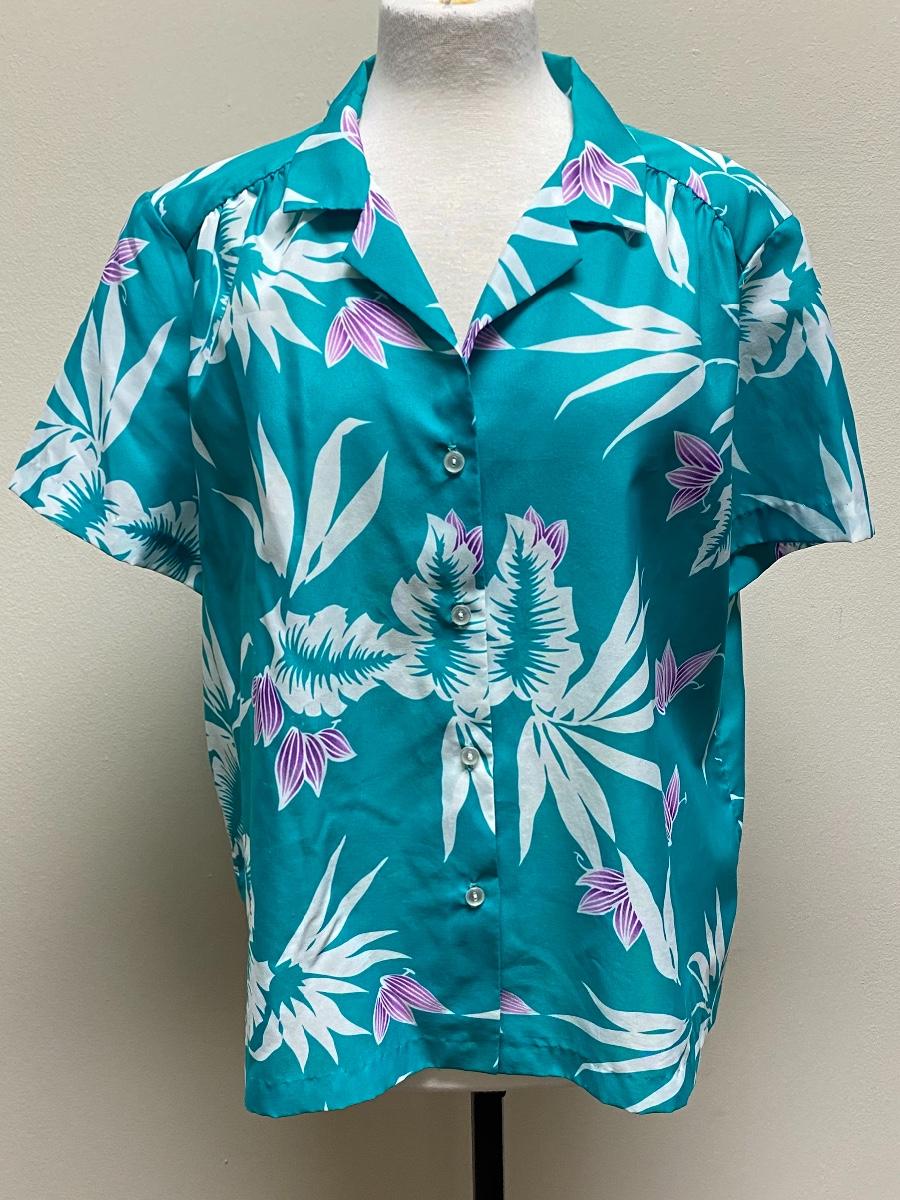 Hilo Hattie Teal Hawaiian Shirt. Size XL. Polyester. Has a couple snags, not bad though.