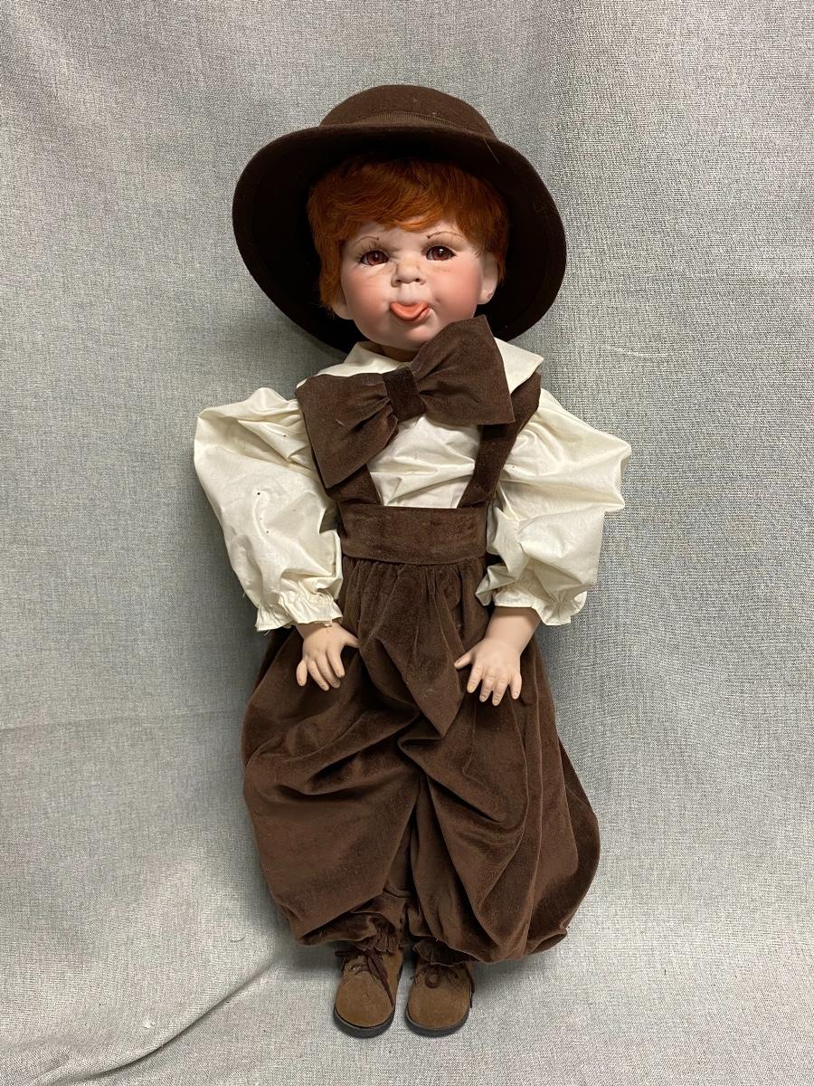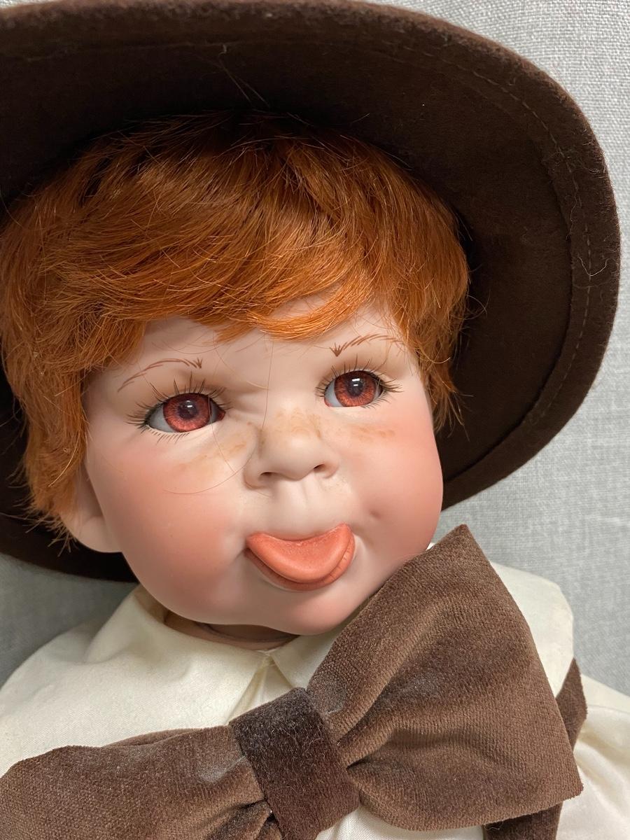 Red Head Little Boy Porcelain Doll Making a Face