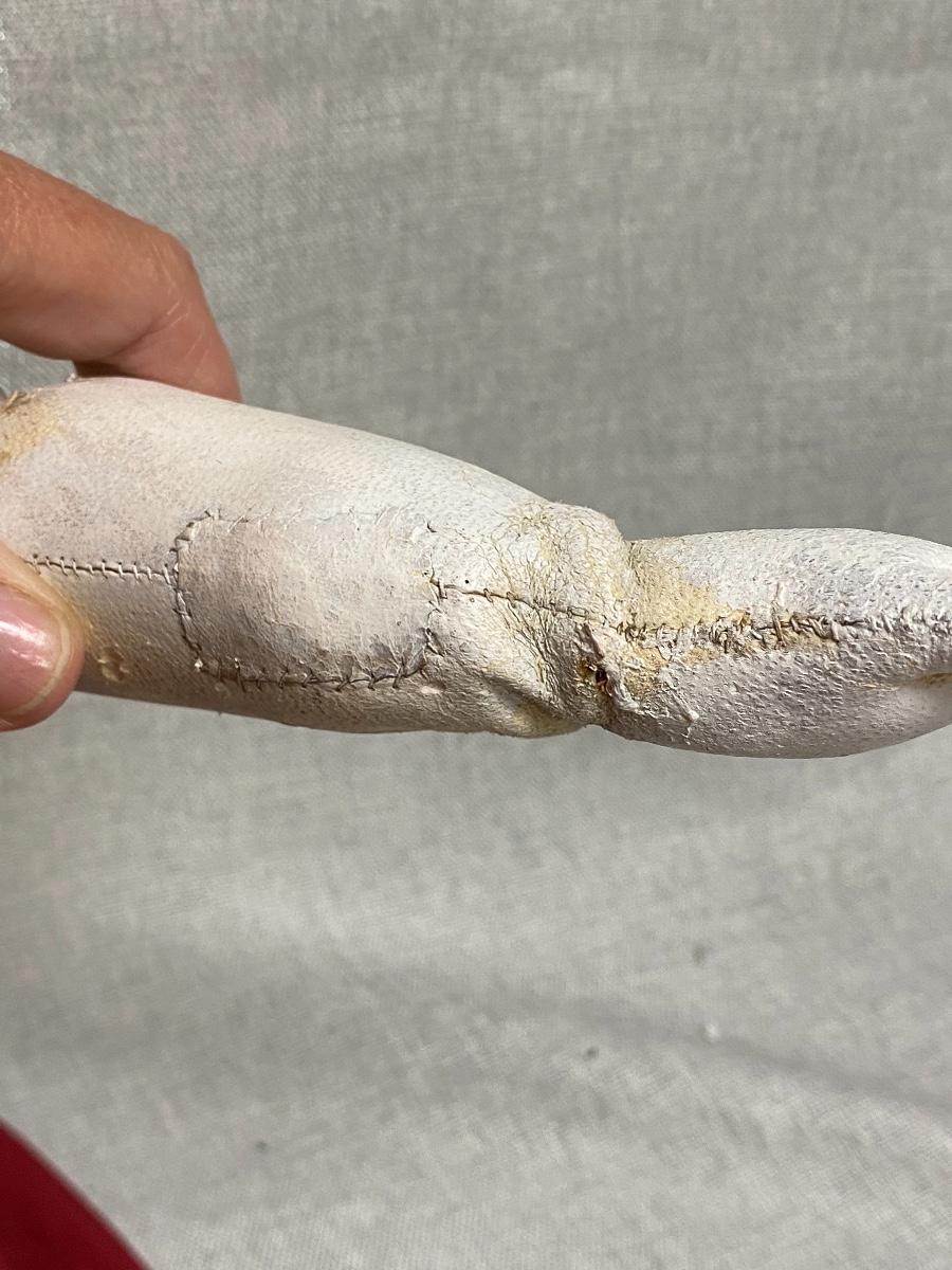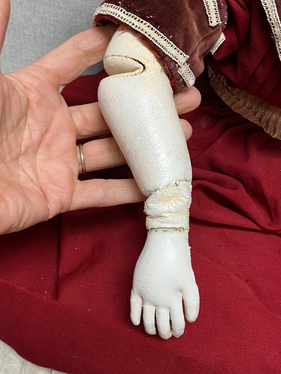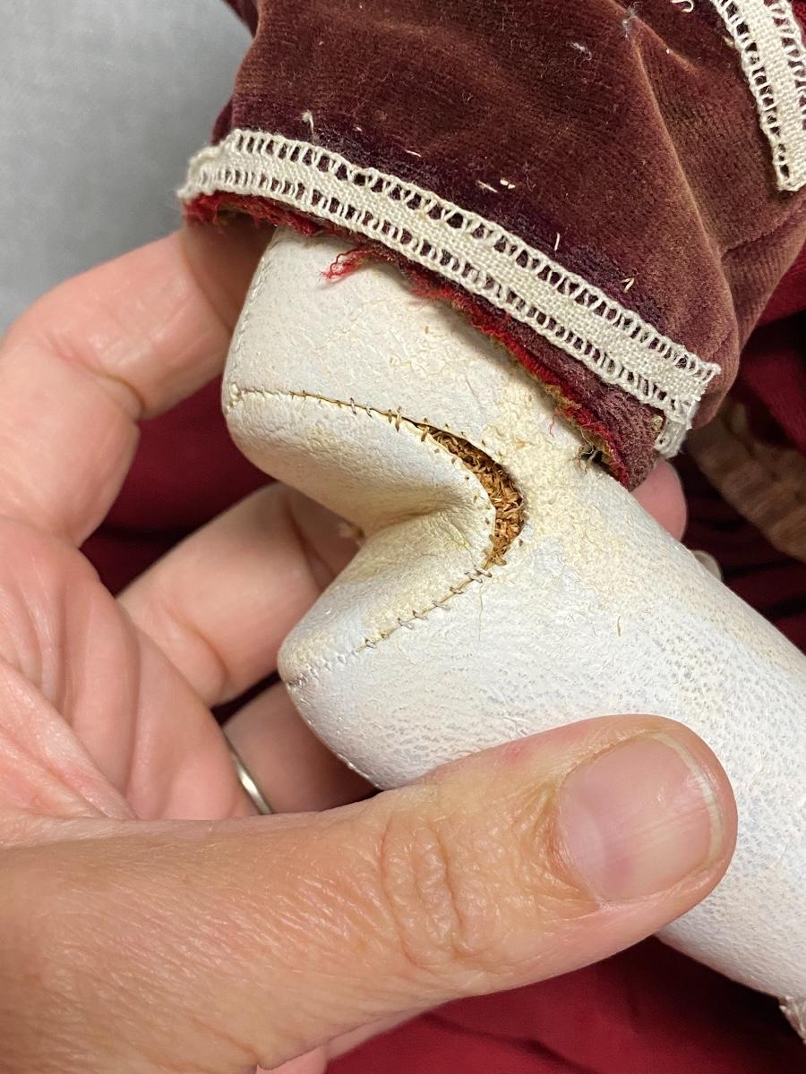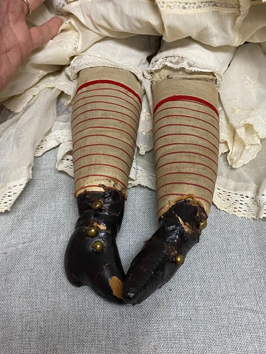 Large Vintage 27" China Head Doll Leather Limbs Flat Top High Brow