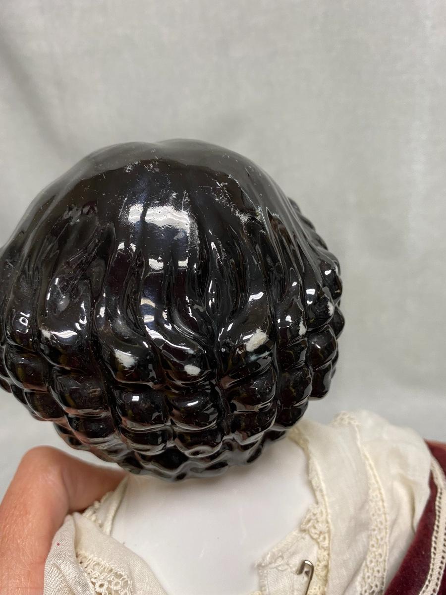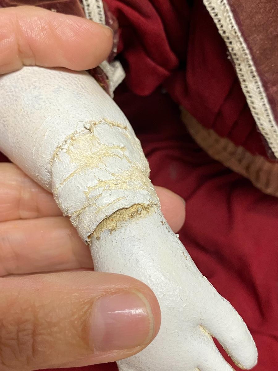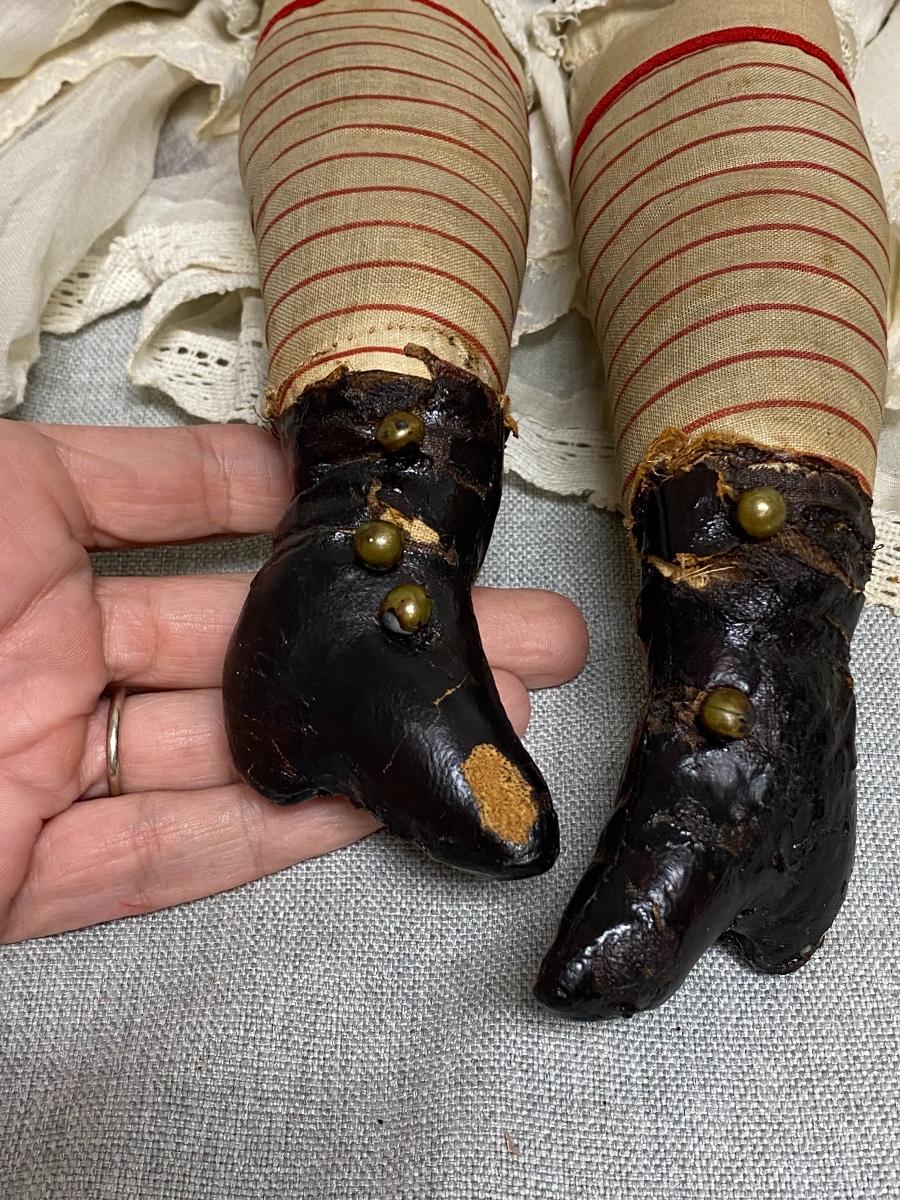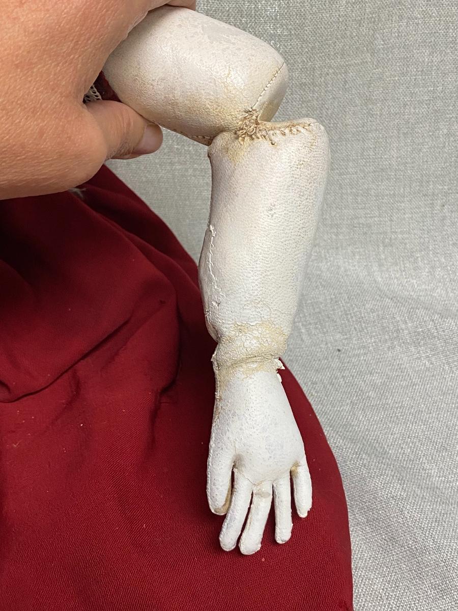 Large Vintage 27" China Head Doll Leather Limbs Flat Top High Brow