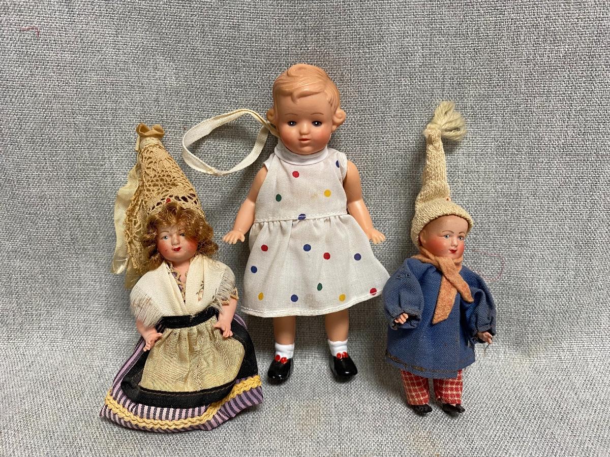 3 Vintage Celluloid Dollhouse Doll Miniatures