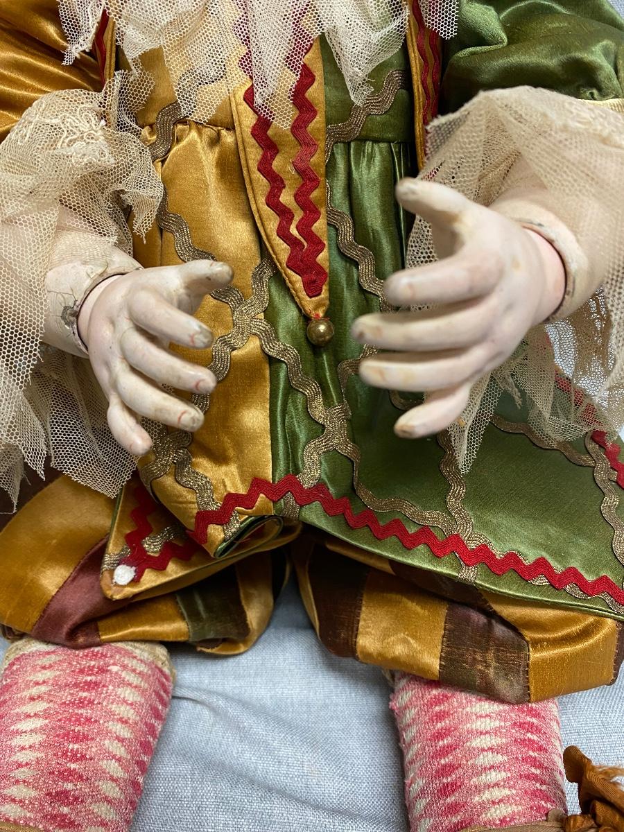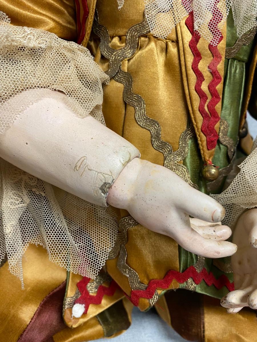 Antique K⭐R Simon & Halbig court jester doll. Bisque head with composite jointed body. Head is marked K⭐R Simon & Halbig 116/A 62. About 26" size. Some light wear to the composite, not to bad. Sleep eyes.