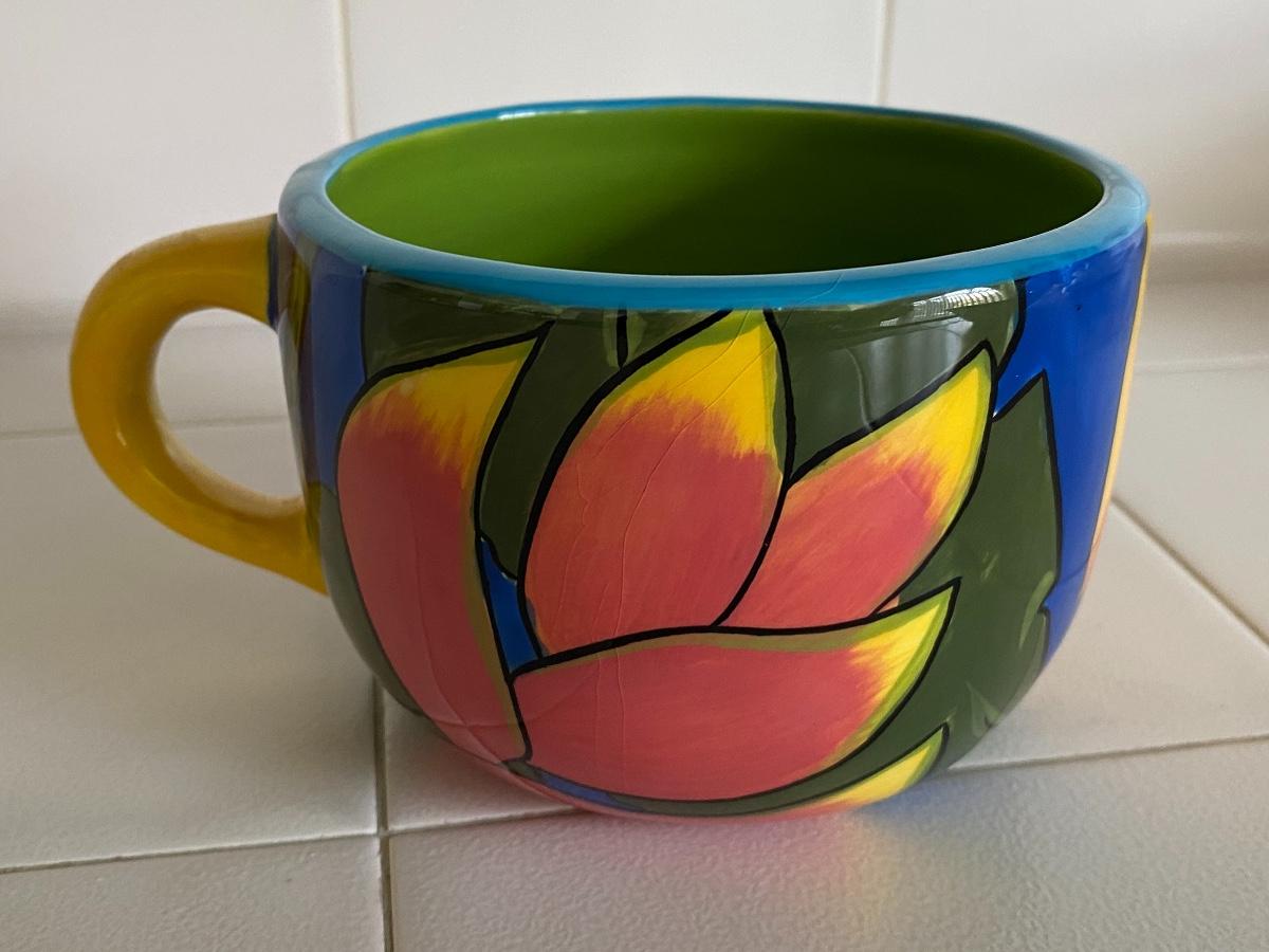 Large Starbucks exclusive PeFi Costa Rica coffee cup. Colorful tropical floral design. Good condition.