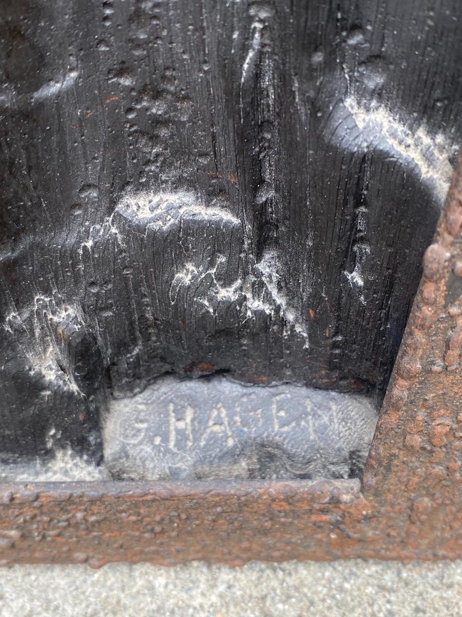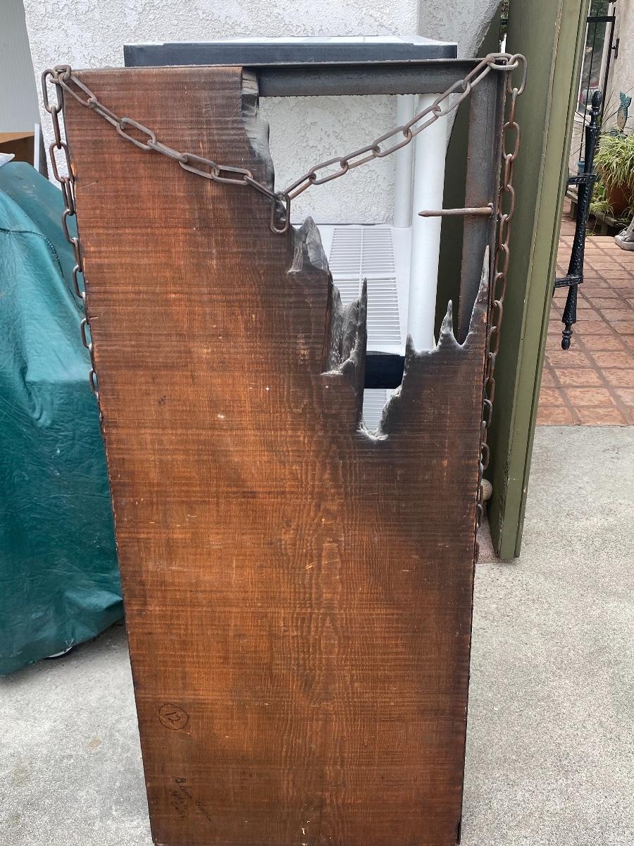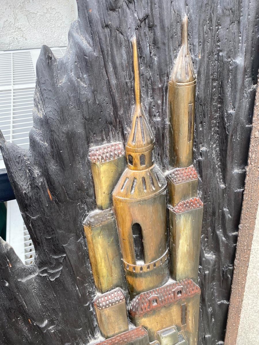 Vintage Brutalist MCM Carved Wood Medieval Castle Art Iron Frame