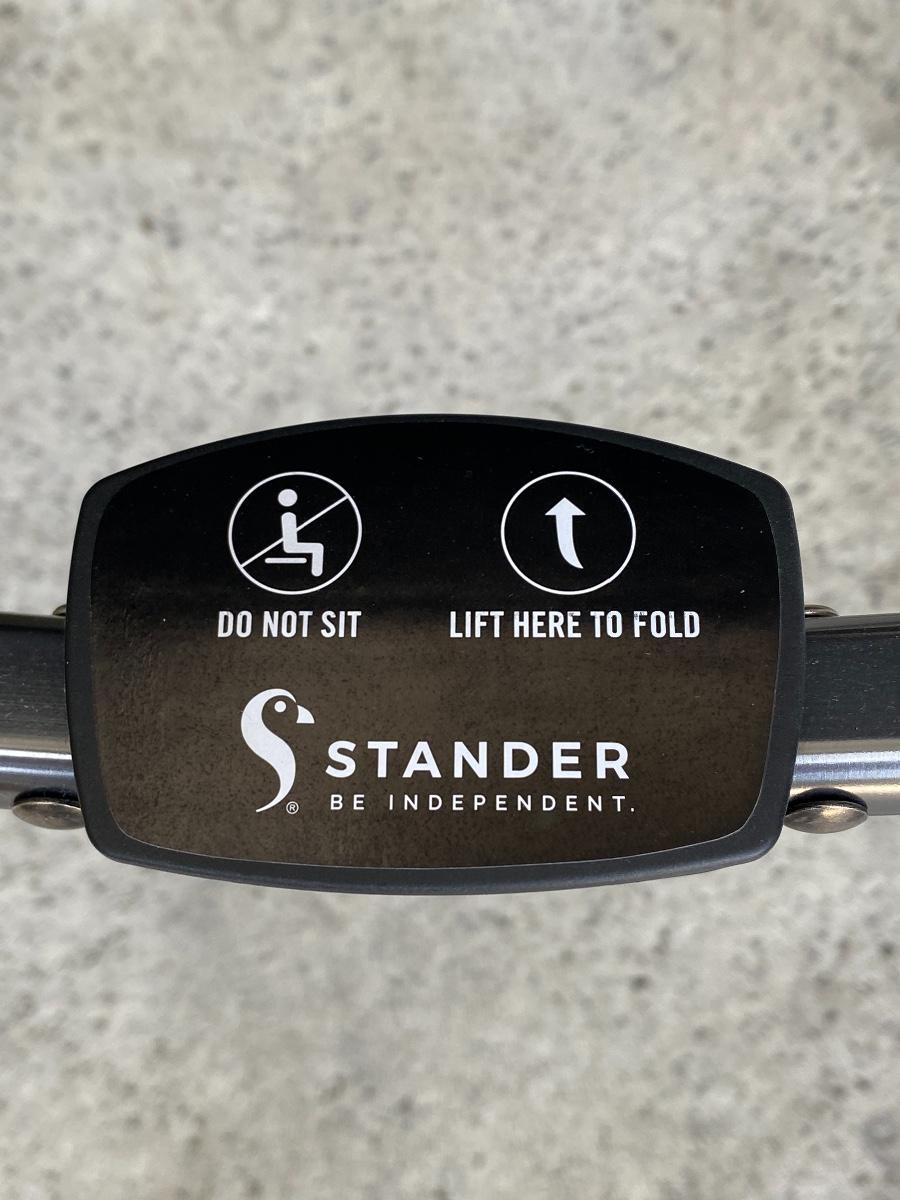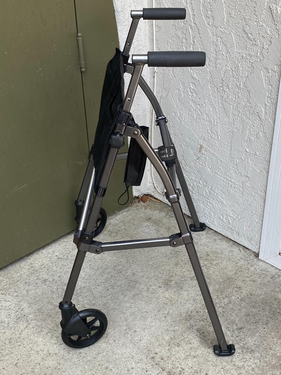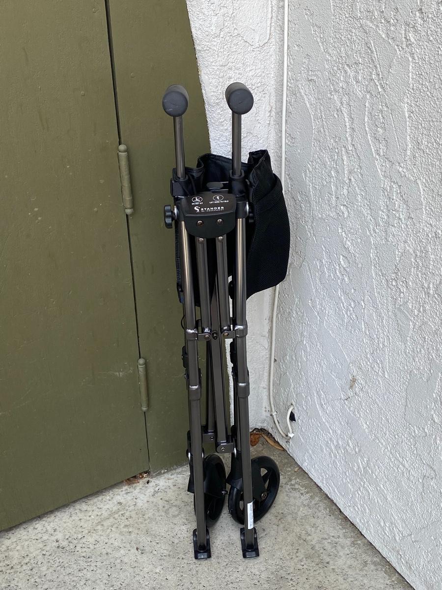 Stander Folding Mobility Wheeled Walker. Folds nice and compact when you pull center piece up. Folds to the size of a camp chair.