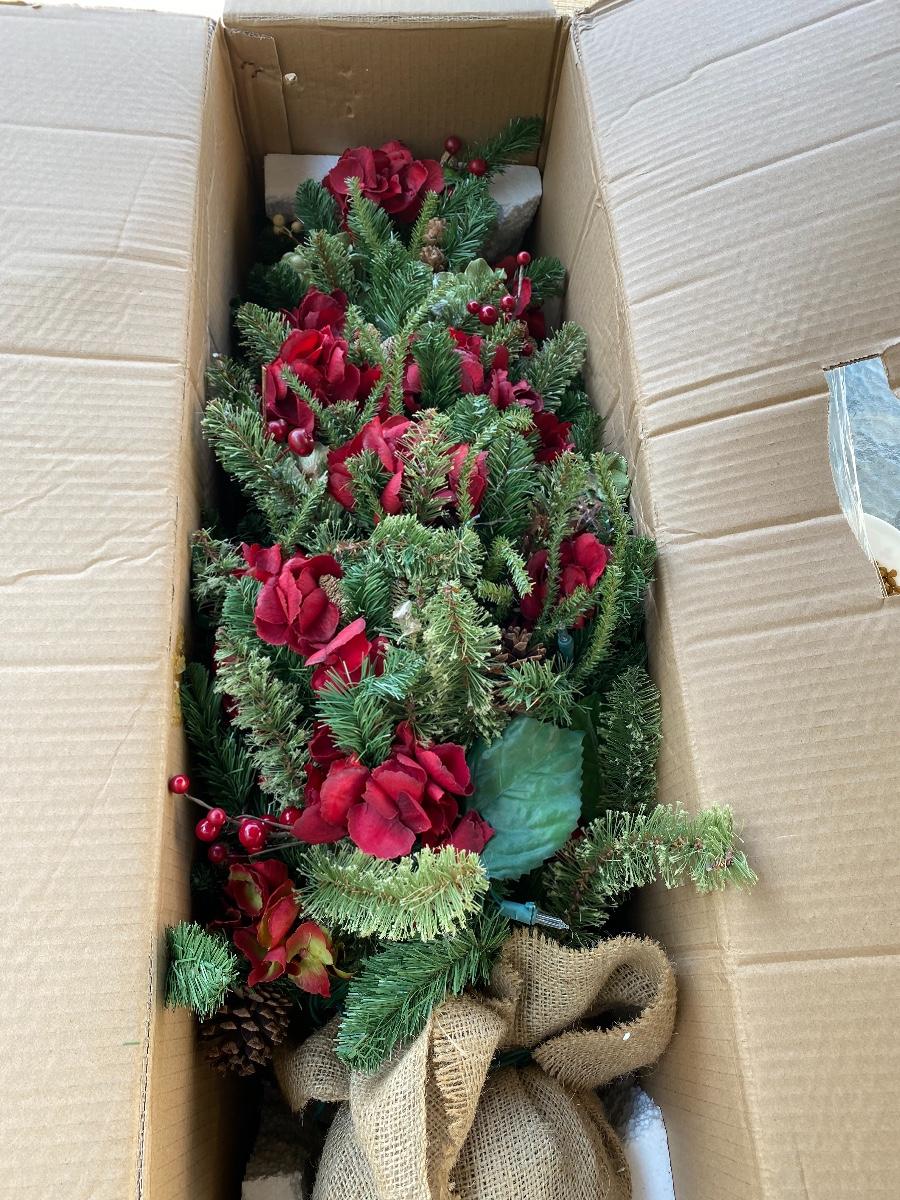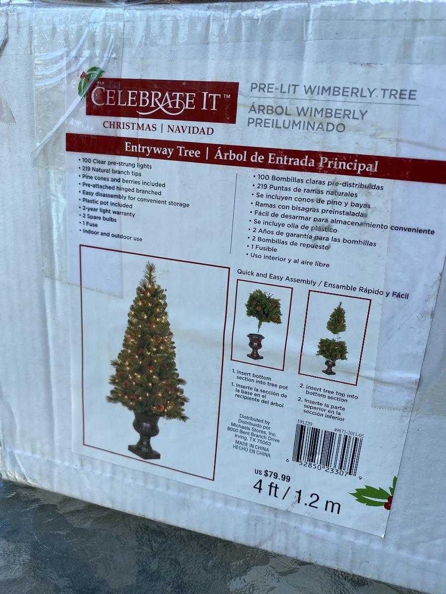 Celebrate It 4 feet Artificial Christmas Tree, there is no significant damage to the tree and comes with the original box. The lights have not been tested.