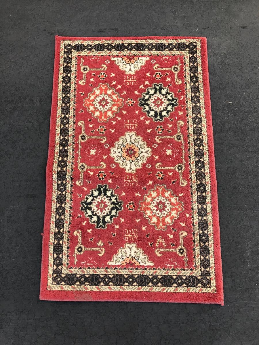 Red and Black Geometric Rug. About 30x50