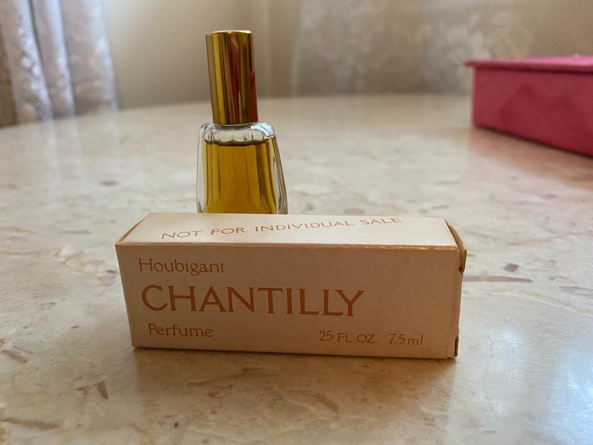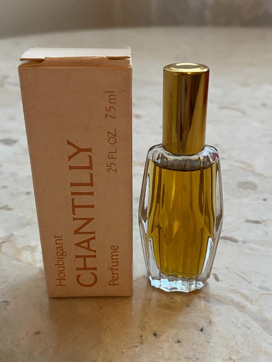 Vintage Chantilly .25fl oz Perfume with Box. Bottle is full. Light wear to box from age.