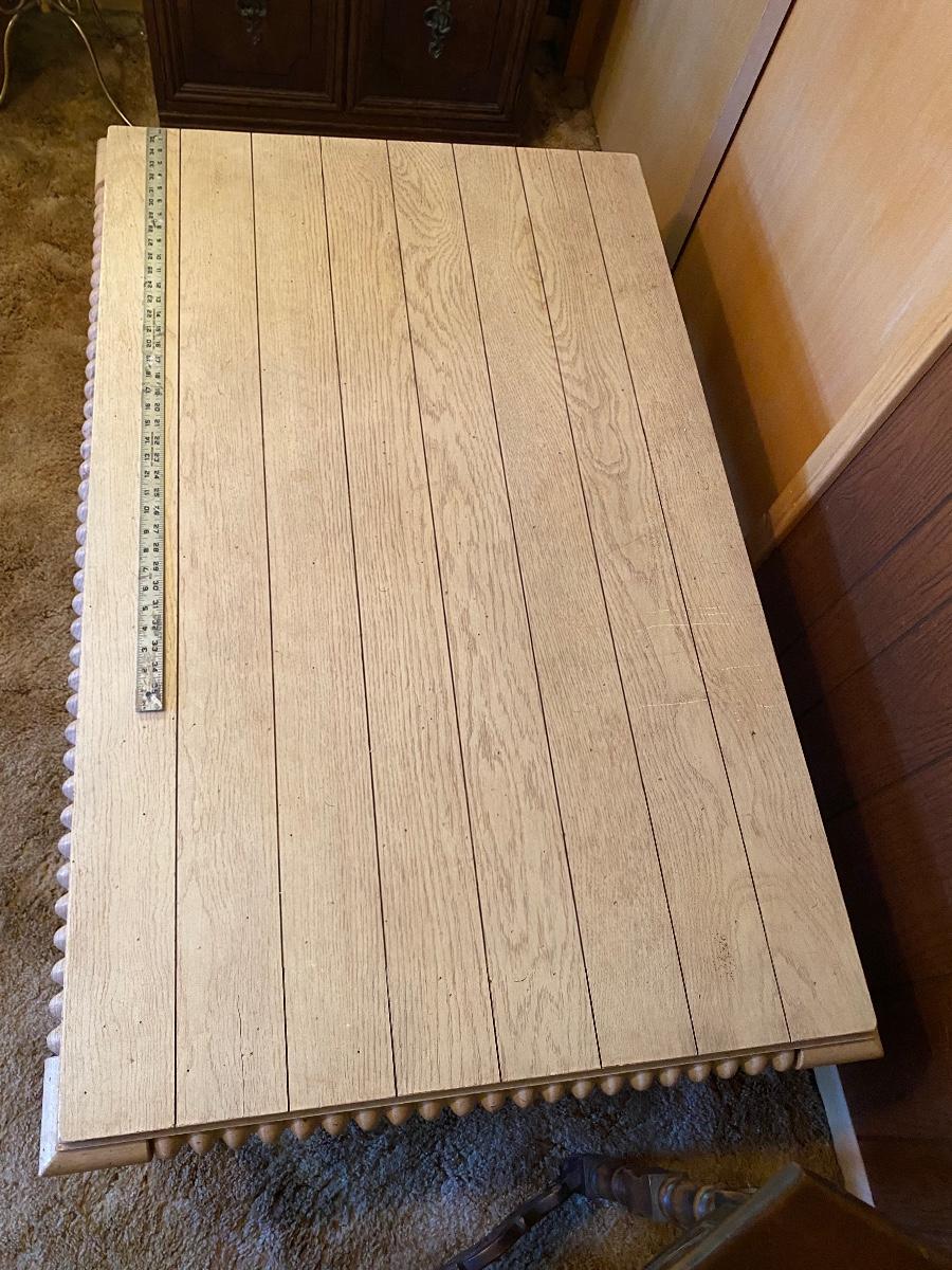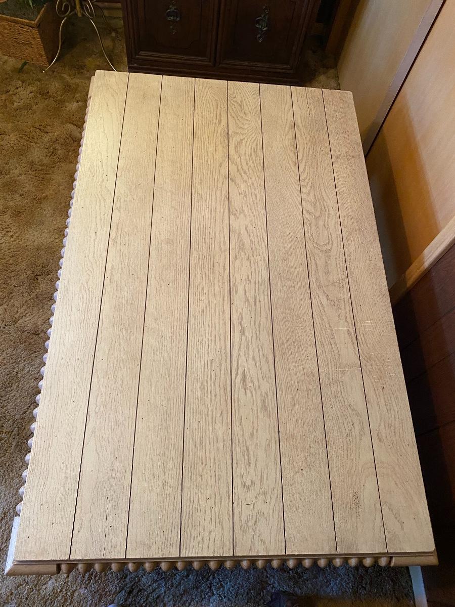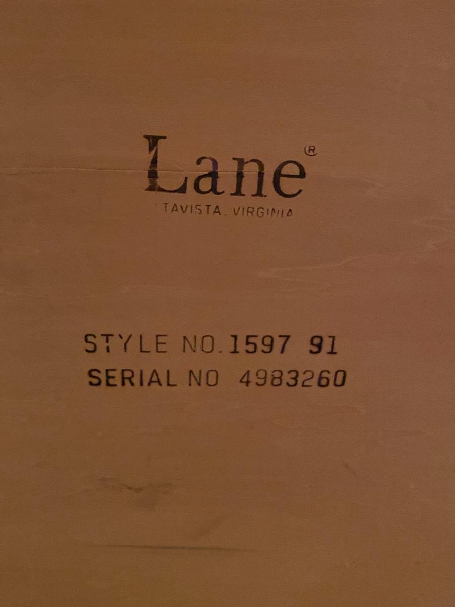 Large light wood coffee table by LANE. Stamped on the underside. About 5' length. Sturdy, some scratches on the surface.