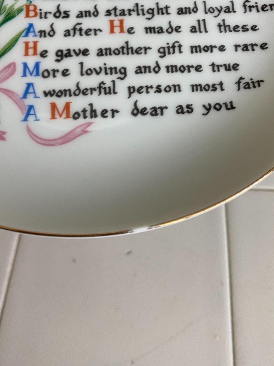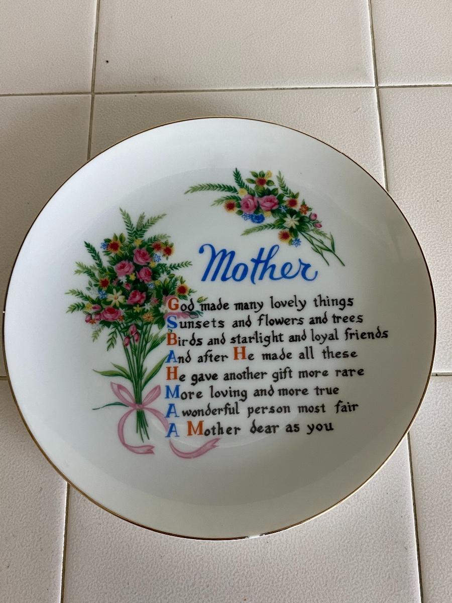 Vintage Mother Poem Quote Collector Gift Plate. Good condition, there is a worn spot in the gold edge, not a chip.