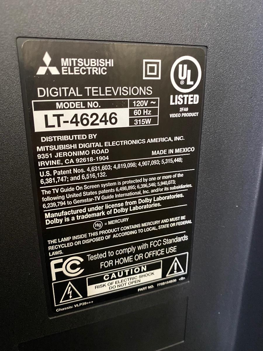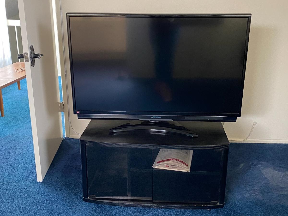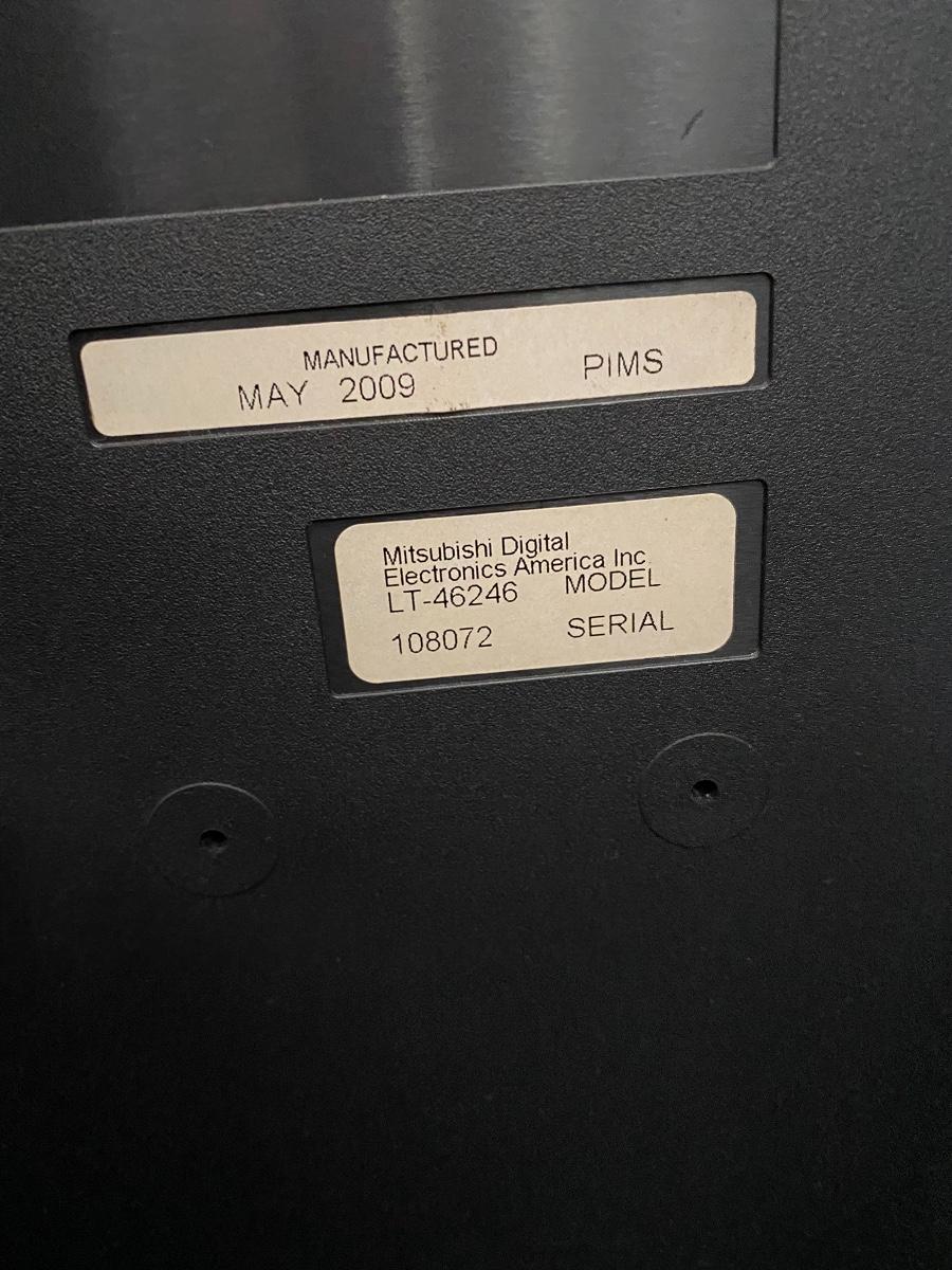 Mitsubishi TV with TV Stand. TV seems to work, did not have cable to hook up. Comes with remote. Heavy. Model #LT-46246 Made in 2009.