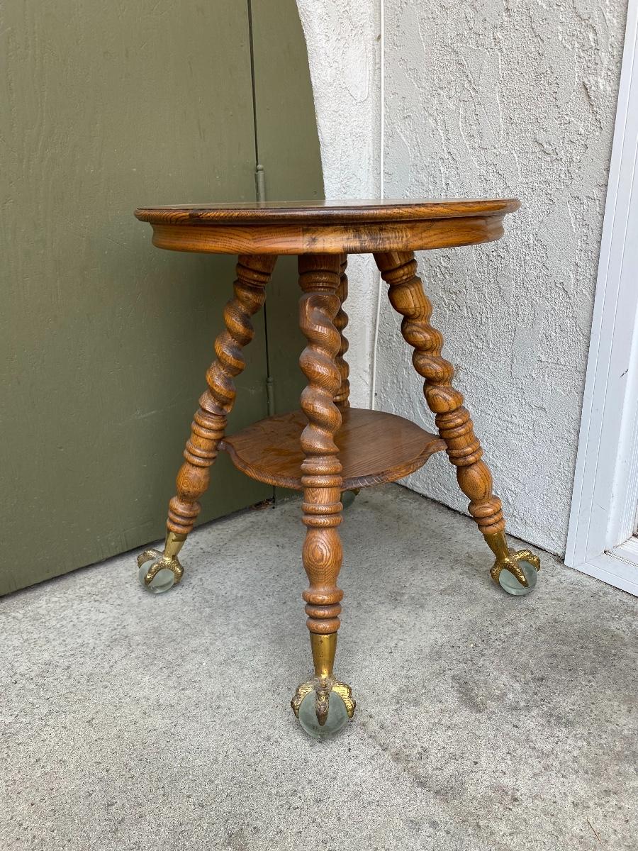 Turned Oak Eagle Talon Foot Side Parlor Table