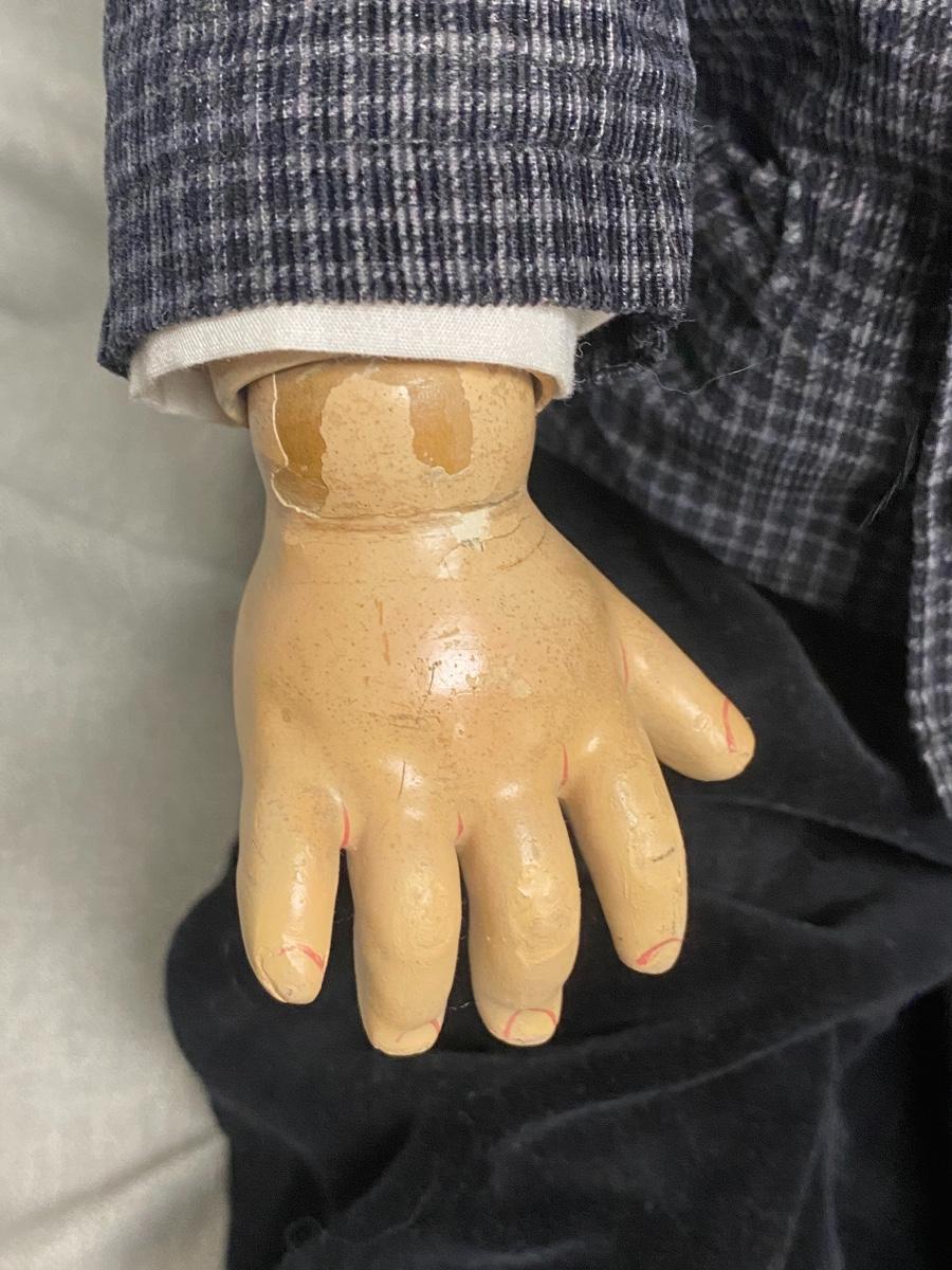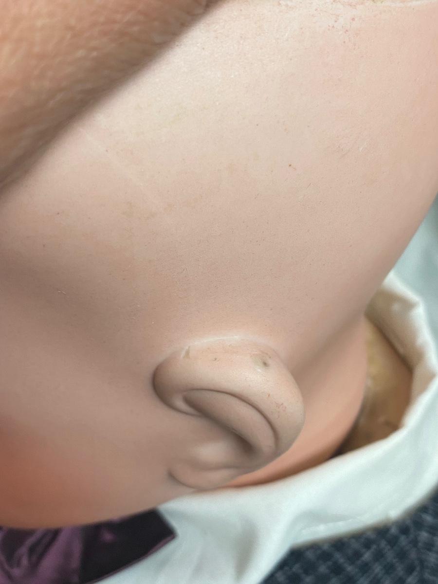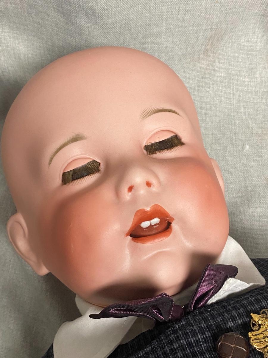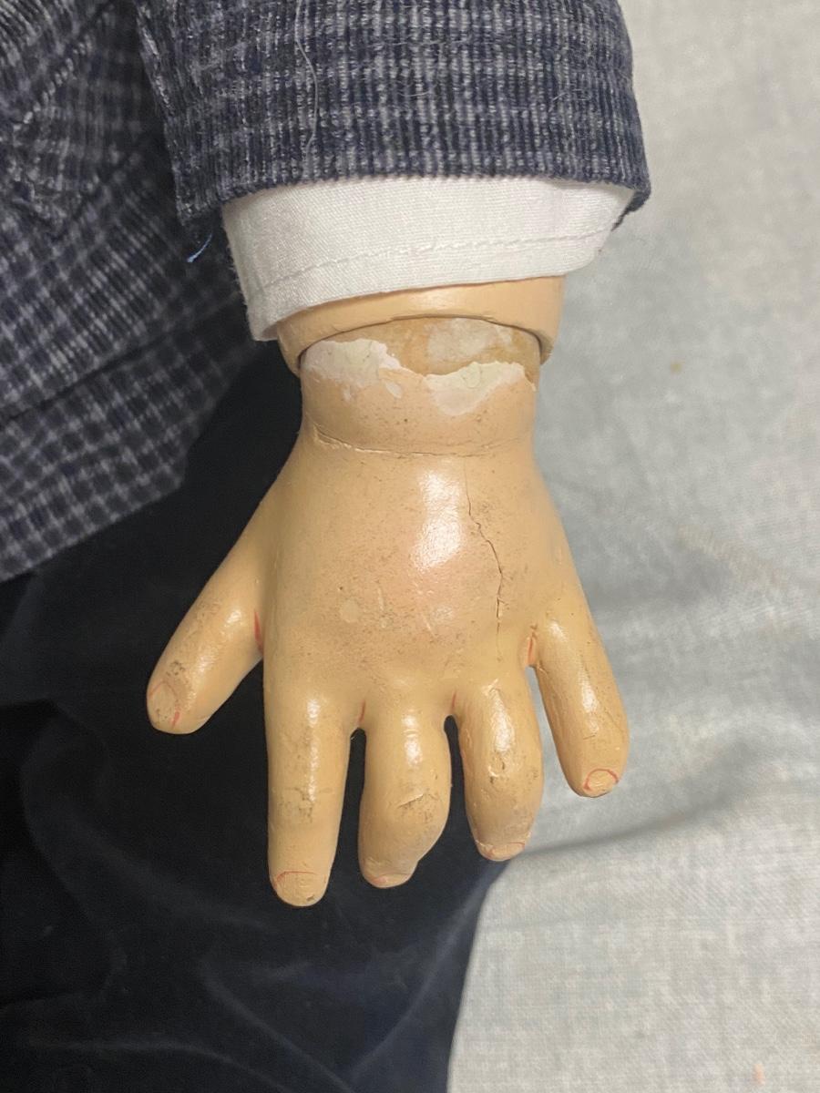 Vintage SFBJ 251 Paris boy bisque and composite doll. Sleep eyes have lashes but the lashes cover alot of the eyes when open. Dimple cheeks with an open mouth. There is damage/crack behind one ear and maybe on the other. Displays nicely. About 28" size. Some wear to composite, nothing too bad though.