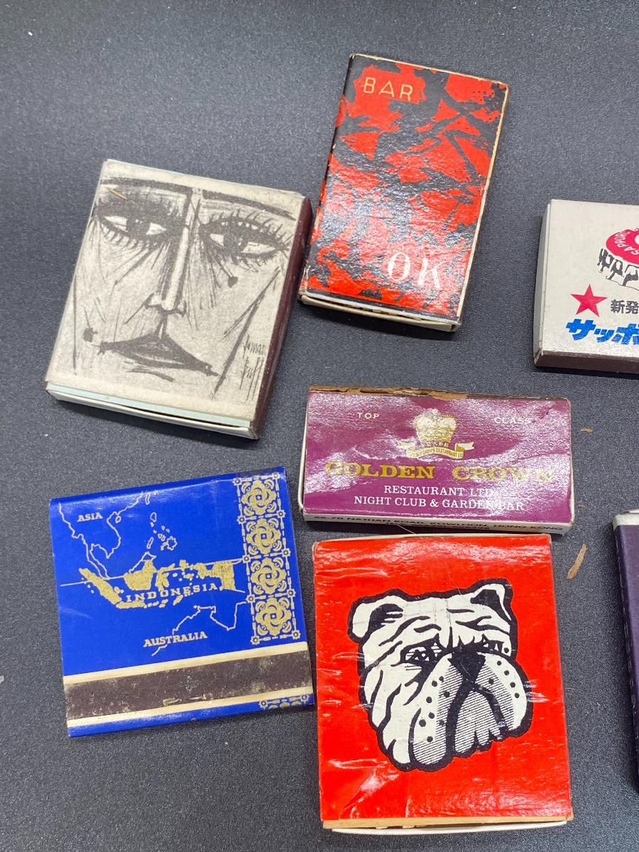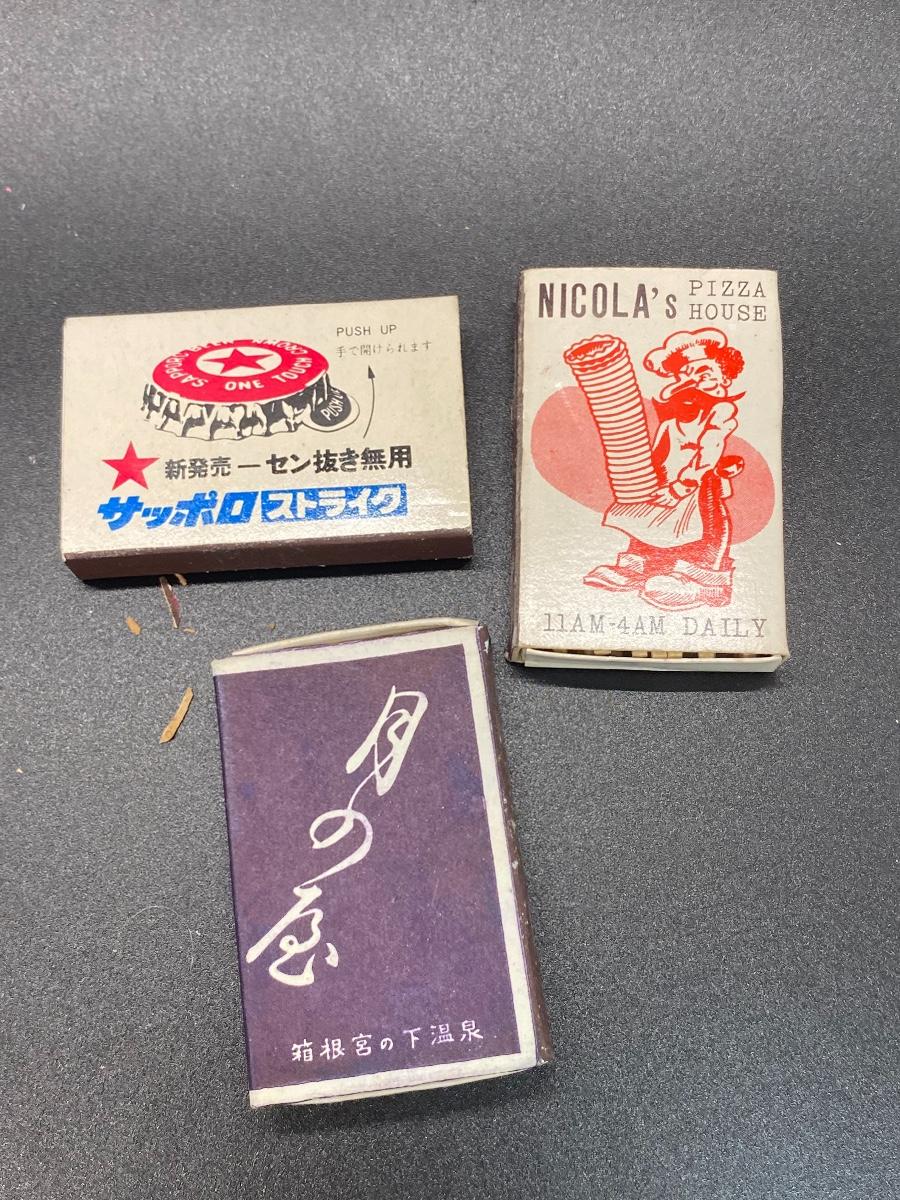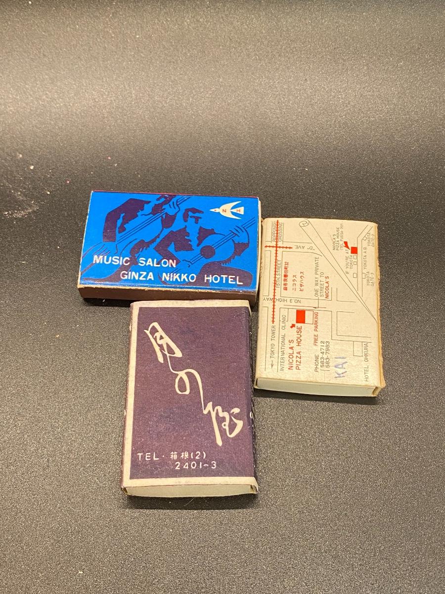 Lot of vintage Japanese match books/boxes. Travel souvenirs from Japan, some have light use but all have almost all of the matches in them. 11 books/boxes.