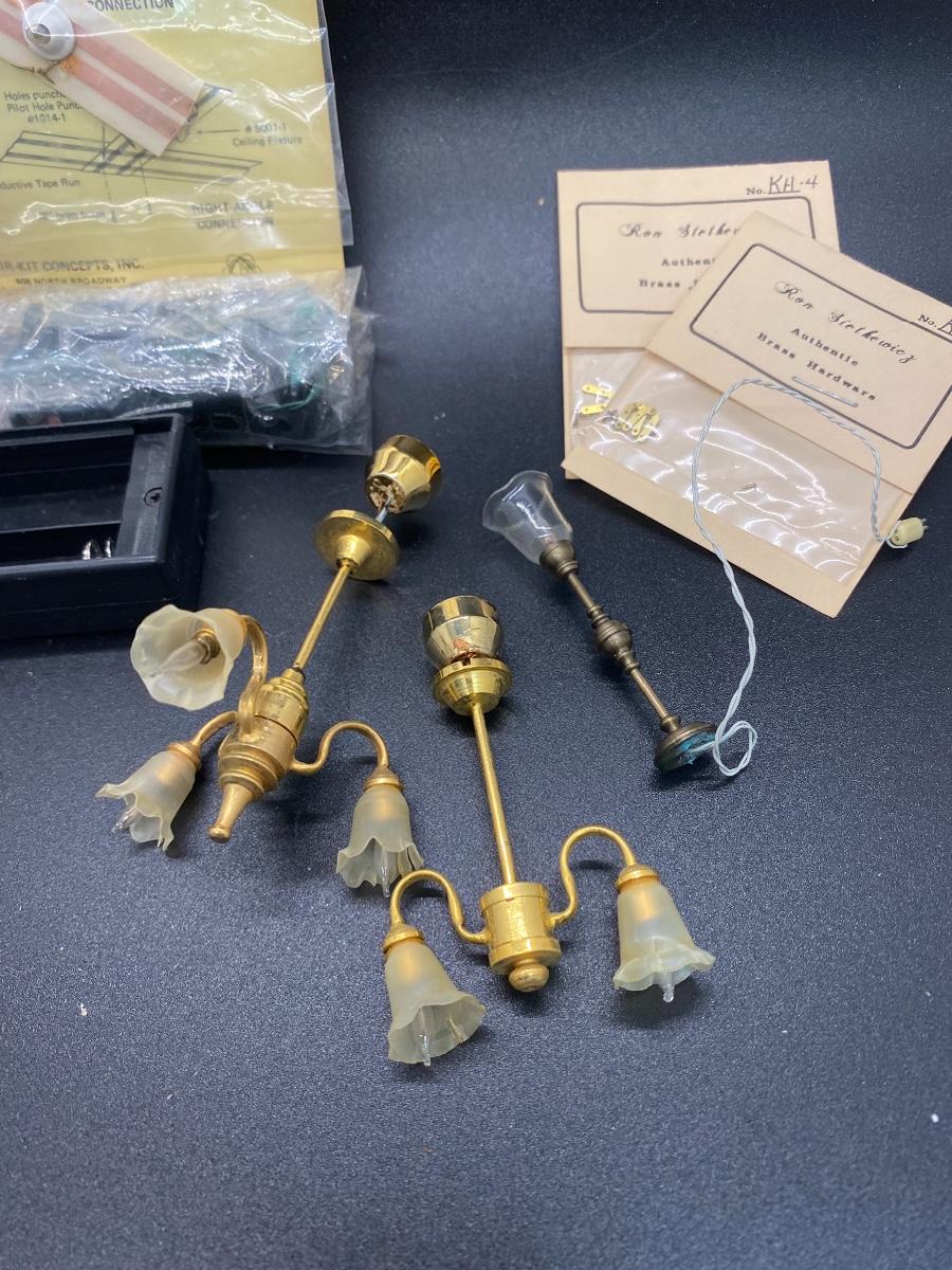 Dollhouse Miniatures Lighting Lamp Fixtures, The shades on hanging fixtures are very thin and do have some light damage, not sure on working conditions, need to be connected to electricity.