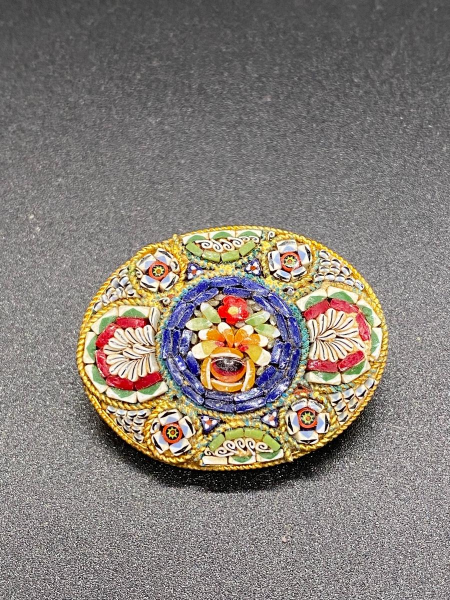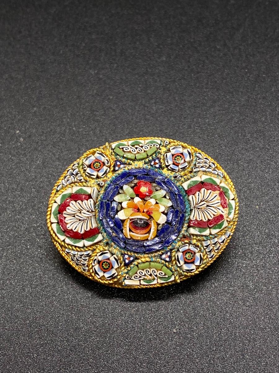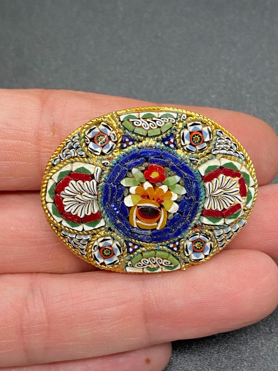 Vintage Micro Mosaic Floral Brooch Pin Italy