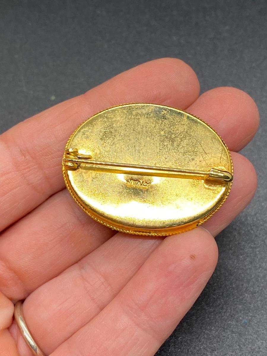 Vintage Micro Mosaic Floral Brooch Pin Italy. Gold tone metal setting. About 2" size. No missing pieces.