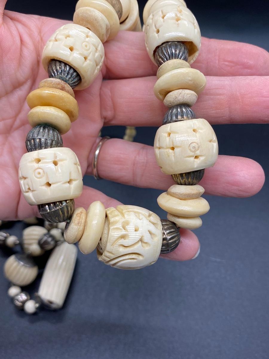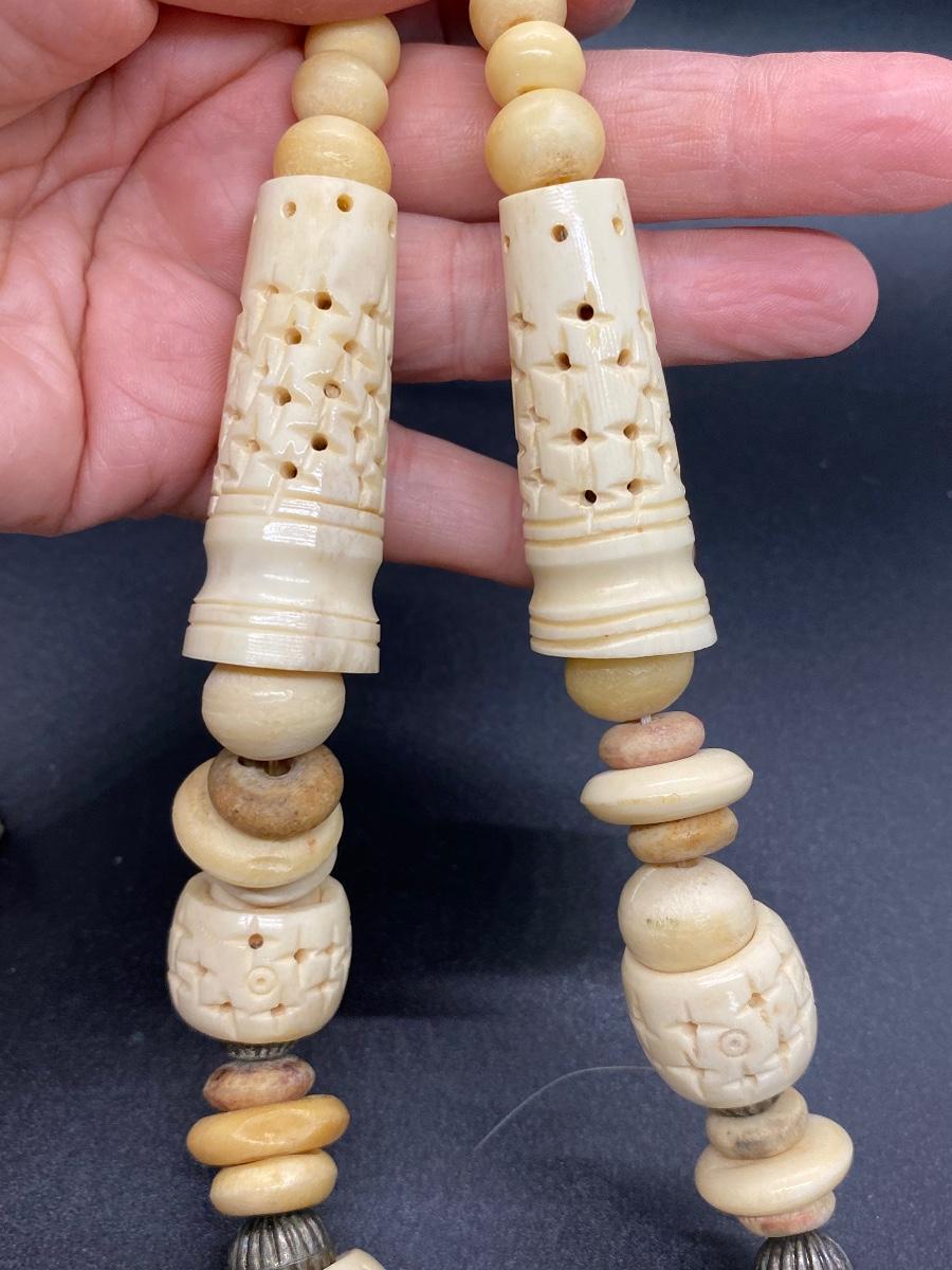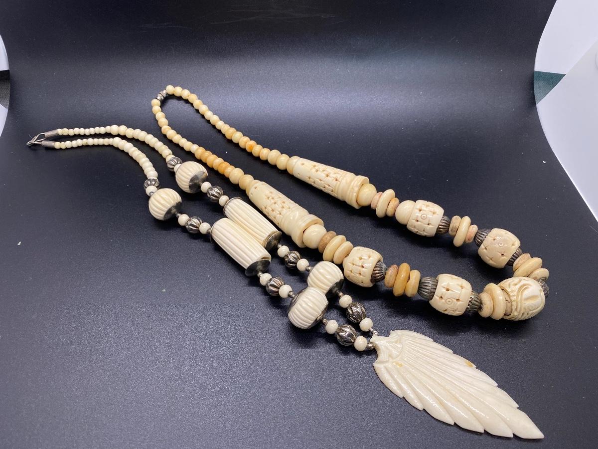 Pair of Vintage Carved Antler Bone Stone Beaded Necklaces